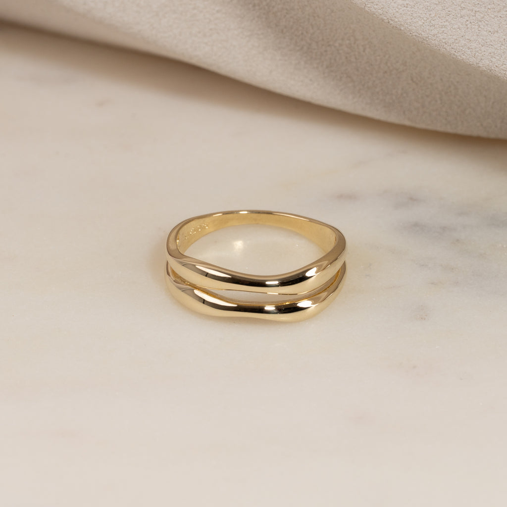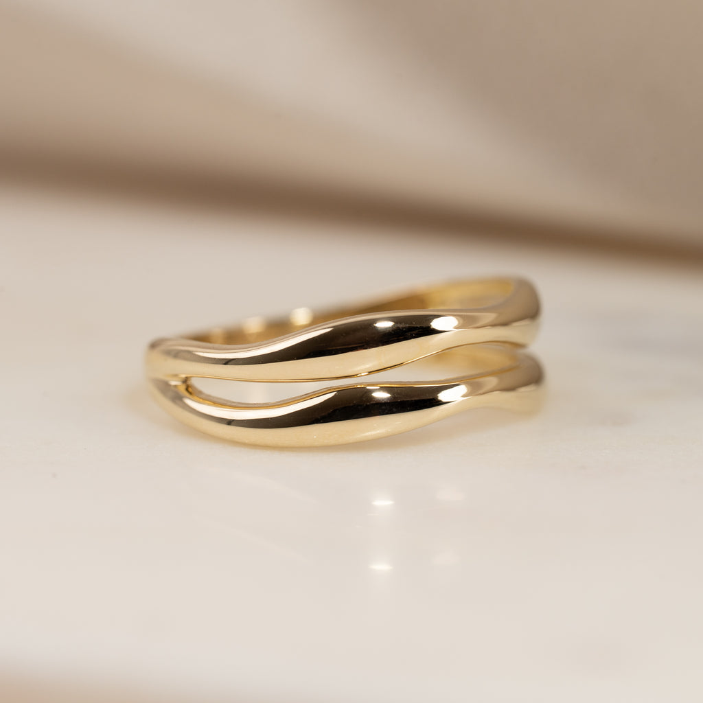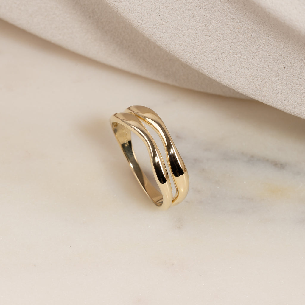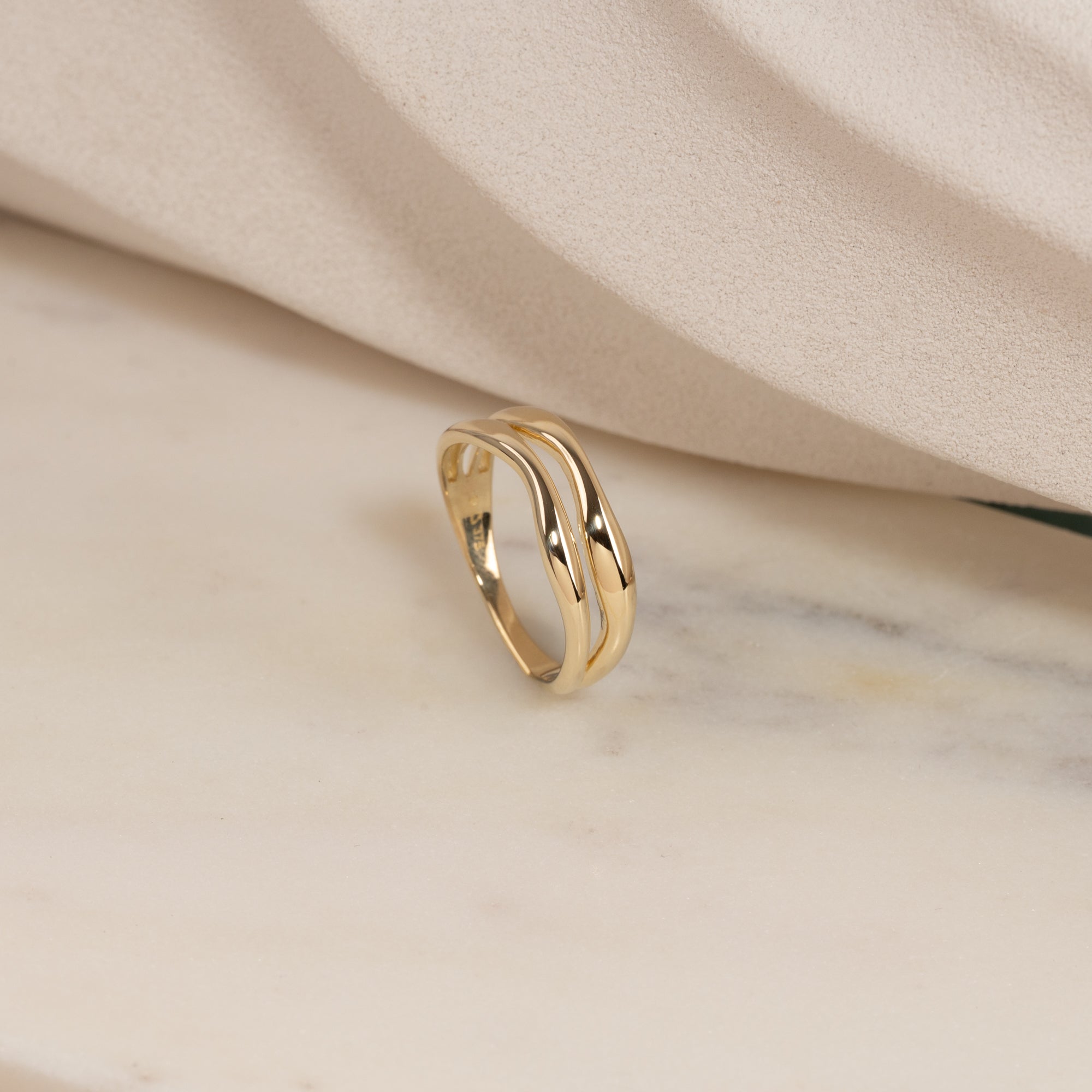 Ring i 100% genanvendt 9 karat guld med et elegant, todelt organisk design. De bløde former giver ringen et feminint og unikt udtryk.