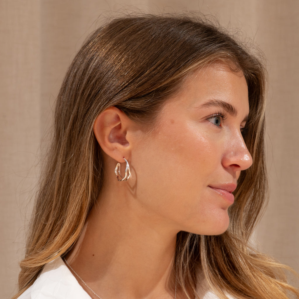 Creoler i 100% genanvendt 925 sterlingsølv i et organisk design. De bløde former giver øreringene et elegant og harmonisk udtryk, der gør dem både moderne og tidløse.