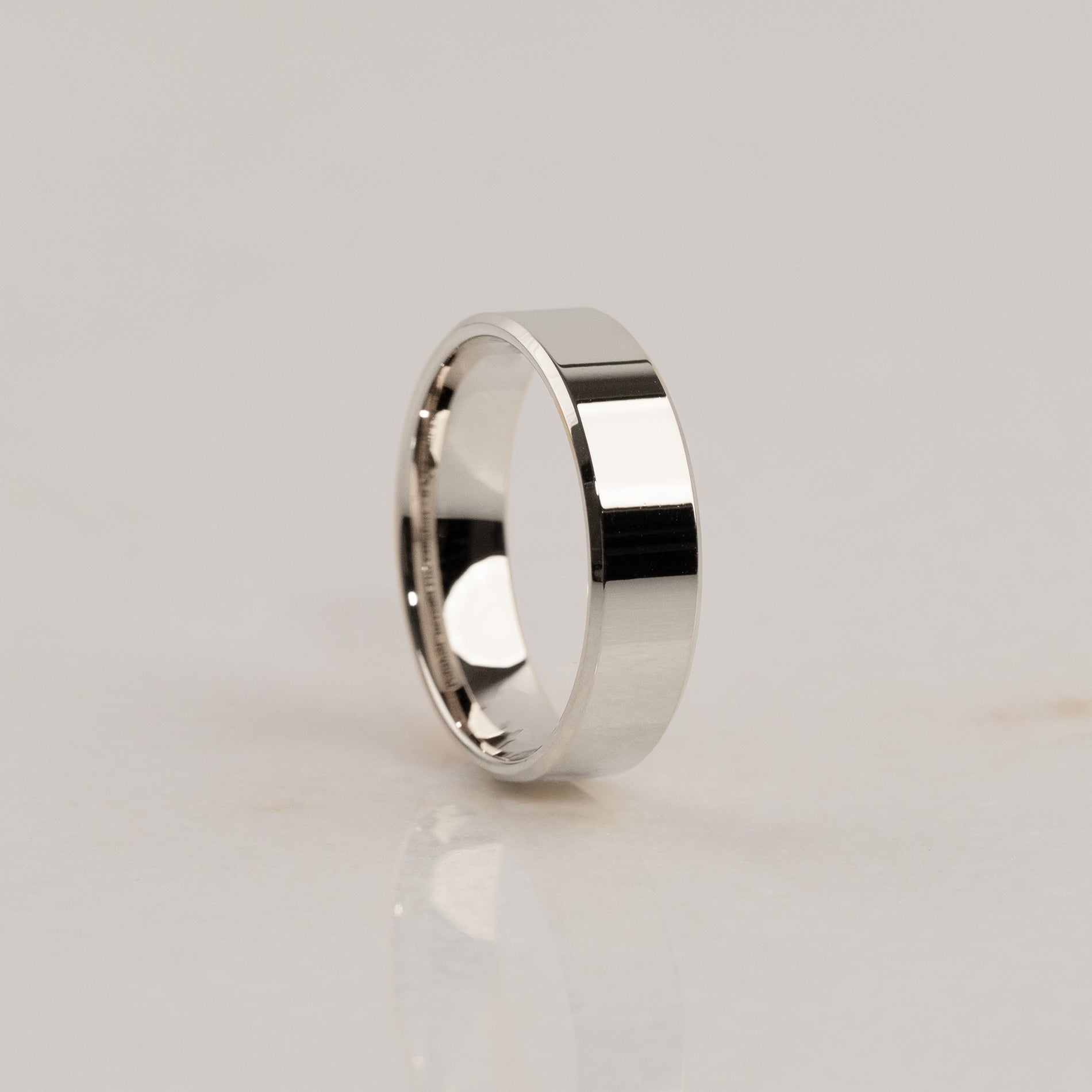 Beveled Flat Comfort har affasede kanter, som giver ringen et moderne og mere markant design.