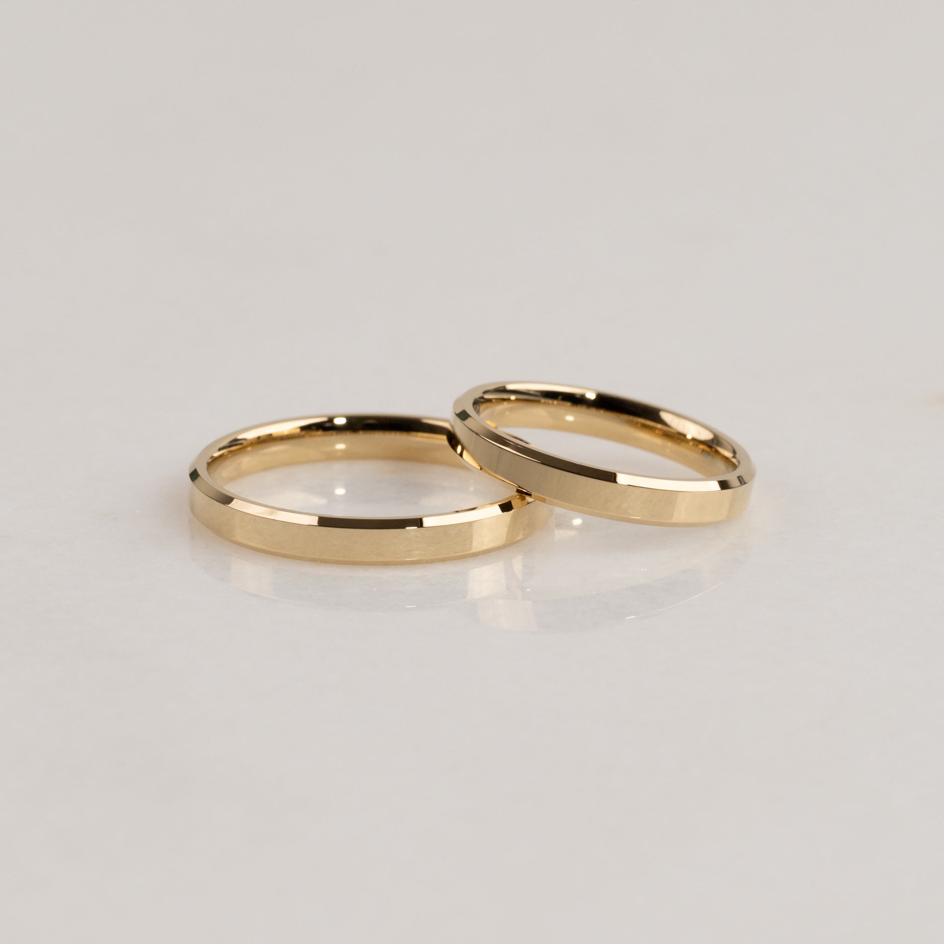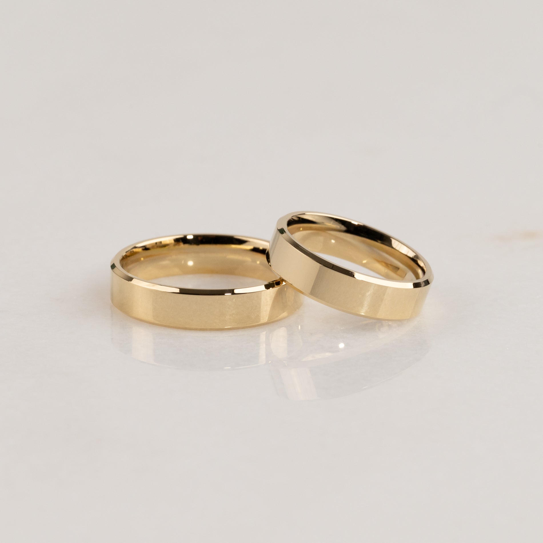 Vores Beveled Flat Comfort-design er en moderne vielsesring med et minimalistisk udtryk. Den flade yderside kombineret med de affasede kanter giver ringen et skarpt udtryk, mens den let rundede inderside sikrer en komfortabel pasform.