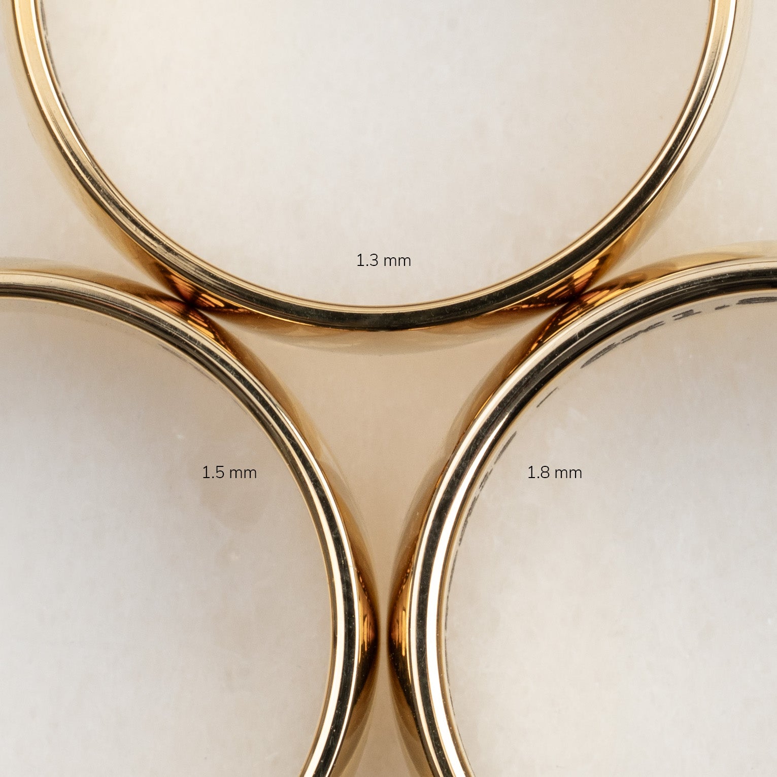 Ringen er fremstillet i massivt guld og kan vælges i 9 kt., 14 kt. eller 18 kt. Guldet er 100% certificeret genanvendt.