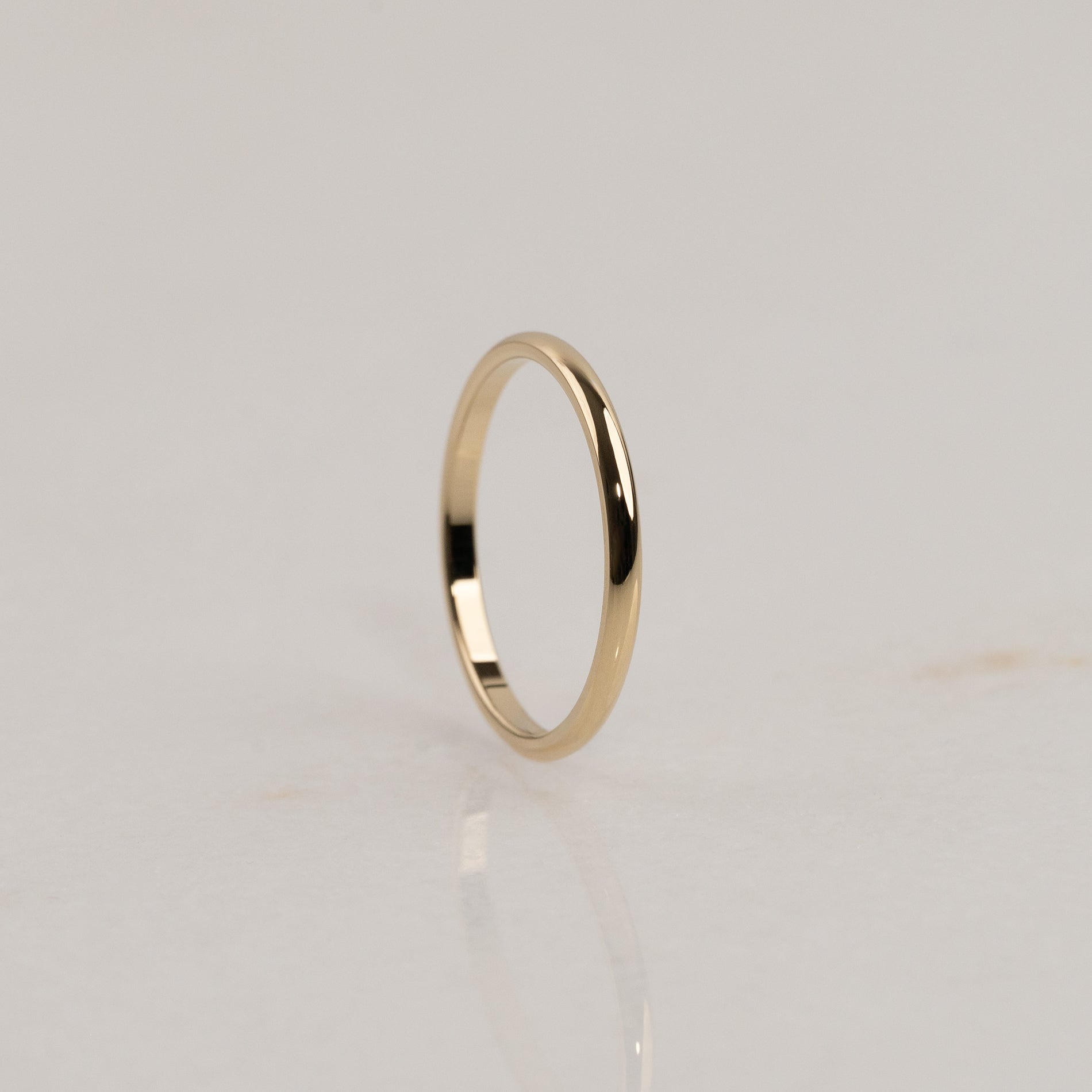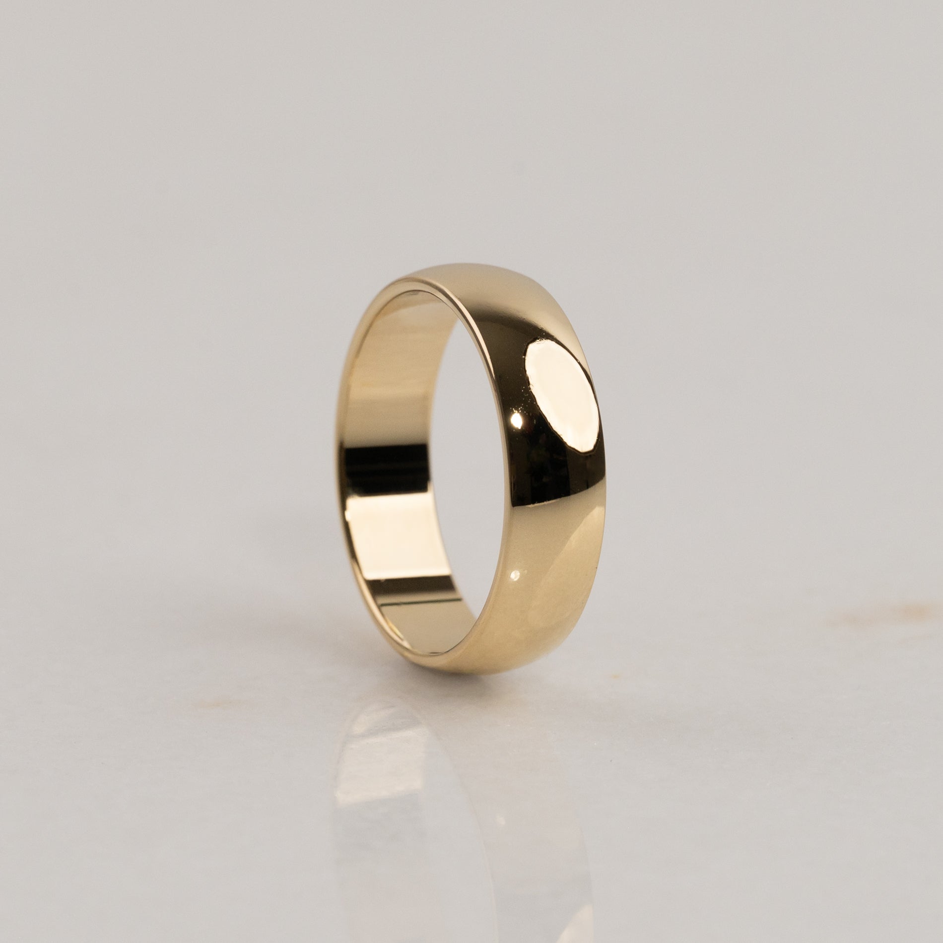 Vores klassiske D-profil har en flad inderside og en blødt buet yderside, der skaber den karakteristiske D-form. Et tidløst design og en af vores mest klassiske vielsesringe.