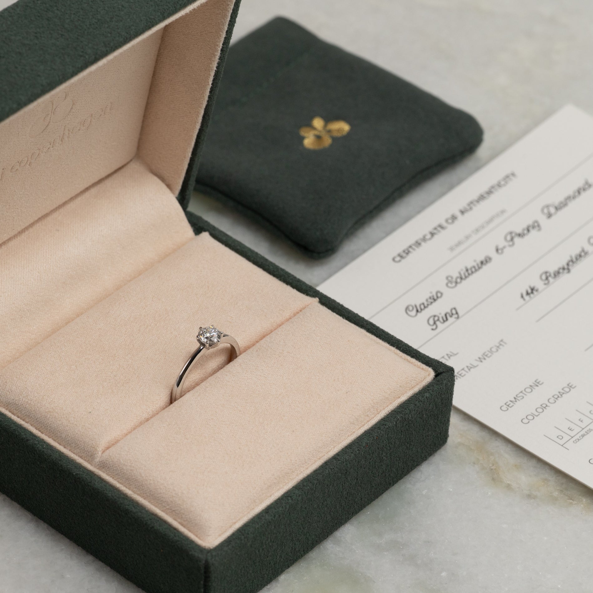 Ringen kommer i vores eksklusive Diamond Collection boks med en flot smykkeæske, certifikat og pouch. Boksen er også perfekt, hvis smykket skal gives som gave.