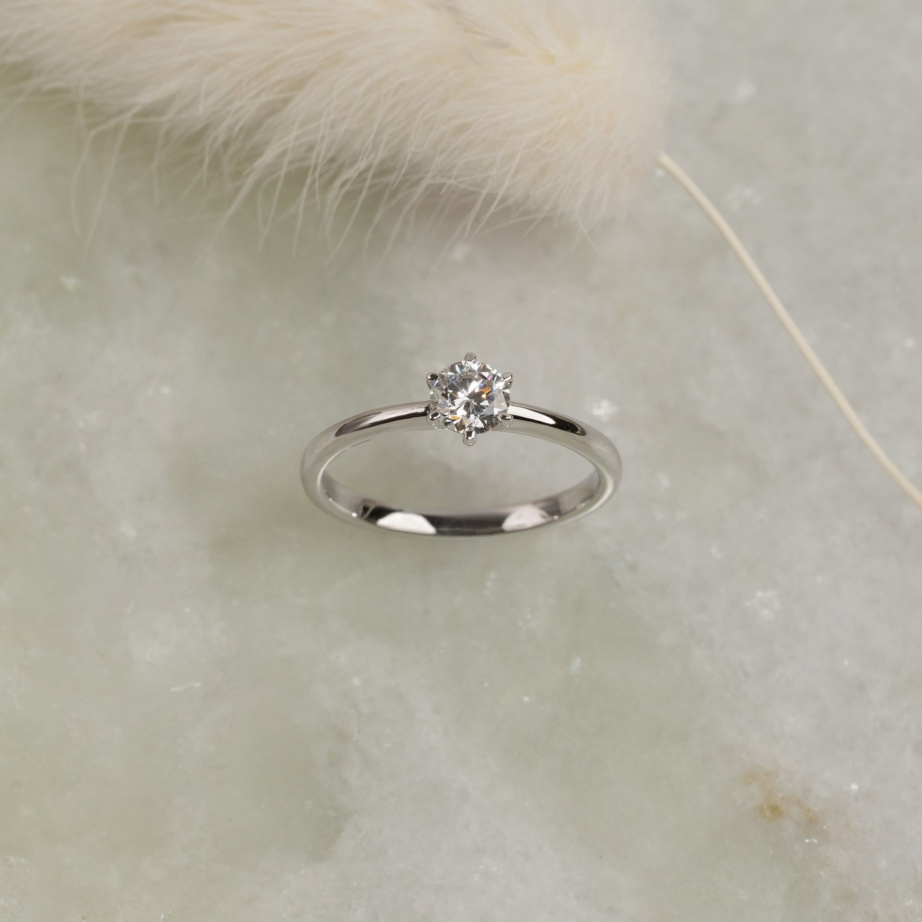 Diamantring i 14 karat hvidguld med en 0,5 ct. lab-grown brillantslebet diamant. Diamanten er fattet i en lav, klassisk fatning med seks grabber. Ringen er et klassisk og elegant smykke, som er velegnet til enhver lejlighed. Ringen er ligeledes velegnet som forlovelsesring.