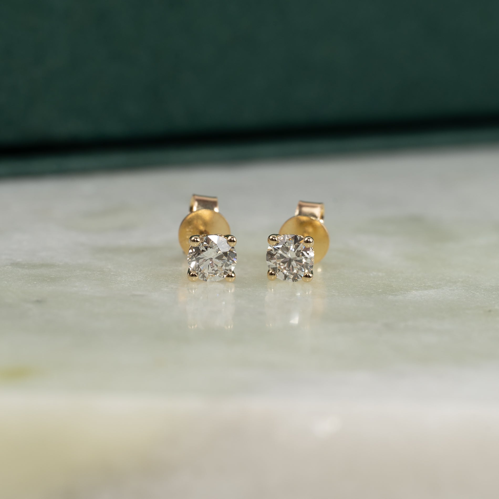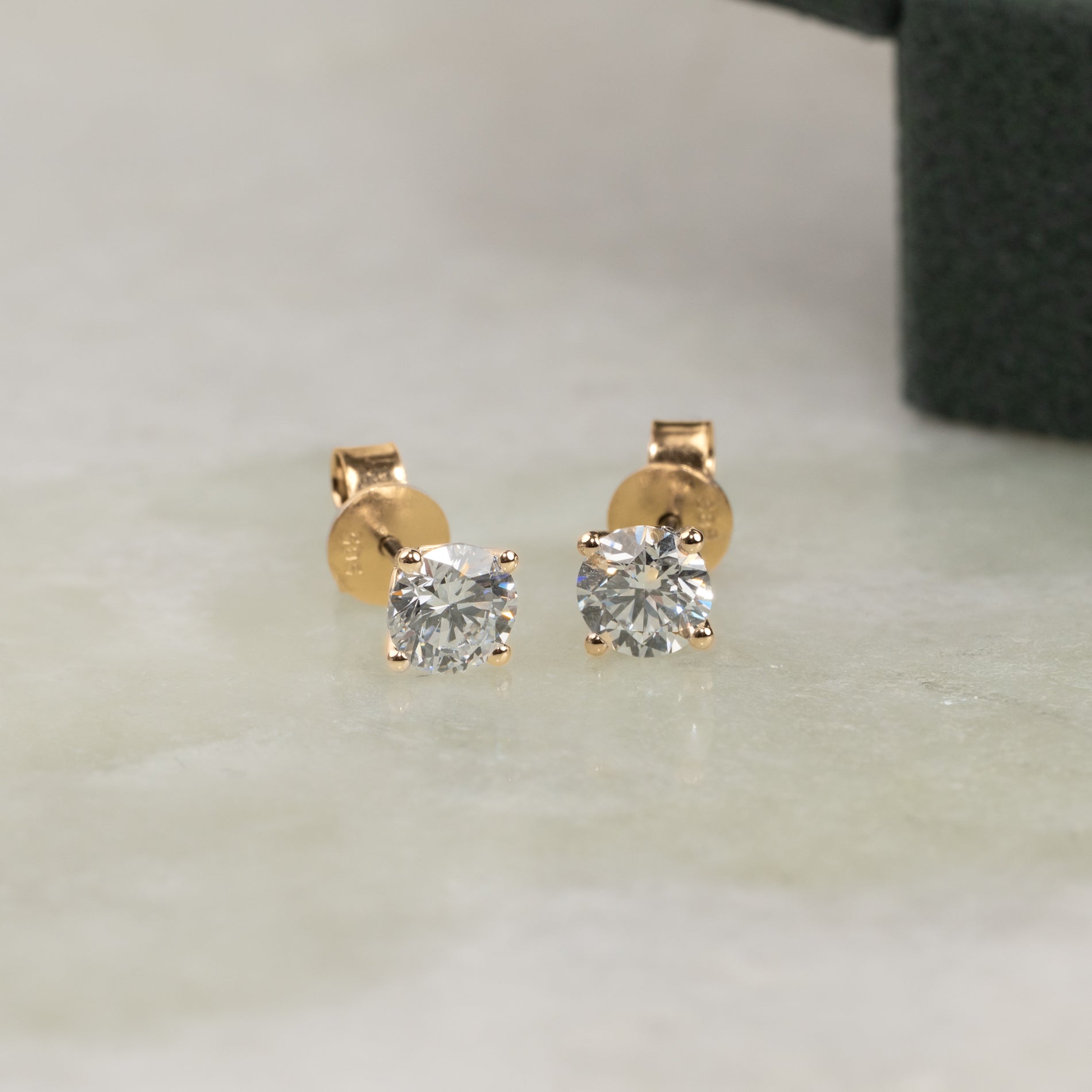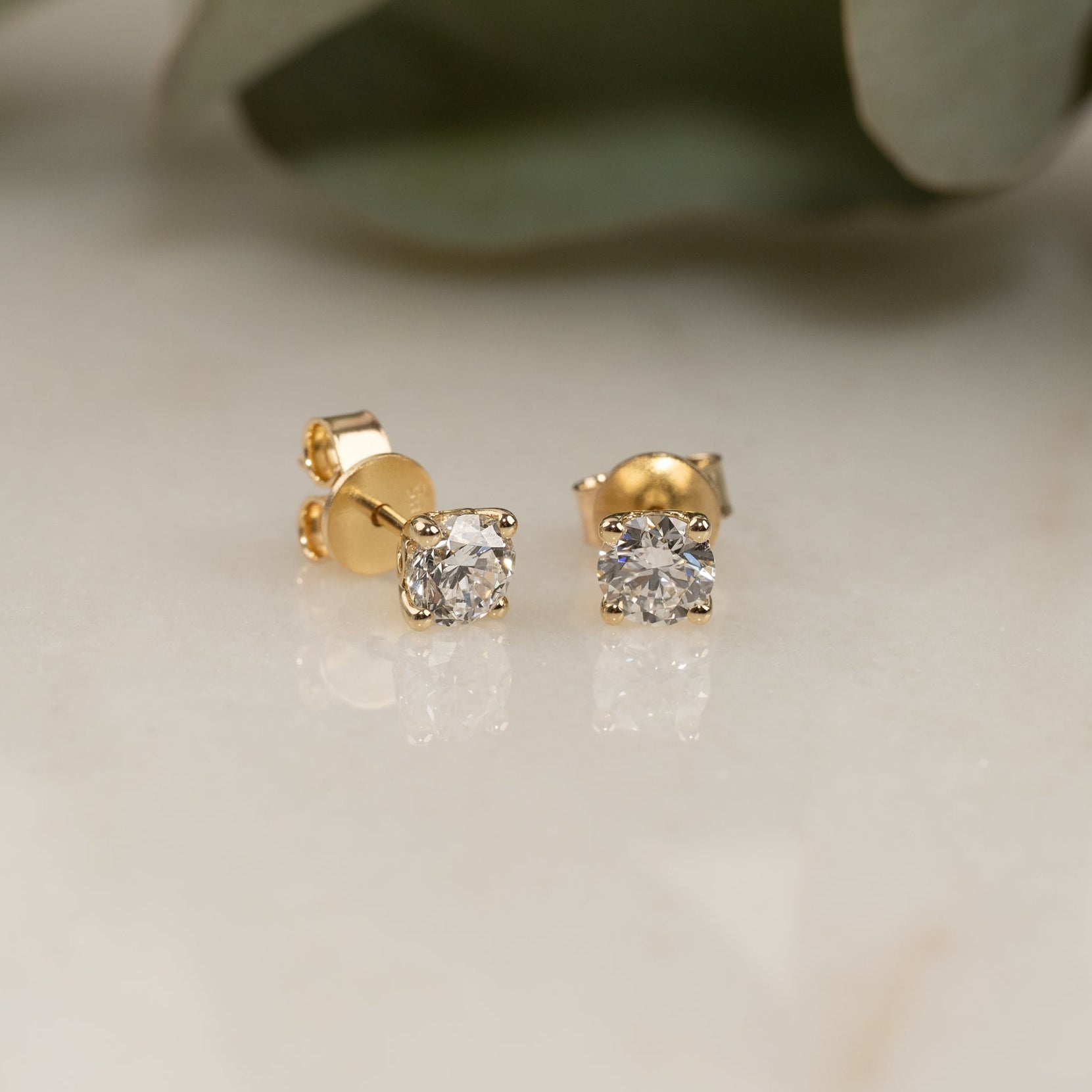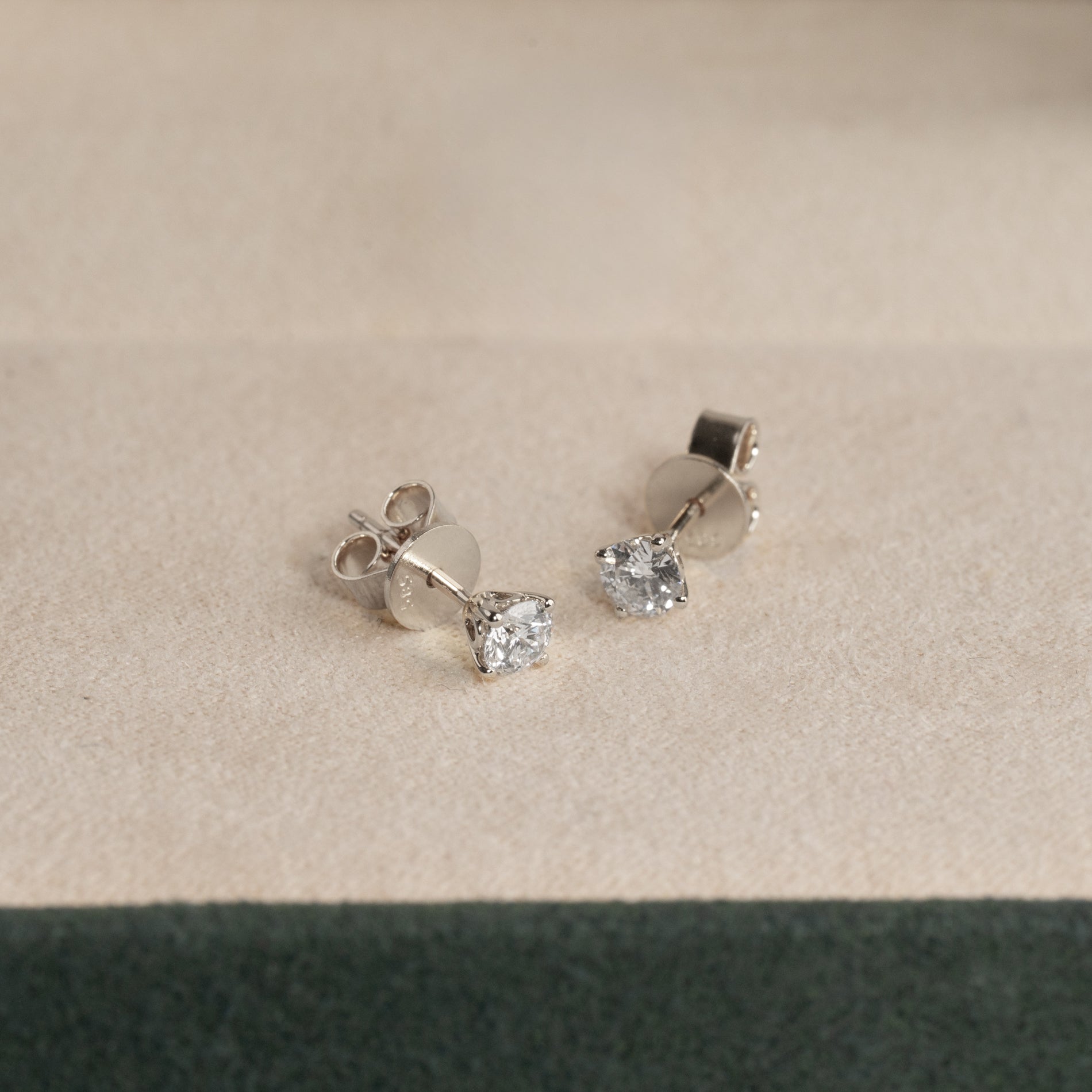 Vores solitaire diamantørestikkere er lavet med lab-grown diamanter. De har farven E/F (River) og klarheden VVS. Smykket er skabt med omtanke; diamanterne er fremstillet med blandt andet solenergi, og guldet er 100% certificeret genanvendt.