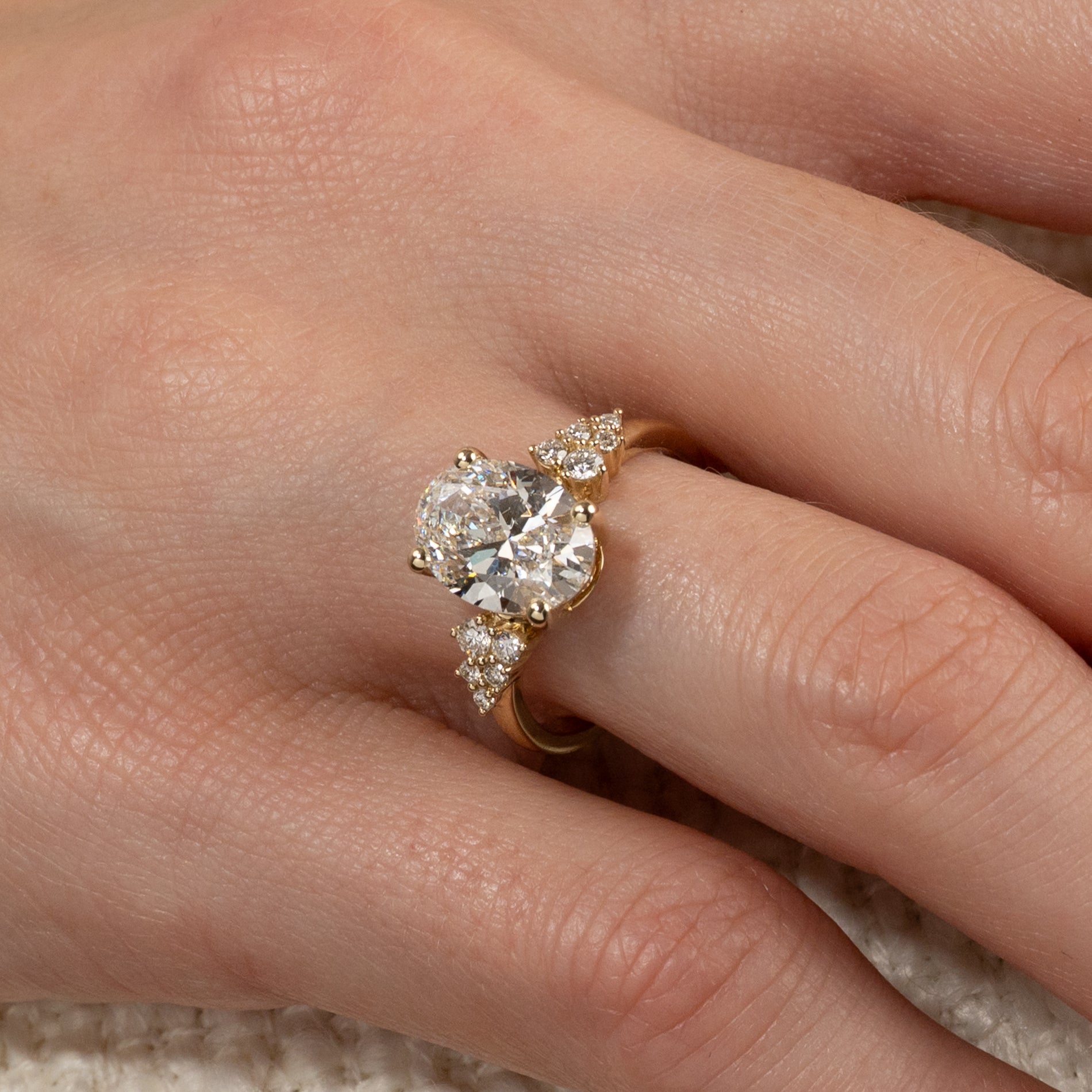 DELICATE CLUSTER OVAL-CUT LAB-DIAMOND RING - 3.25ct - YG