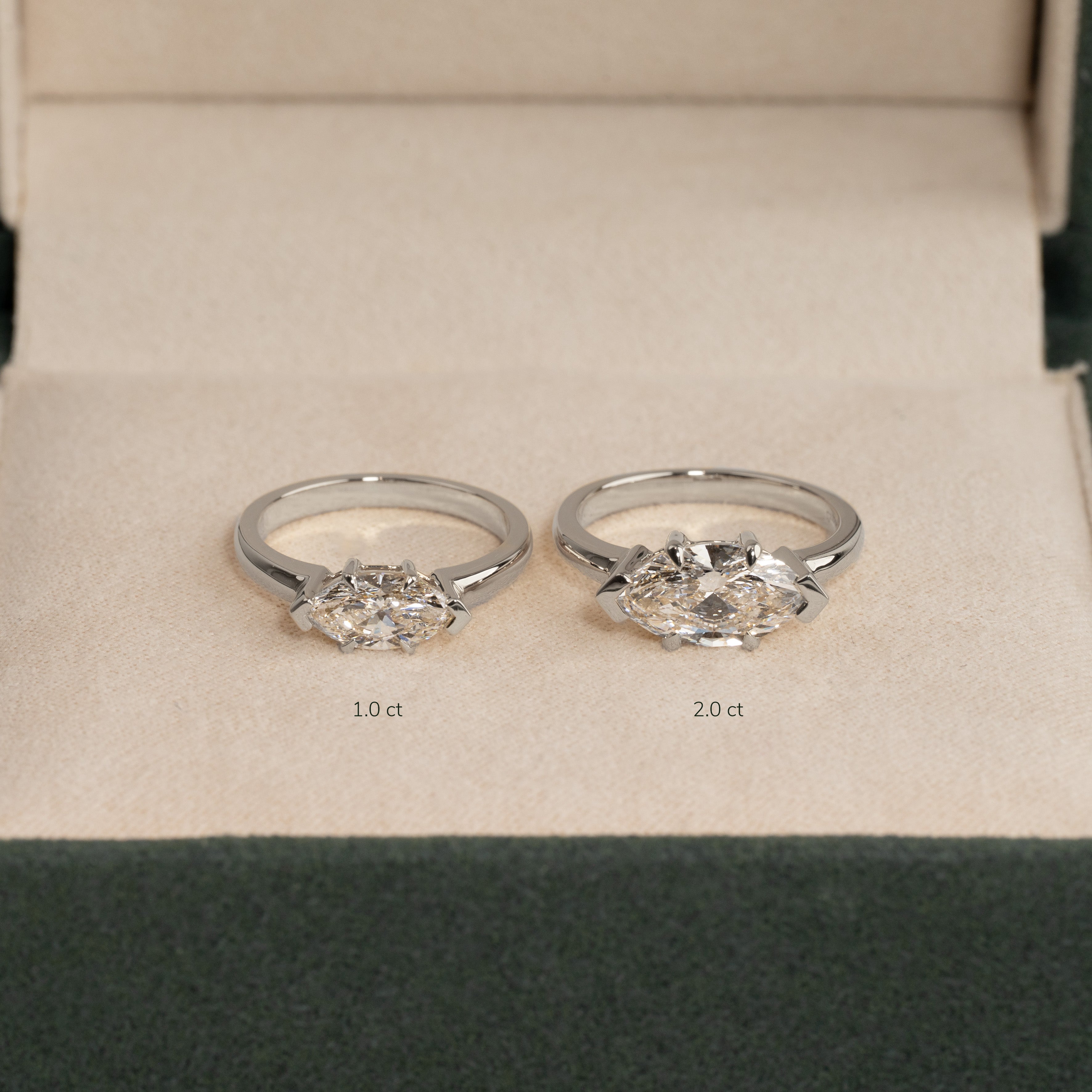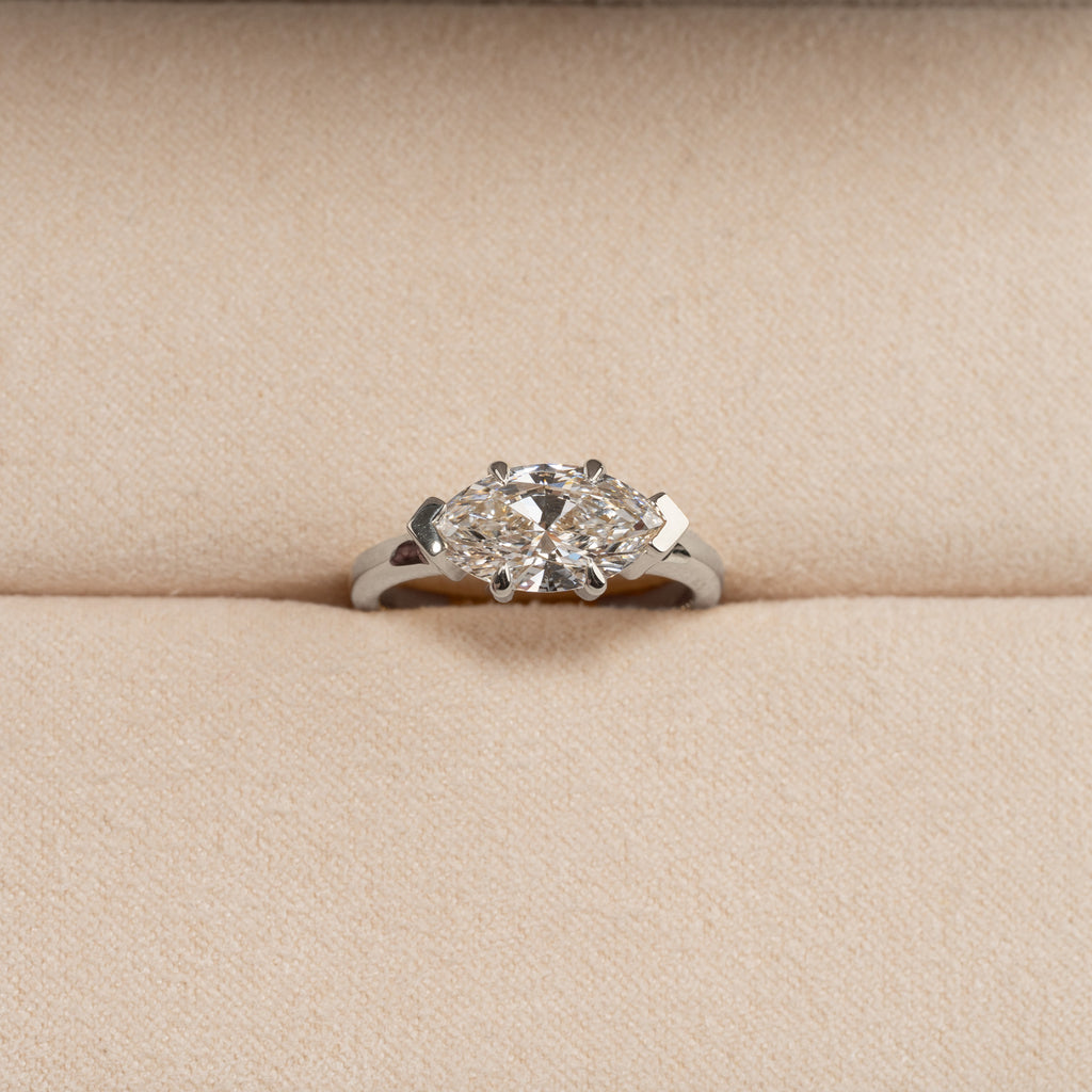 East-to-west solitaire med 2,0 ct. marquise-slebet lab-grown diamant