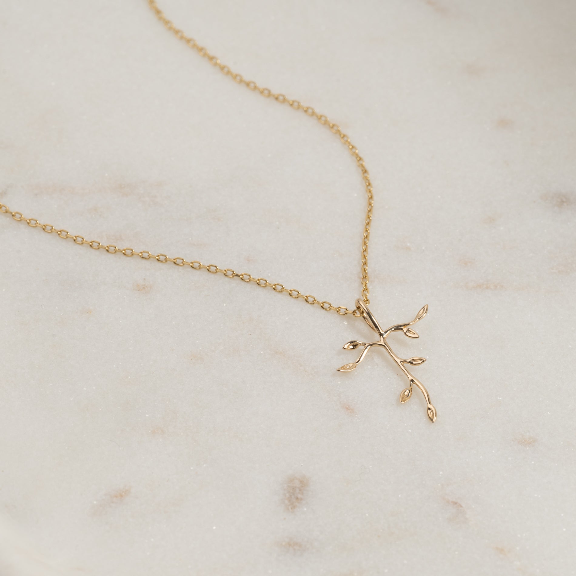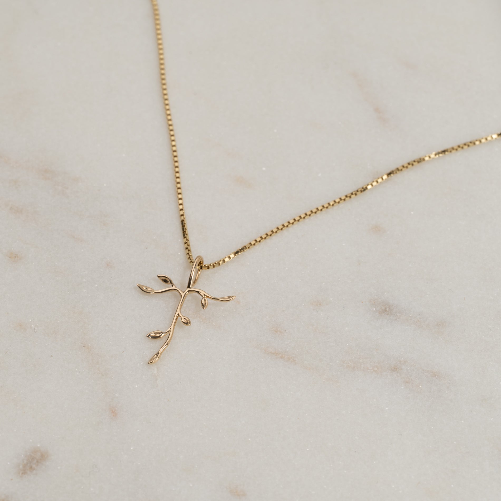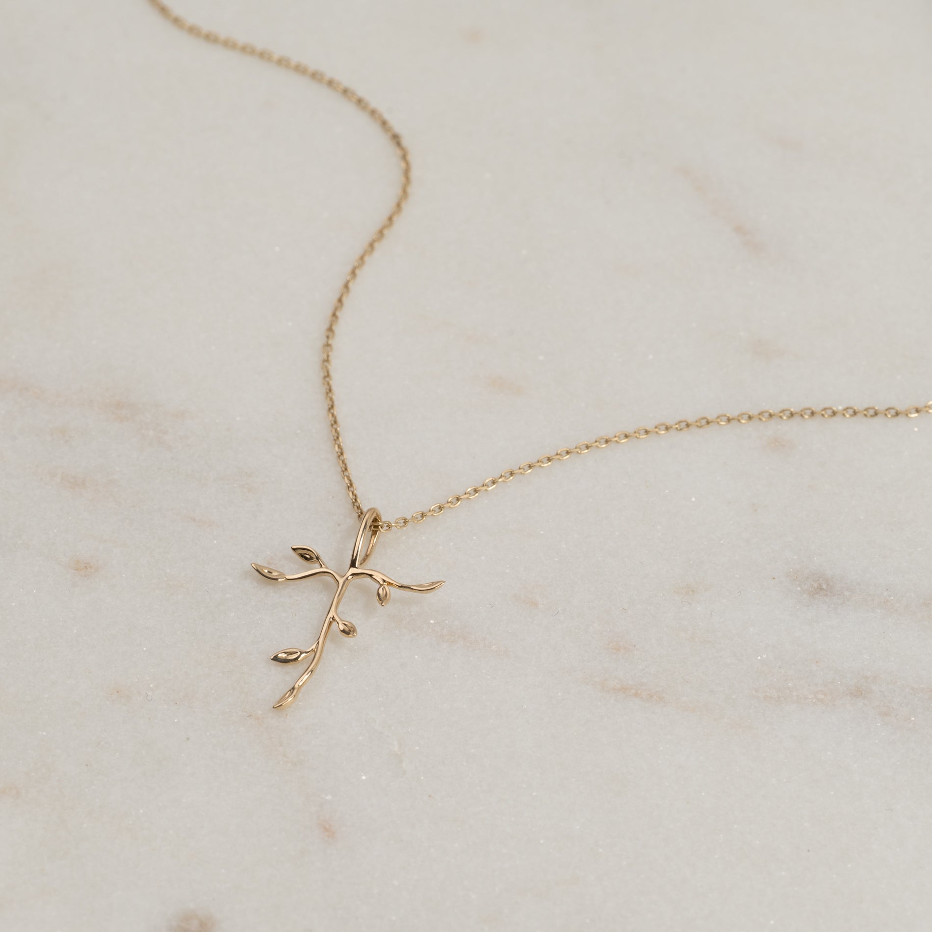Korsvedhæng med træ-inspirerede detaljer, fremstillet i 100% genanvendt 9 karat massiv guld.