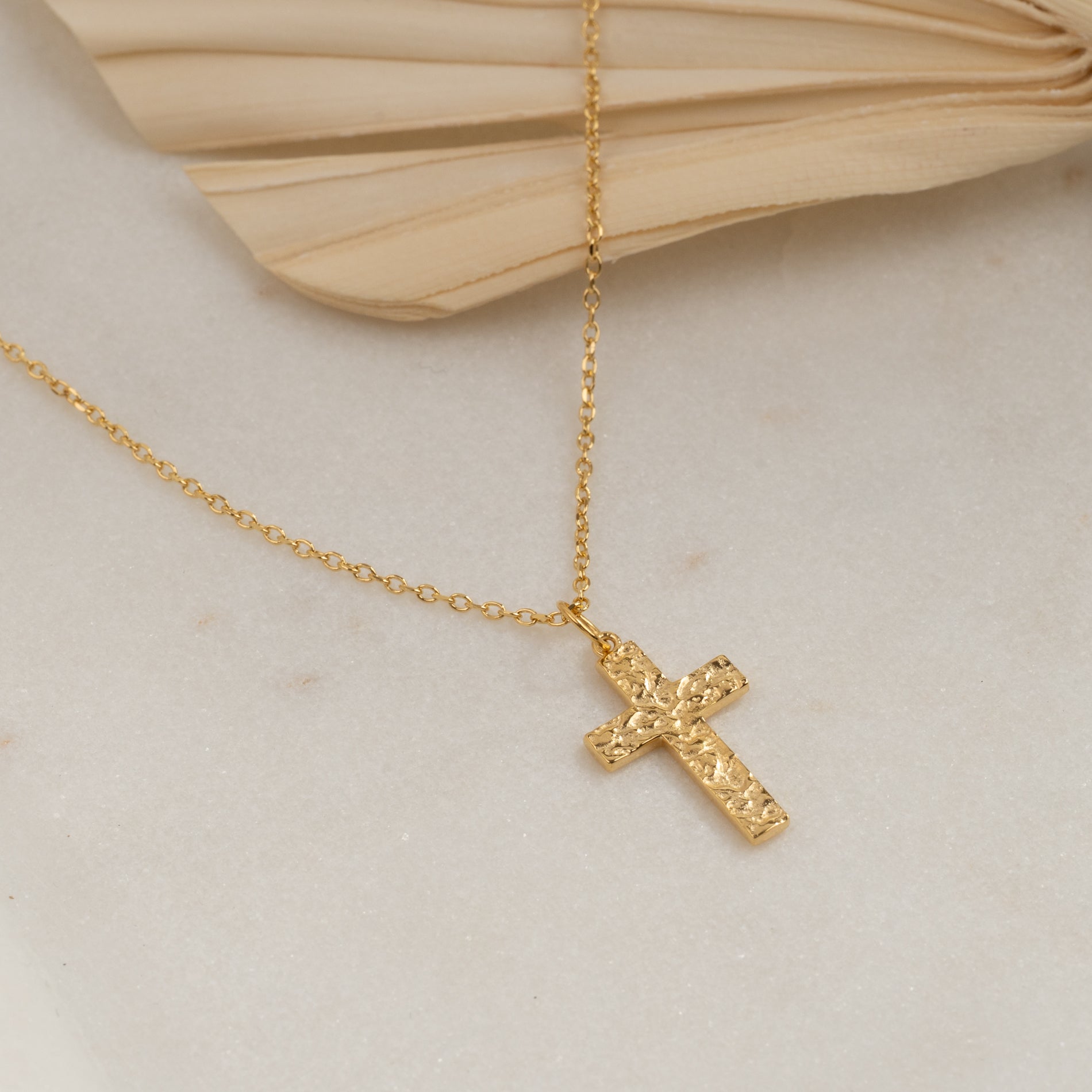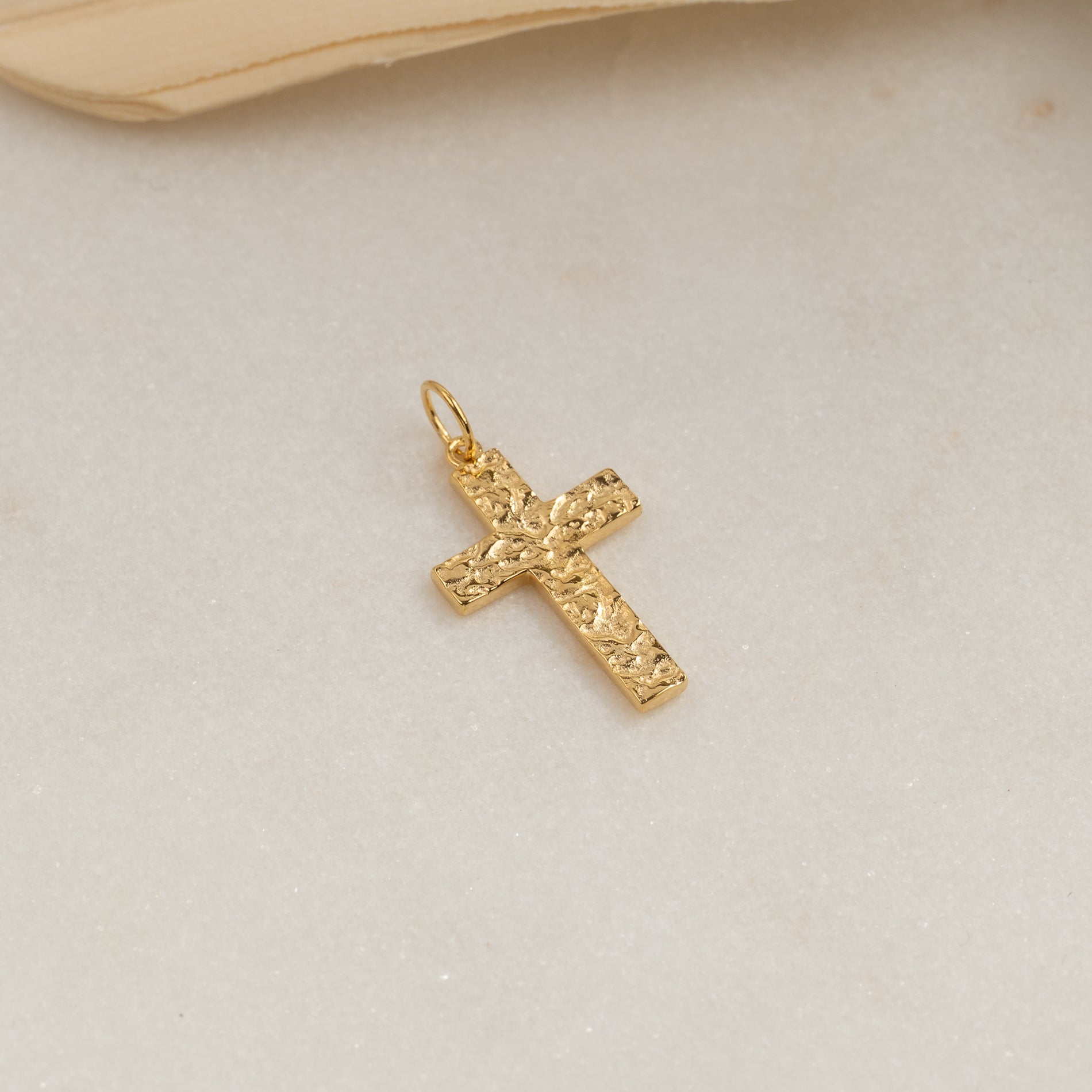 Kors med rå overfladestruktur i 100% genanvendt 18 karat forgyldt sterlingsølv.