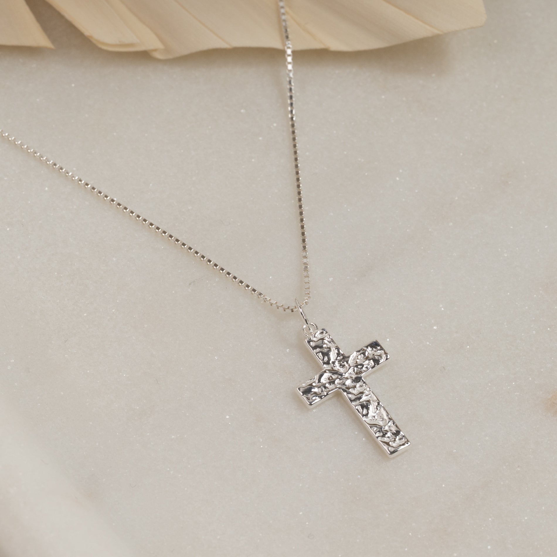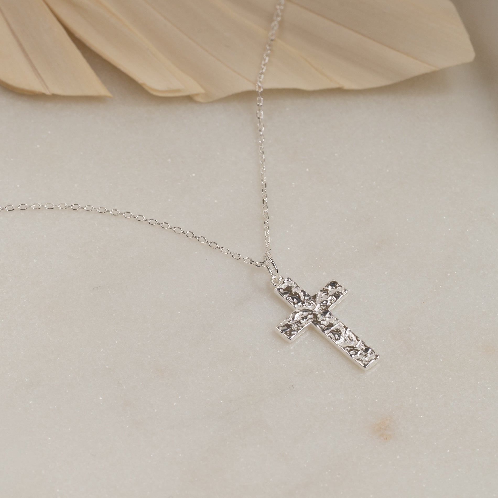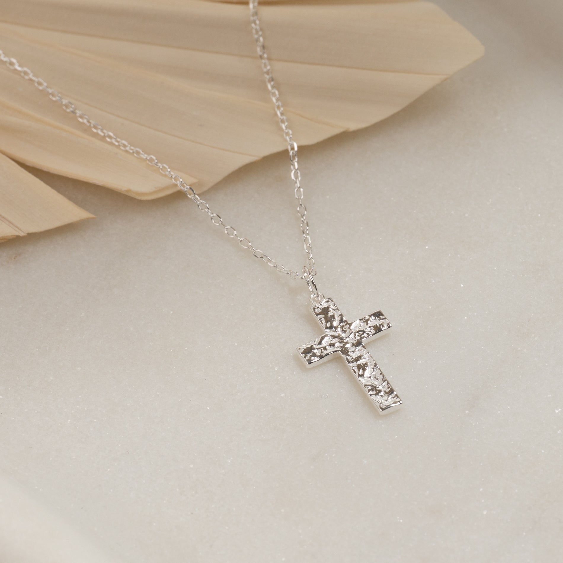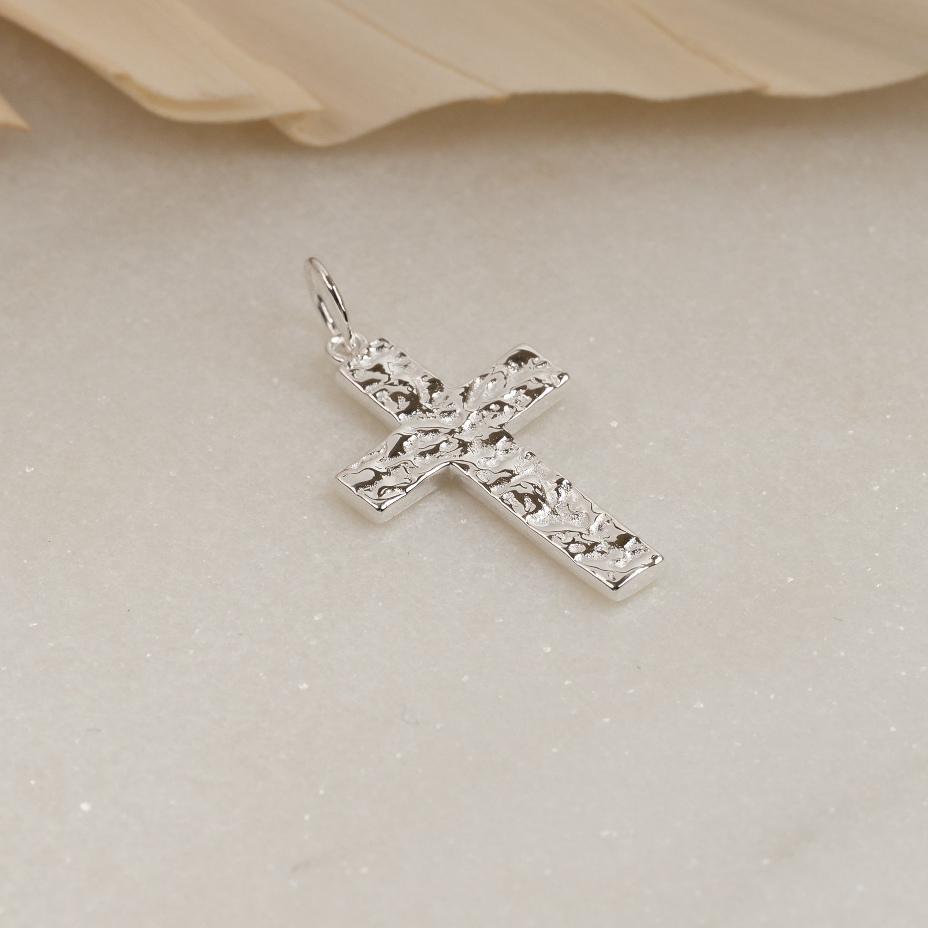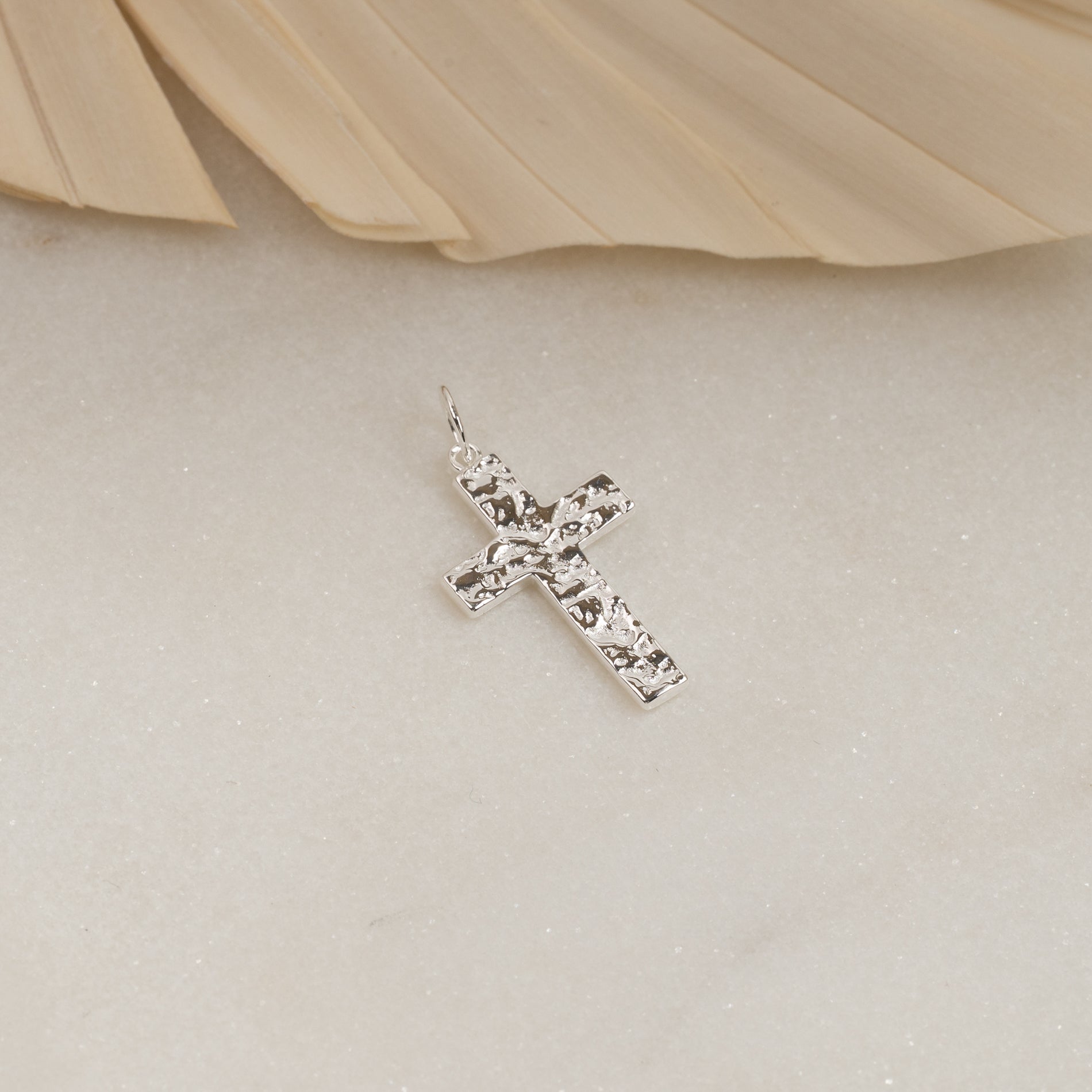 Kors med rå overfladestruktur i 100% genanvendt 925 sterlingsølv.