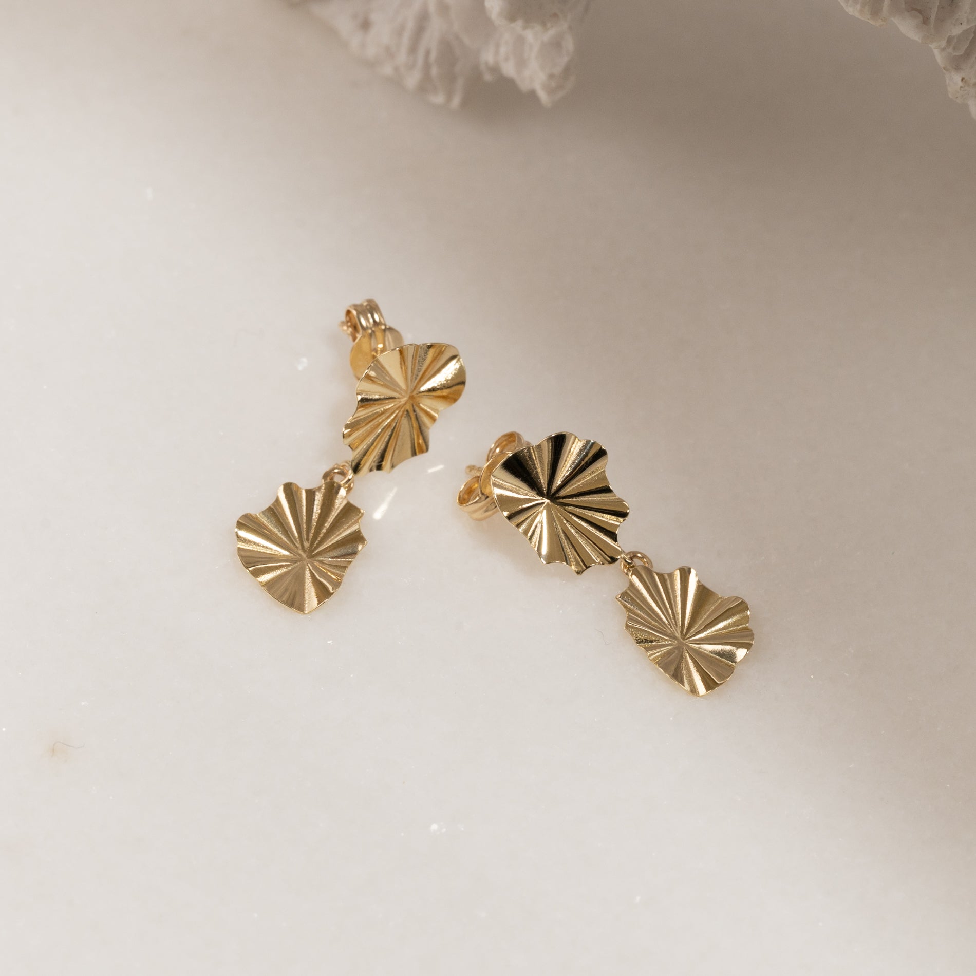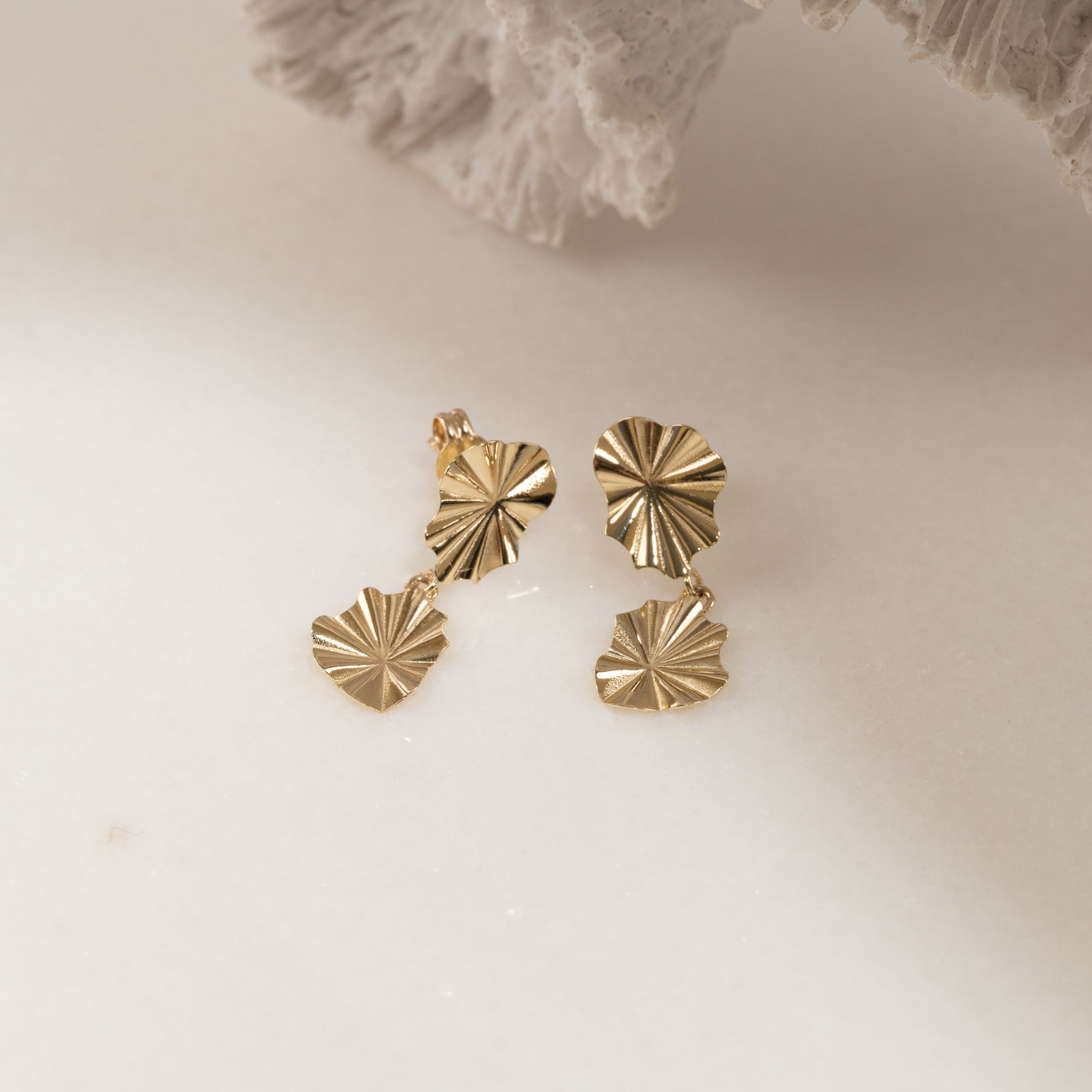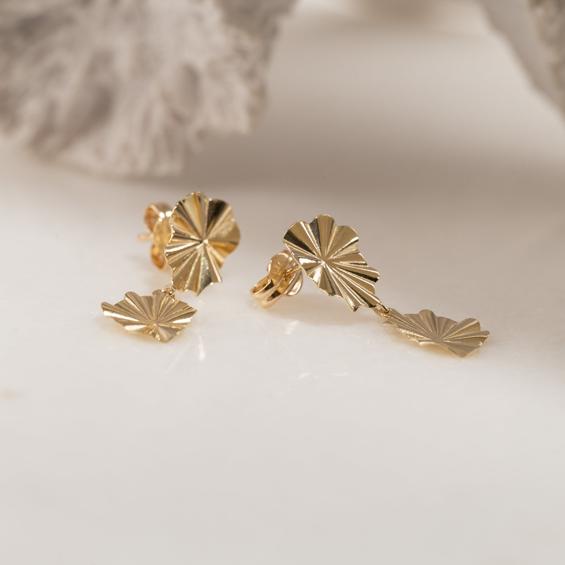 Øreringene er fremstillet i 100% genanvendt 9 karat massivt guld og har en smuk facetteret overflade, der reflekterer lyset og tilfører designet et eksklusivt udtryk.