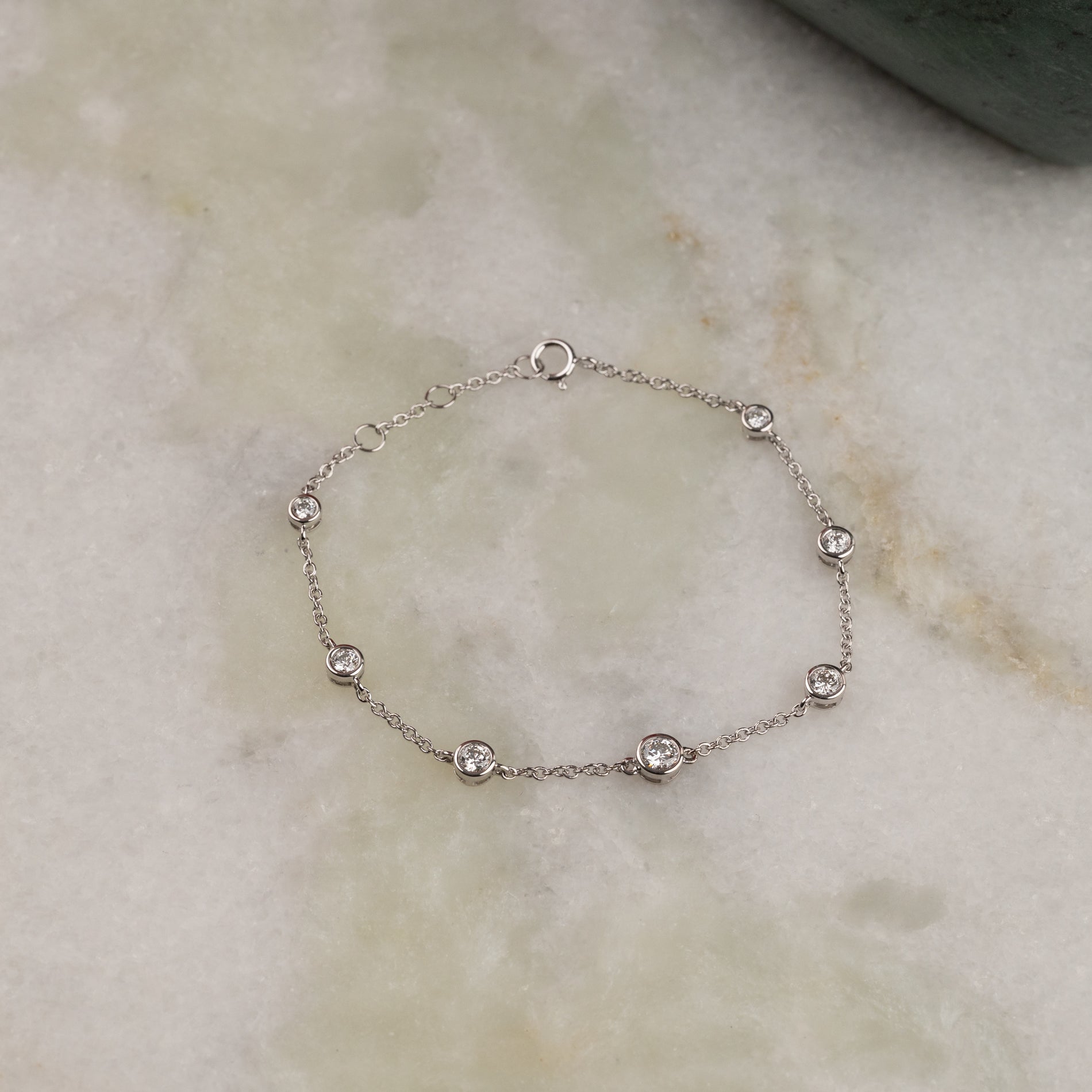 Et klassisk og tidløst armbånd i 14 karat massivt hvidguld med syv lab-grown diamanter i graduerede størrelser, smukt fattet i elegante bezel-fatninger.
