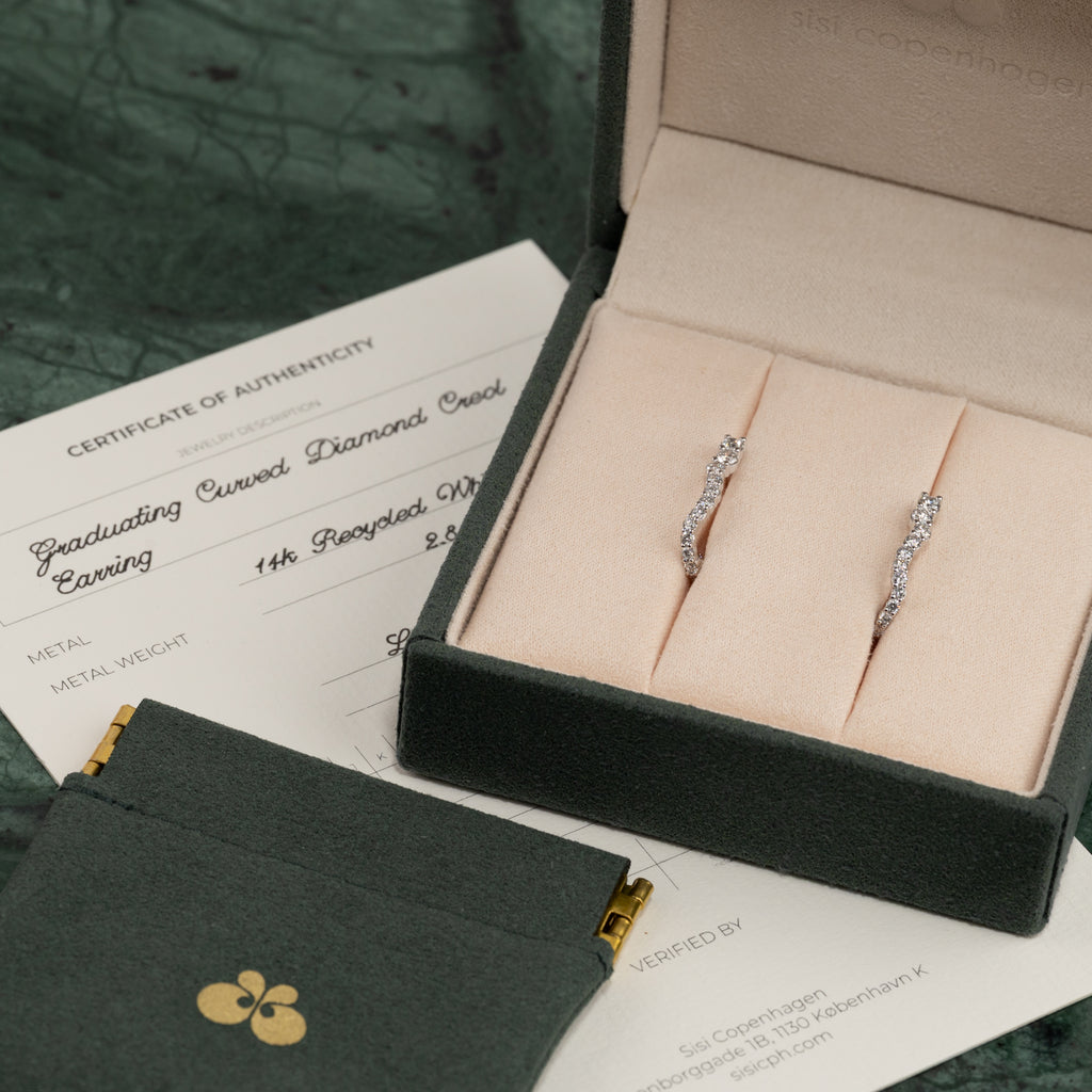 Øreringene kommer i vores eksklusive Diamond Collection boks med en flot smykkeæske, certifikat og pouch. Boksen er også perfekt, hvis smykket skal gives som gave.