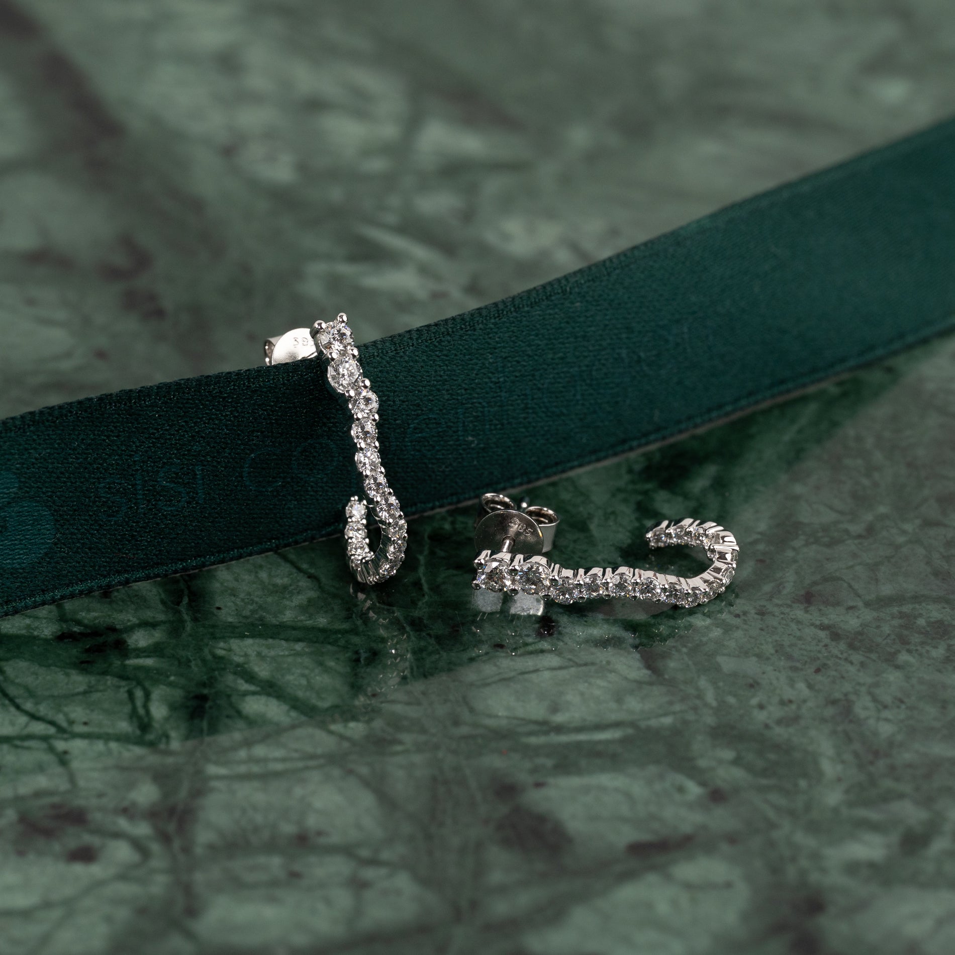 GRADUATING CURVED DIAMOND CREOL EARRING - 0.9ct - WG