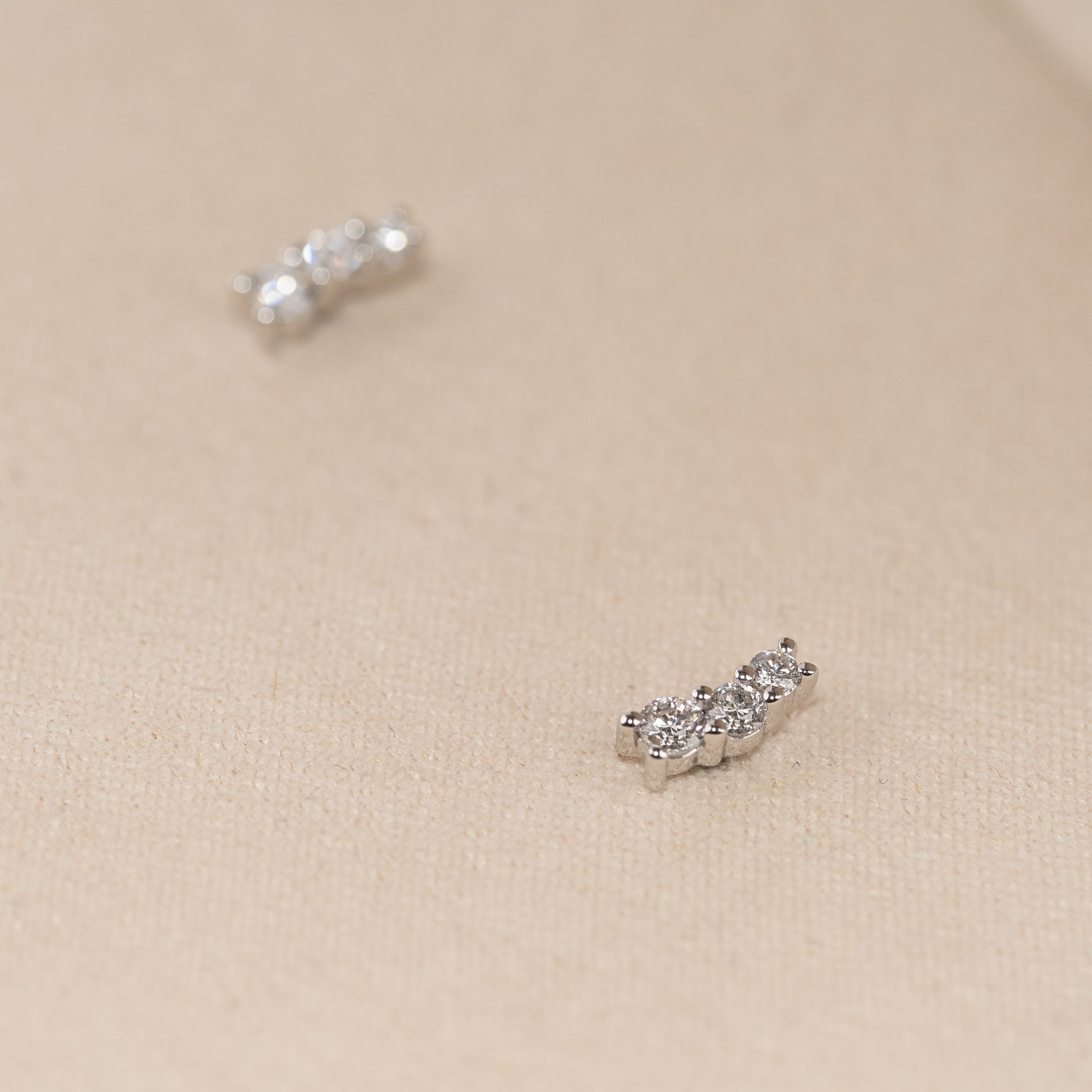 Øreringene er fremstillet i 14 karat massivt genanvendt hvidguld med lab-grown diamanter, der har en samlet caratvægt på 0,22 ct. De brillantslebne diamanter er smukt placeret i en let buet form, der skaber et elegant og organisk udtryk.