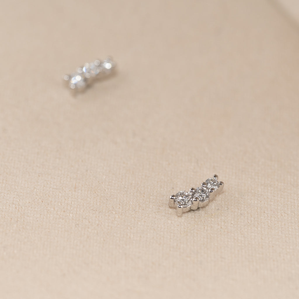 GRADUATING CURVED DIAMOND STUD EARRING - 0.22ct - WG