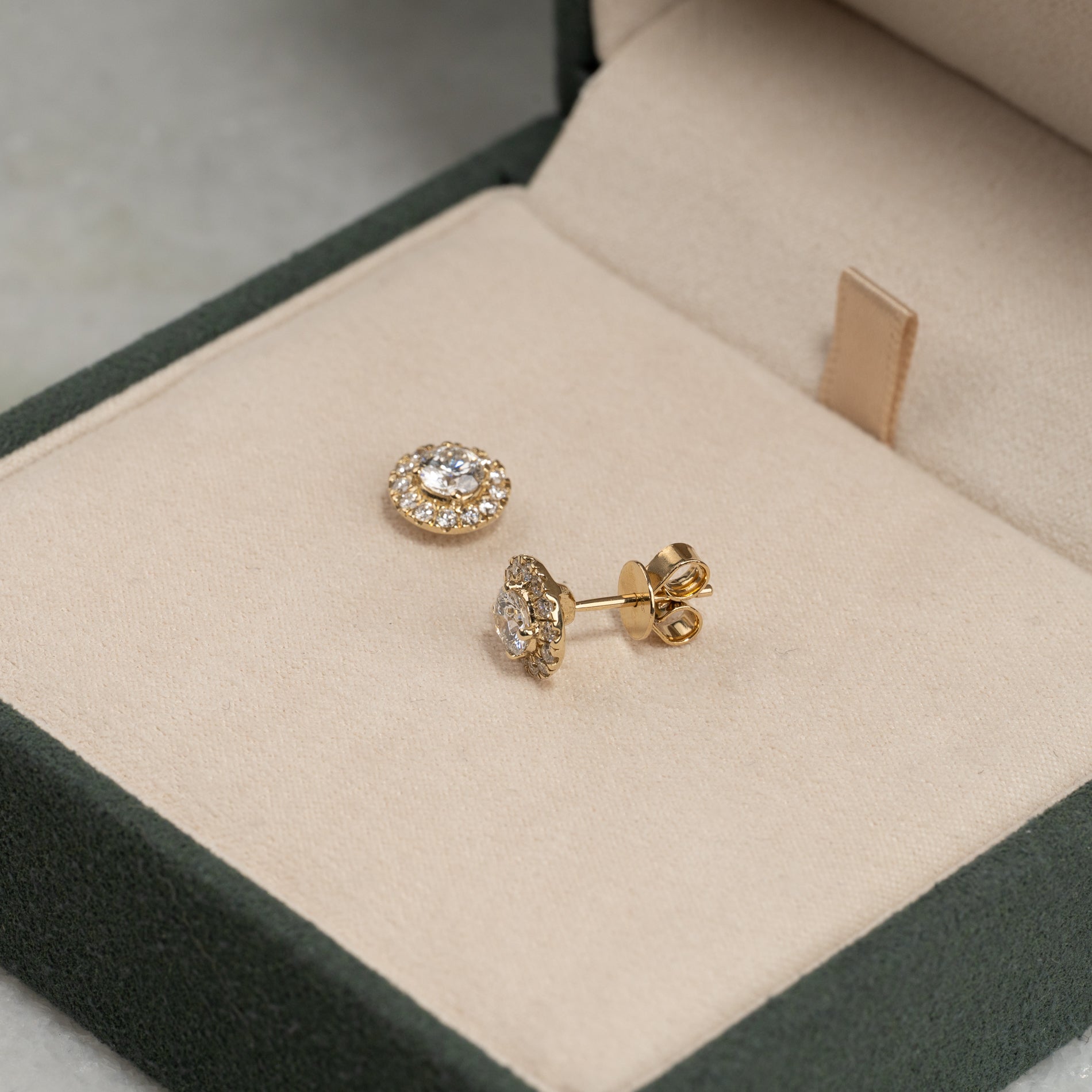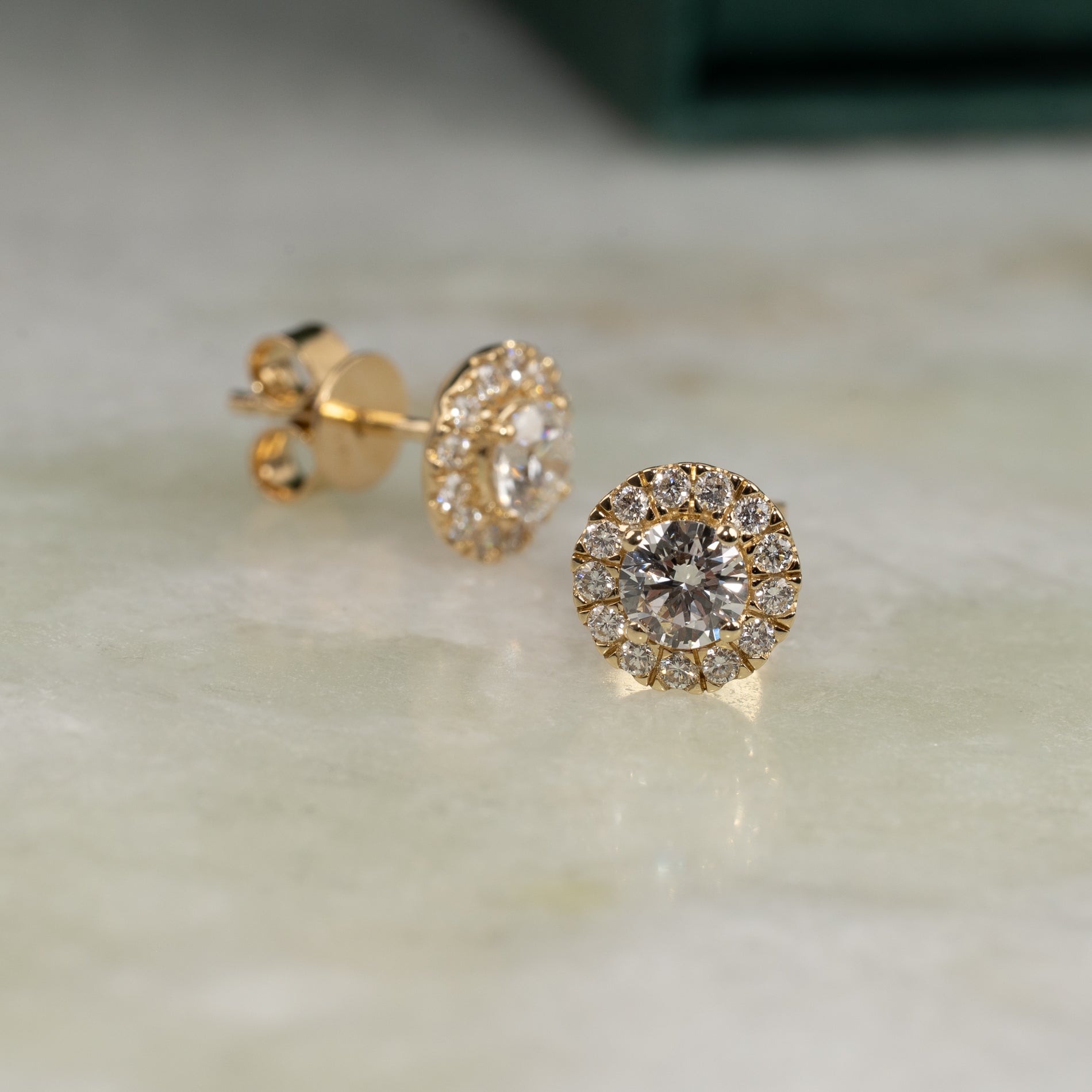 Par halo-ørestikkere i 14 kt. guld med 1,0ct ct. lab-grown diamanter
