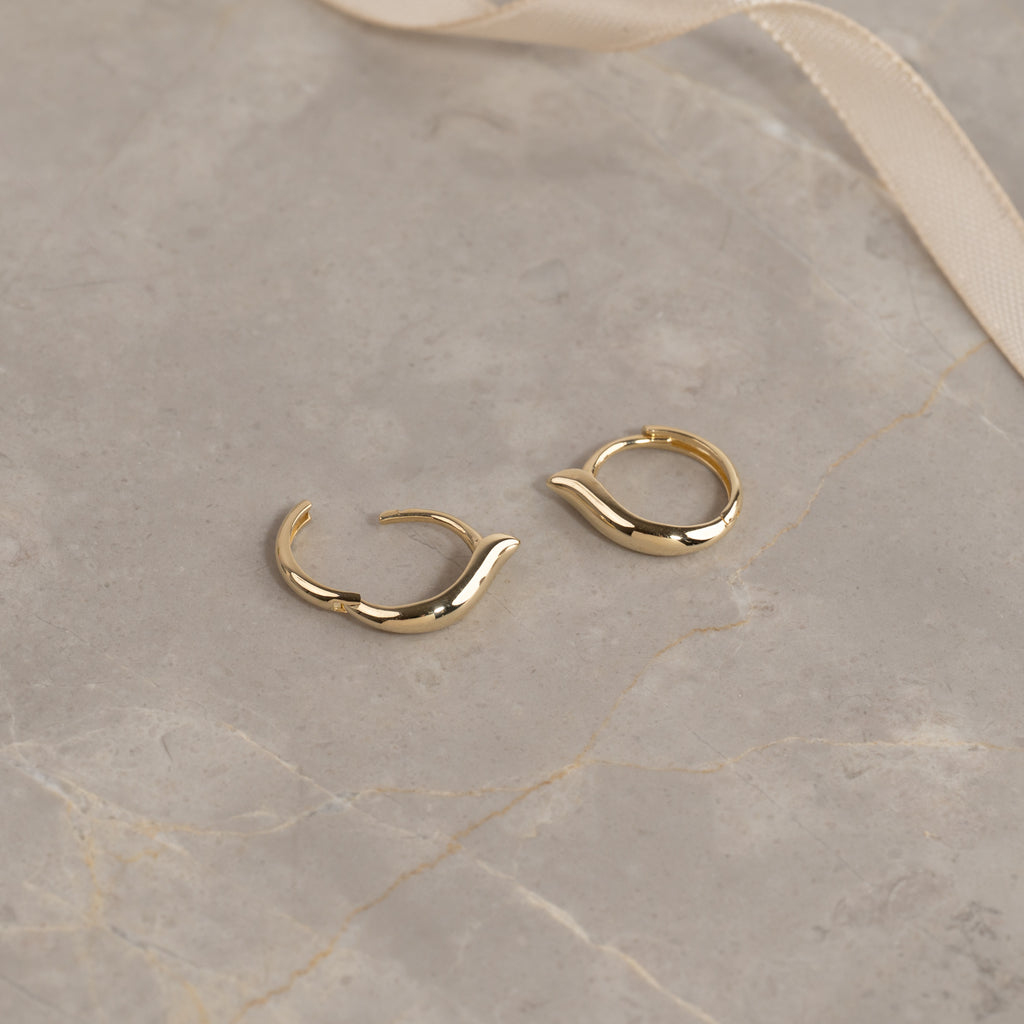 Øreringene har et organisk look med en let bølgende silhuet, der giver et elegant og moderne udtryk. Det enkle design gør dem alsidige – perfekte til både hverdagsbrug og særlige anledninger.