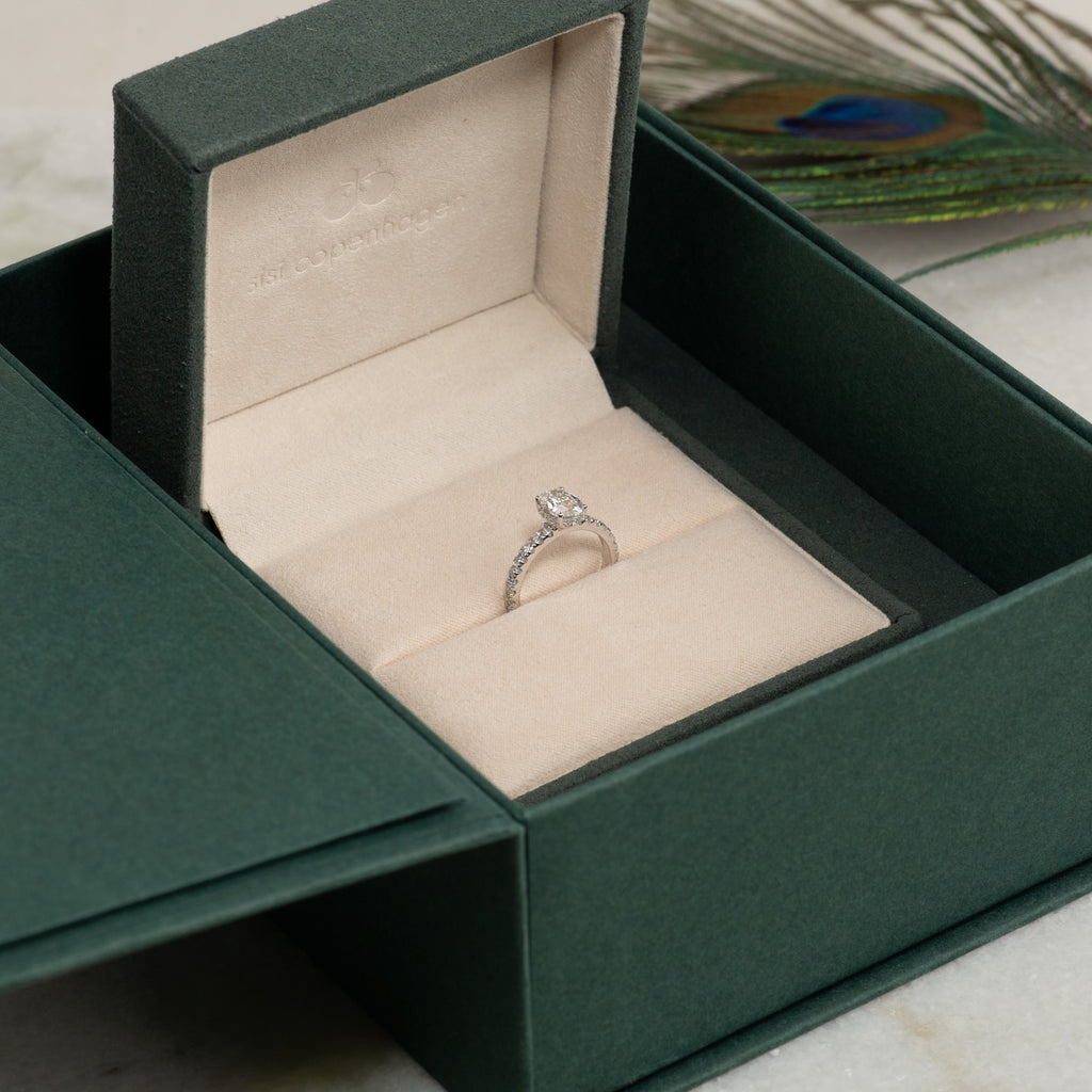 Smykket kommer i vores eksklusive Diamond Collection boks med en flot smykkeæske, et certifikat og en pouch. Boksen kommer med gavebånd og er også perfekt, hvis smykket skal gives som gave. Centerstenen kommer med IGI-certifikat.