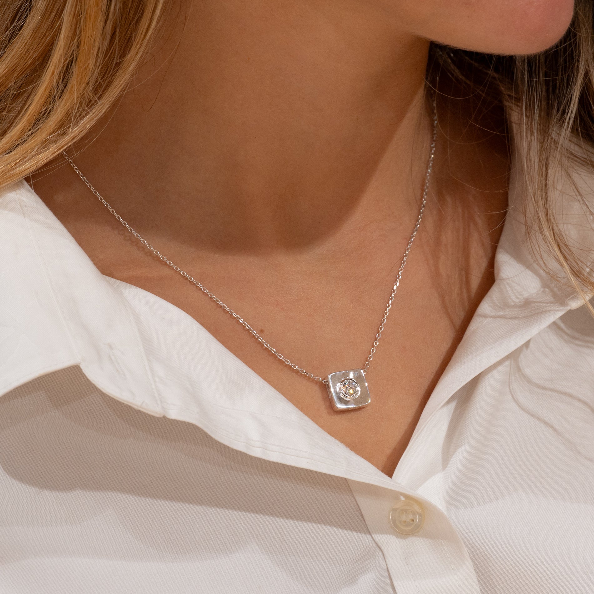 Firkantet vedhæng i sterlingsølv med klar zirkon