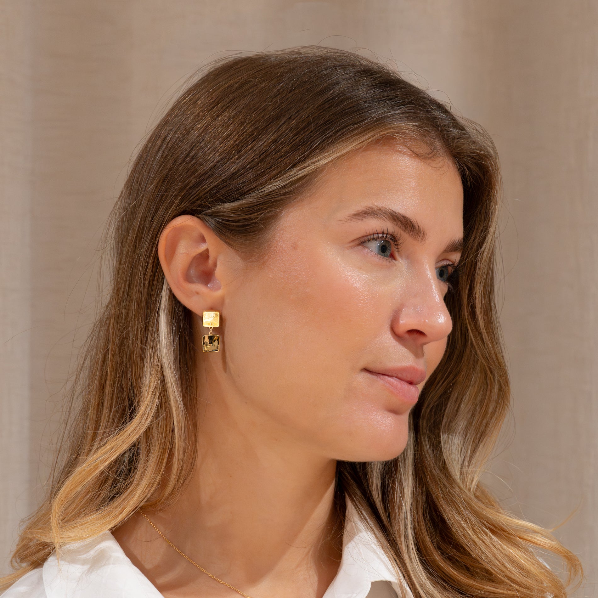 Firkantede ørestikkere i forgyldt sterlingsølv i et elegant, retro-inspireret design