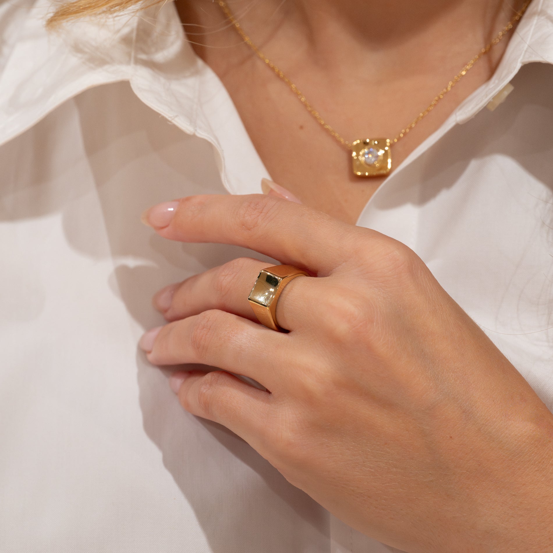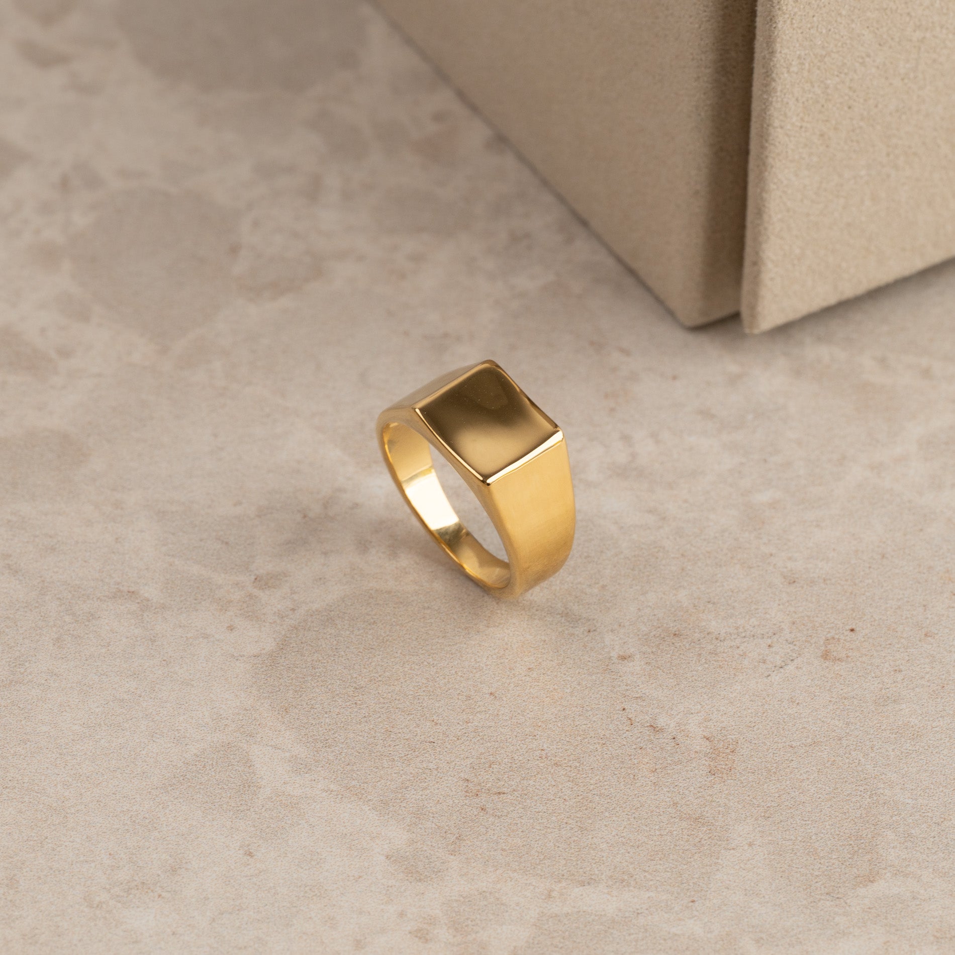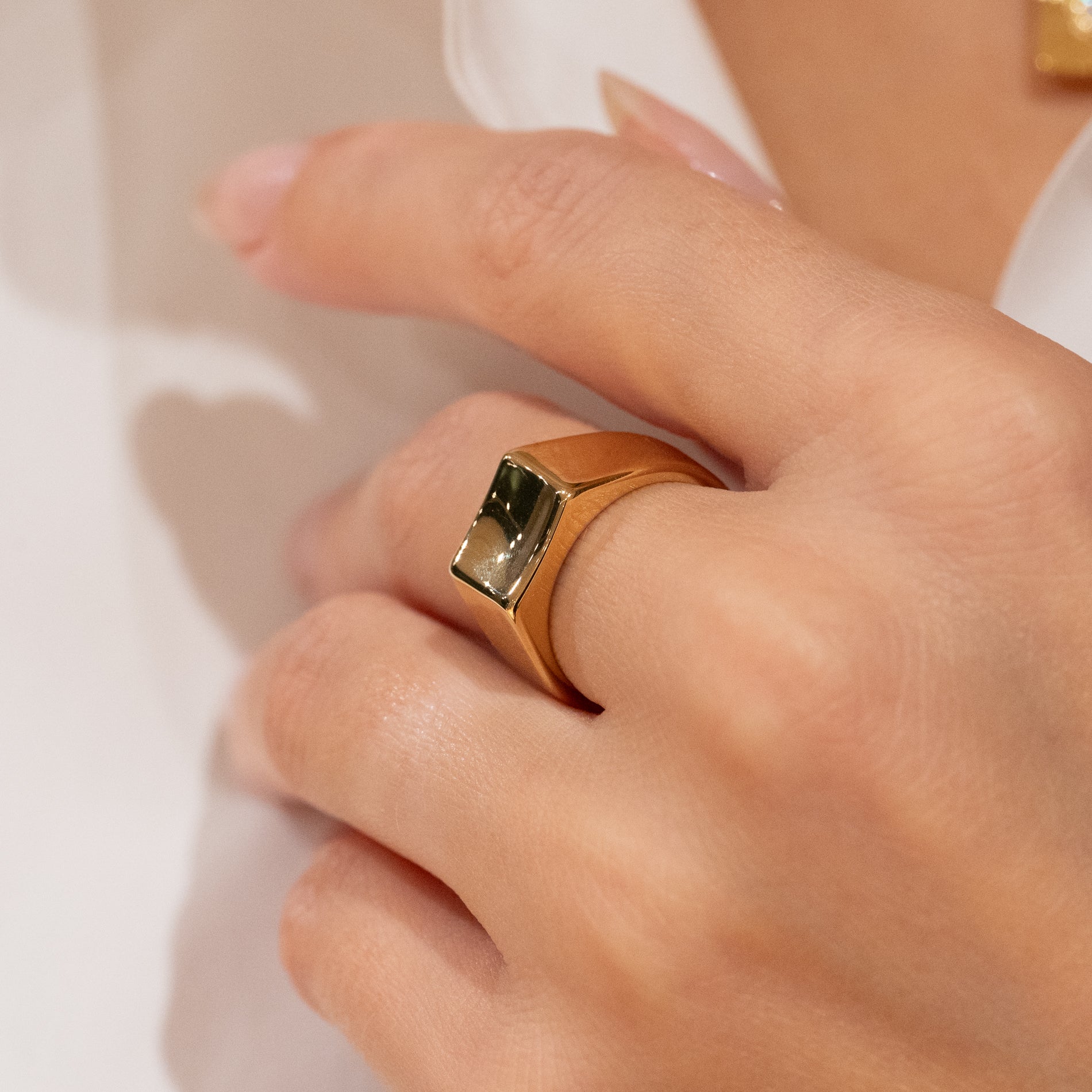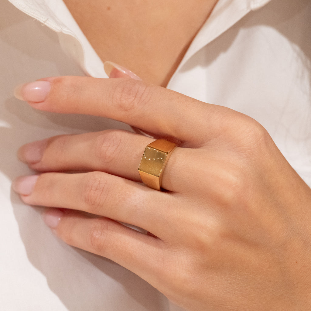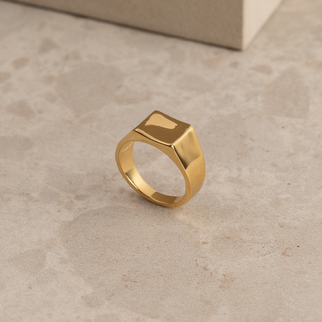 En klassisk, firkantet signet ring i 100 % genanvendt 18 karat forgyldt sterlingsølv.