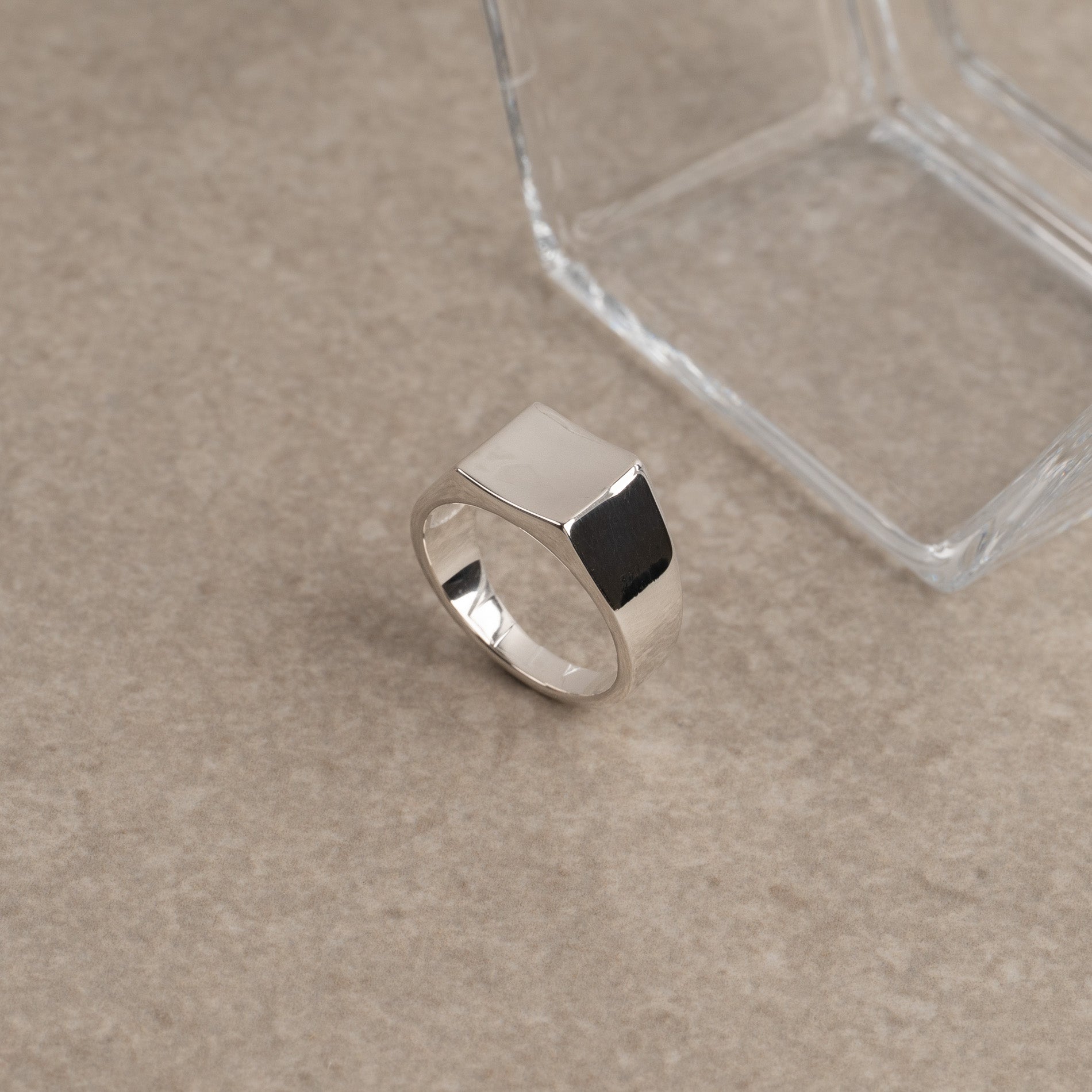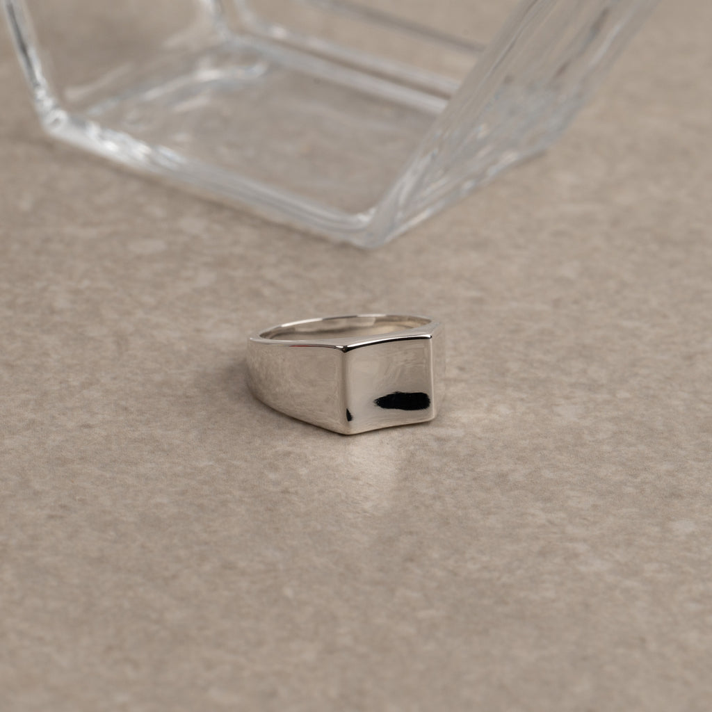 En klassisk, firkantet signet ring i 100 % genanvendt 925 sterlingsølv.