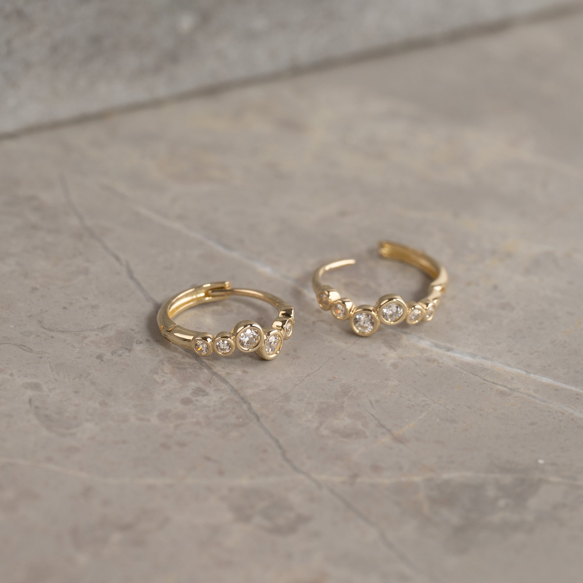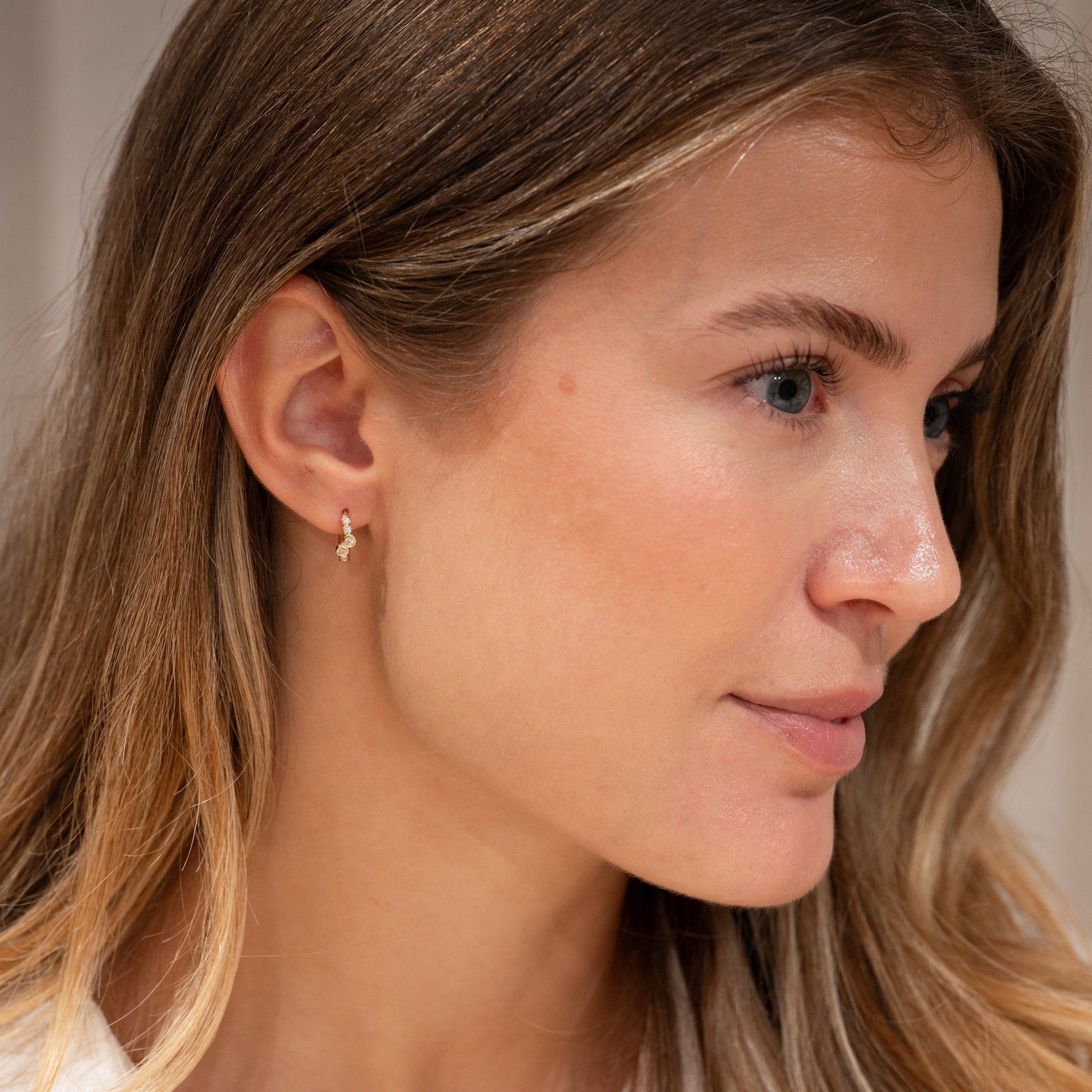 Disse fine creoler har et organisk design med klare zirkoner, der er placeret forskudt af hinanden. De to større sten i midten skaber et smukt udtryk og et elegant blikfang.