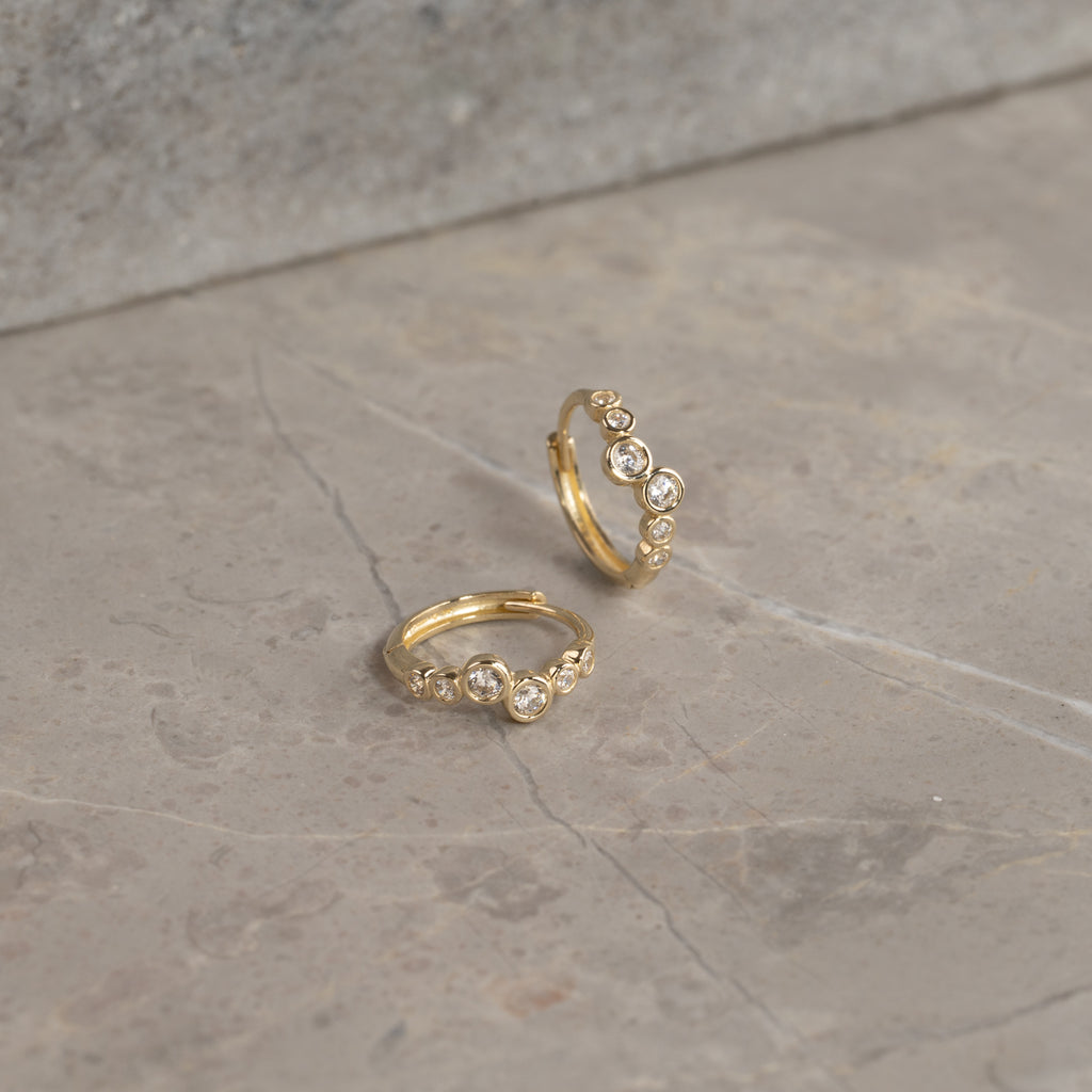 Elegante creoler i 9 karat guld med klare zirkoner