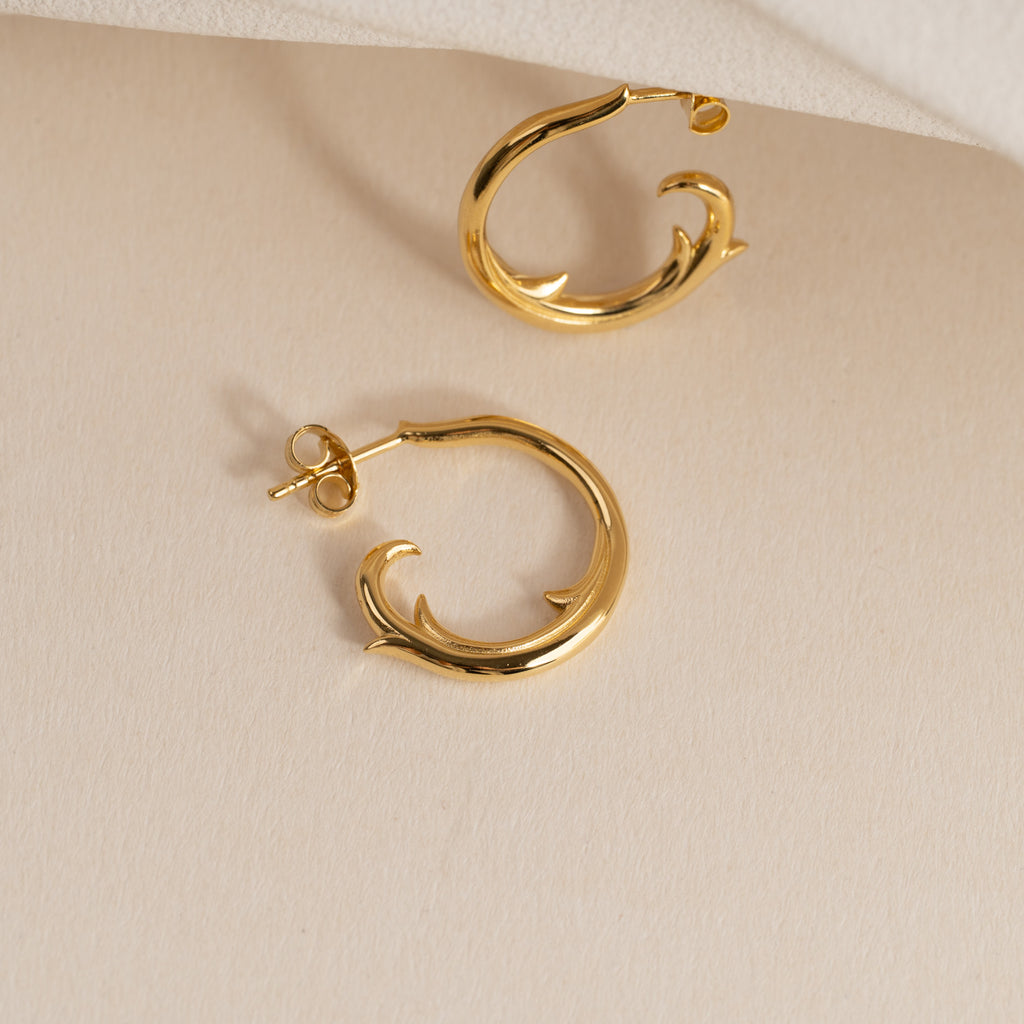 Creoler i 100% genanvendt 18 karat forgyldt sterlingsølv med bølgeinspirerede detaljer, der giver et dynamisk og levende udtryk. Et unikt og iøjnefaldende valg til både hverdag og særlige anledninger.