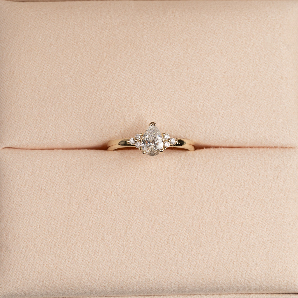 Den pæreformet diamant tilfører et romantisk og elegant præg – perfekt til dig, der leder efter en unik forlovelsesring eller en elegant cocktailring med personlighed.