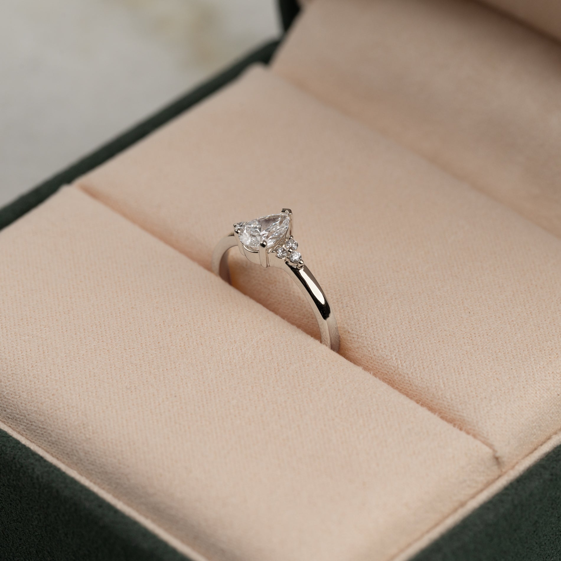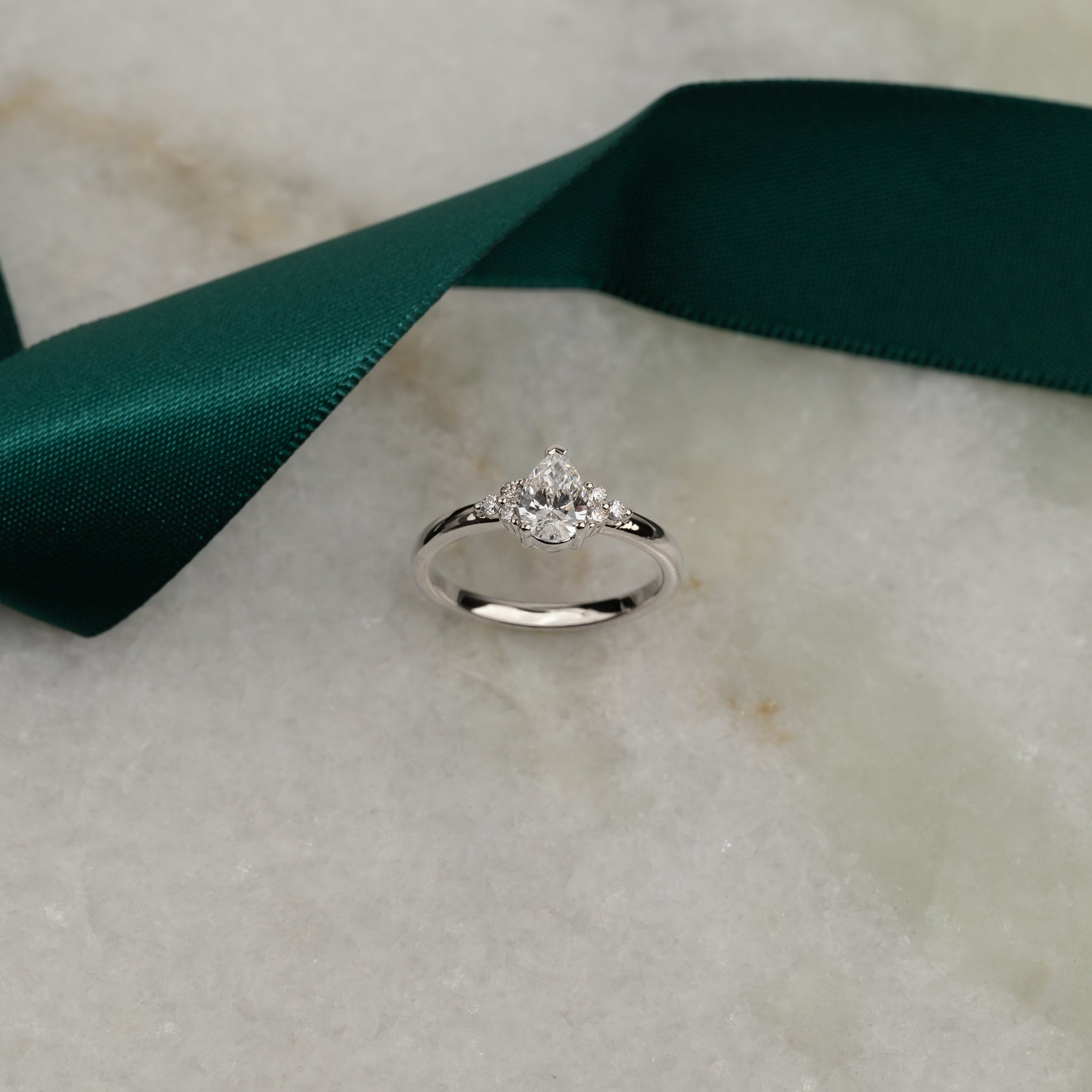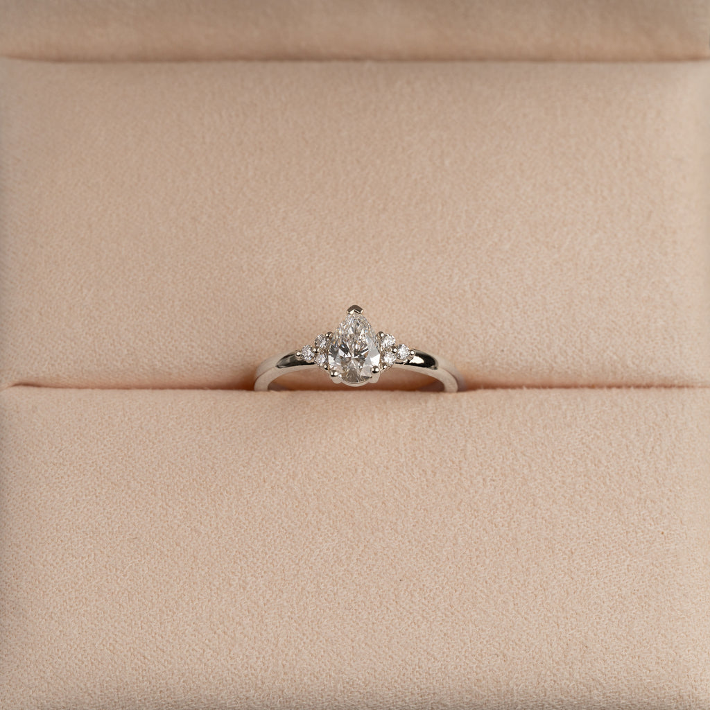 Pæreformet diamantring med en 0,60 ct. lab-grown diamant og elegante sidesten