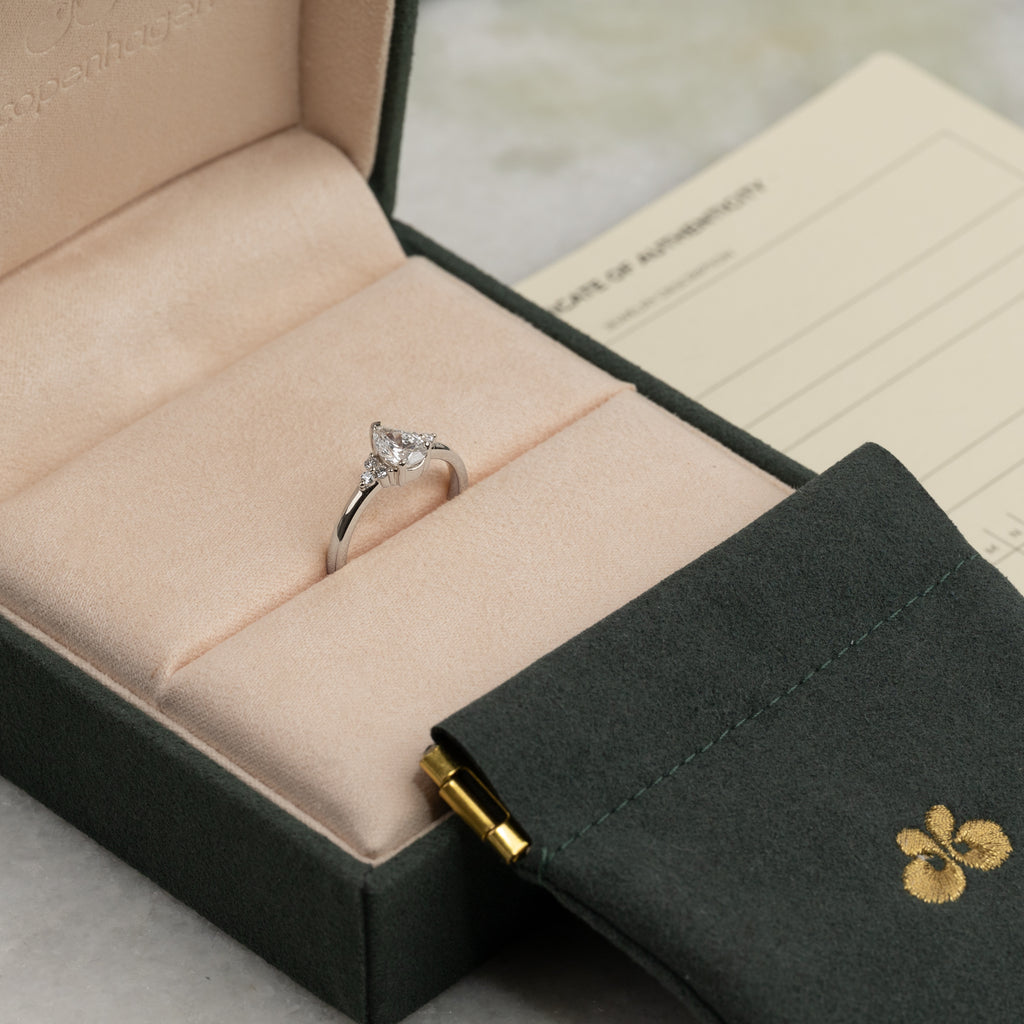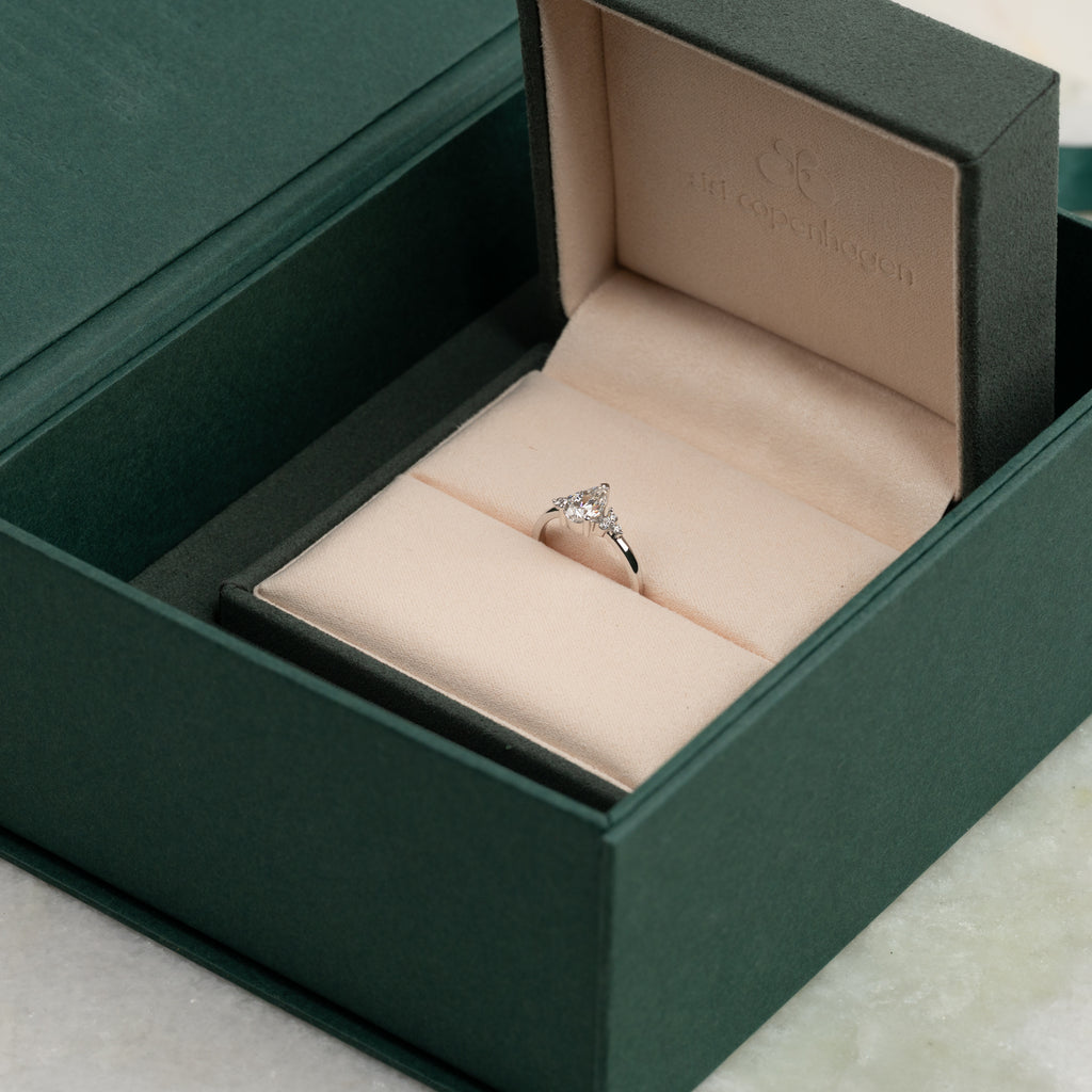 Den pæreformet diamant tilfører et romantisk og elegant præg – perfekt til dig, der leder efter en unik forlovelsesring eller en elegant cocktailring med personlighed.