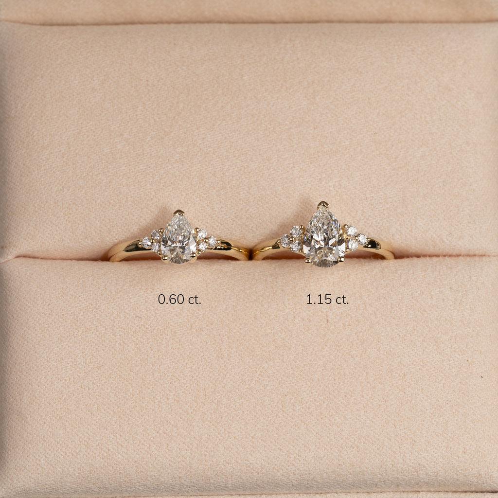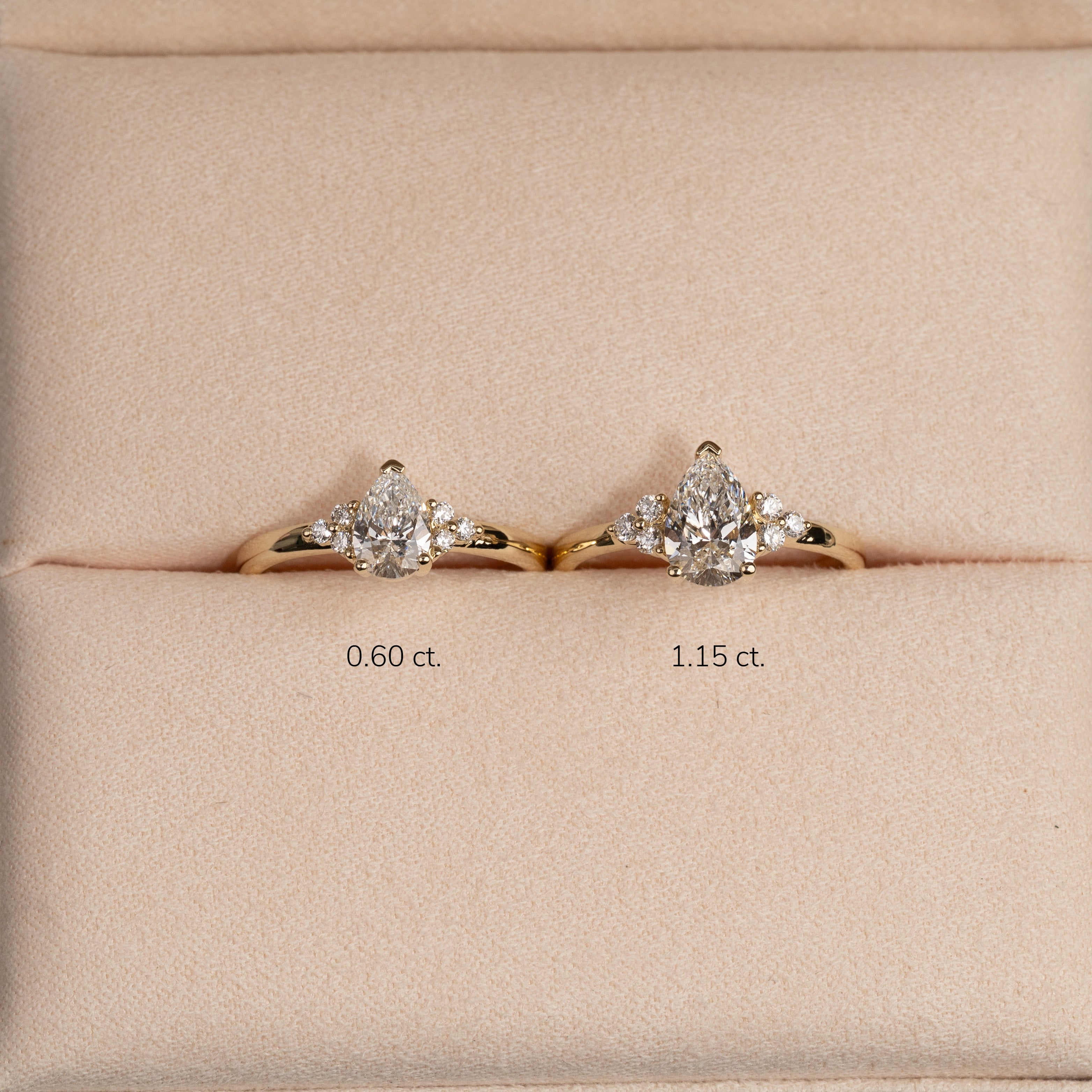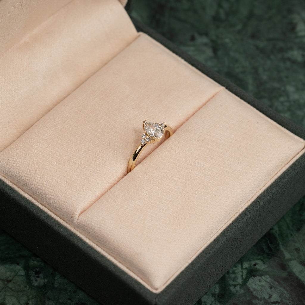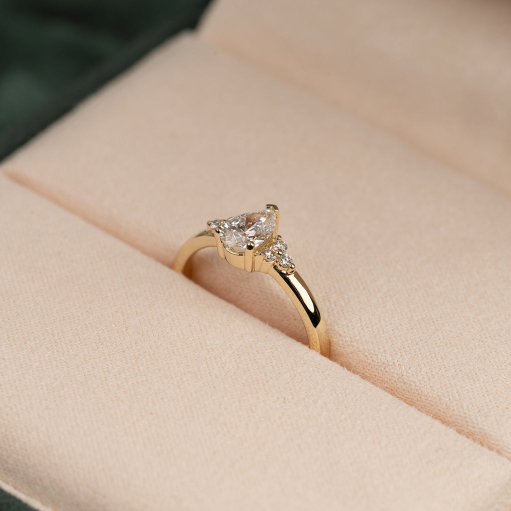 Pæreformet diamantring med en 0,6 ct lab-grown diamant og elegante sidesten