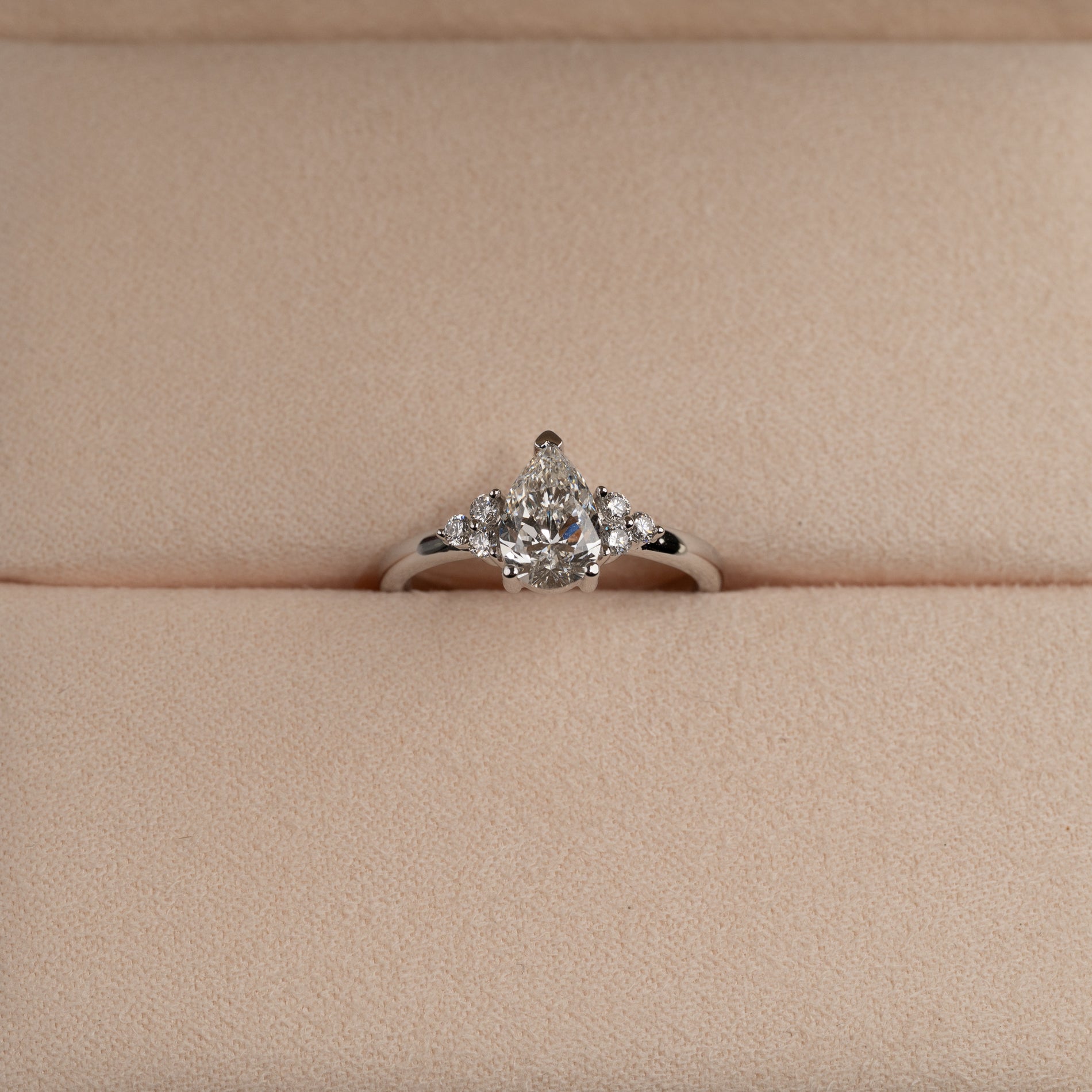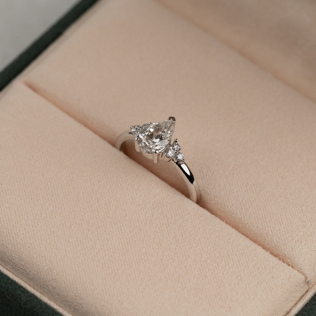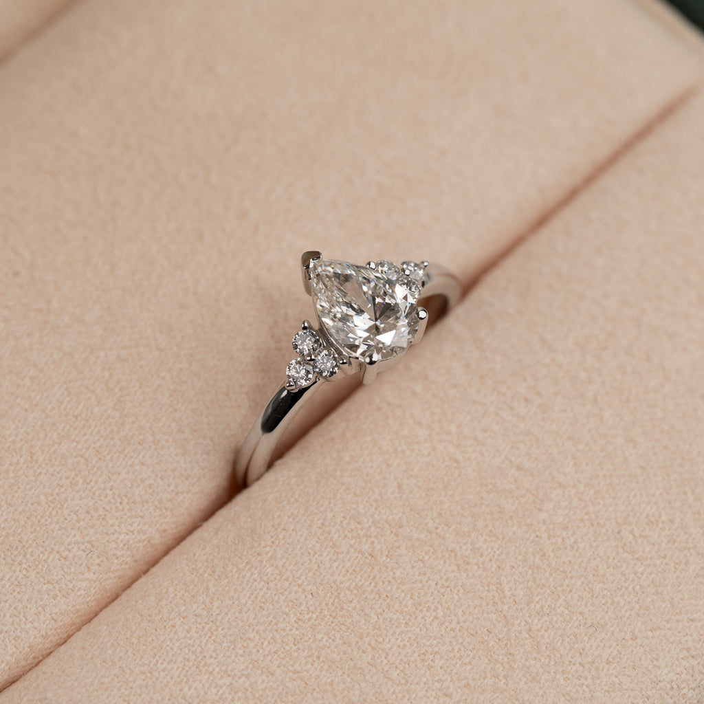 Pæreformet diamantring med en 1,0 ct. lab-grown diamant og elegante sidesten