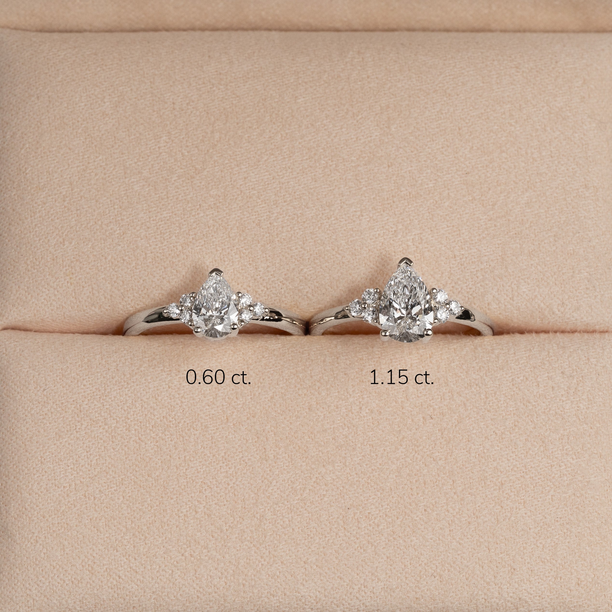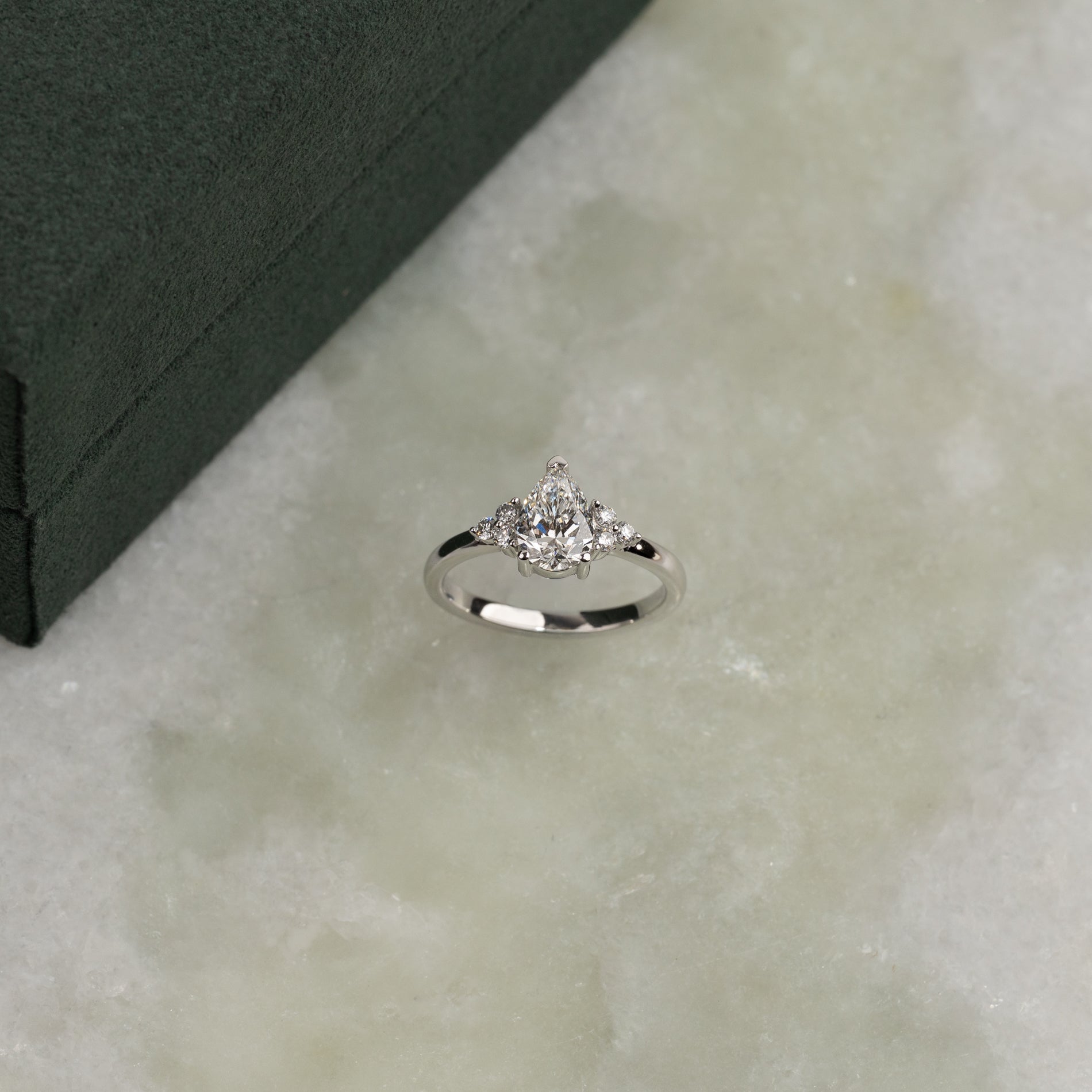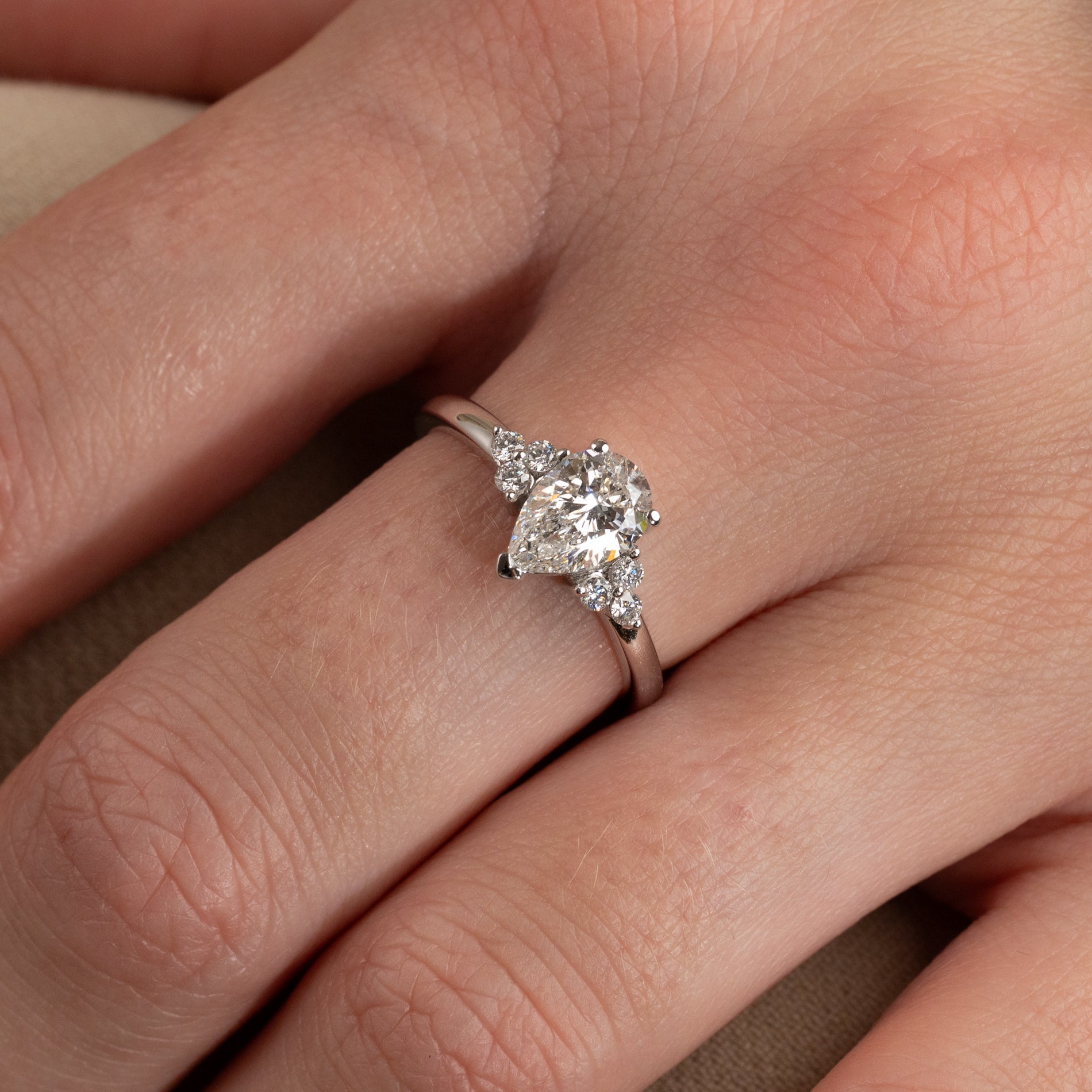 Pæreformet diamantring med en 1,0 ct. lab-grown diamant og elegante sidesten
