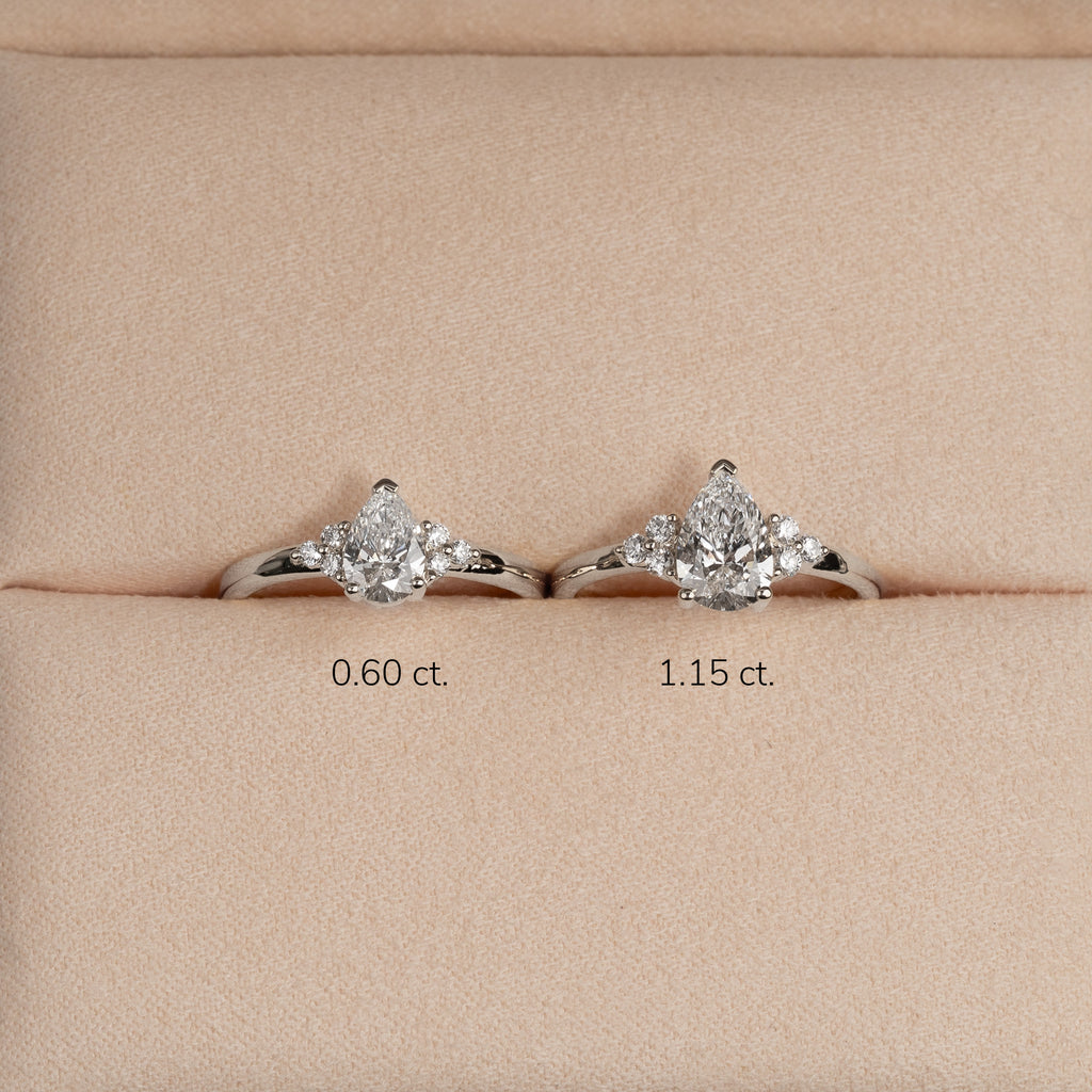 Den pæreformet diamant tilfører et romantisk og elegant præg – perfekt til dig, der leder efter en unik forlovelsesring eller en elegant cocktailring med personlighed.