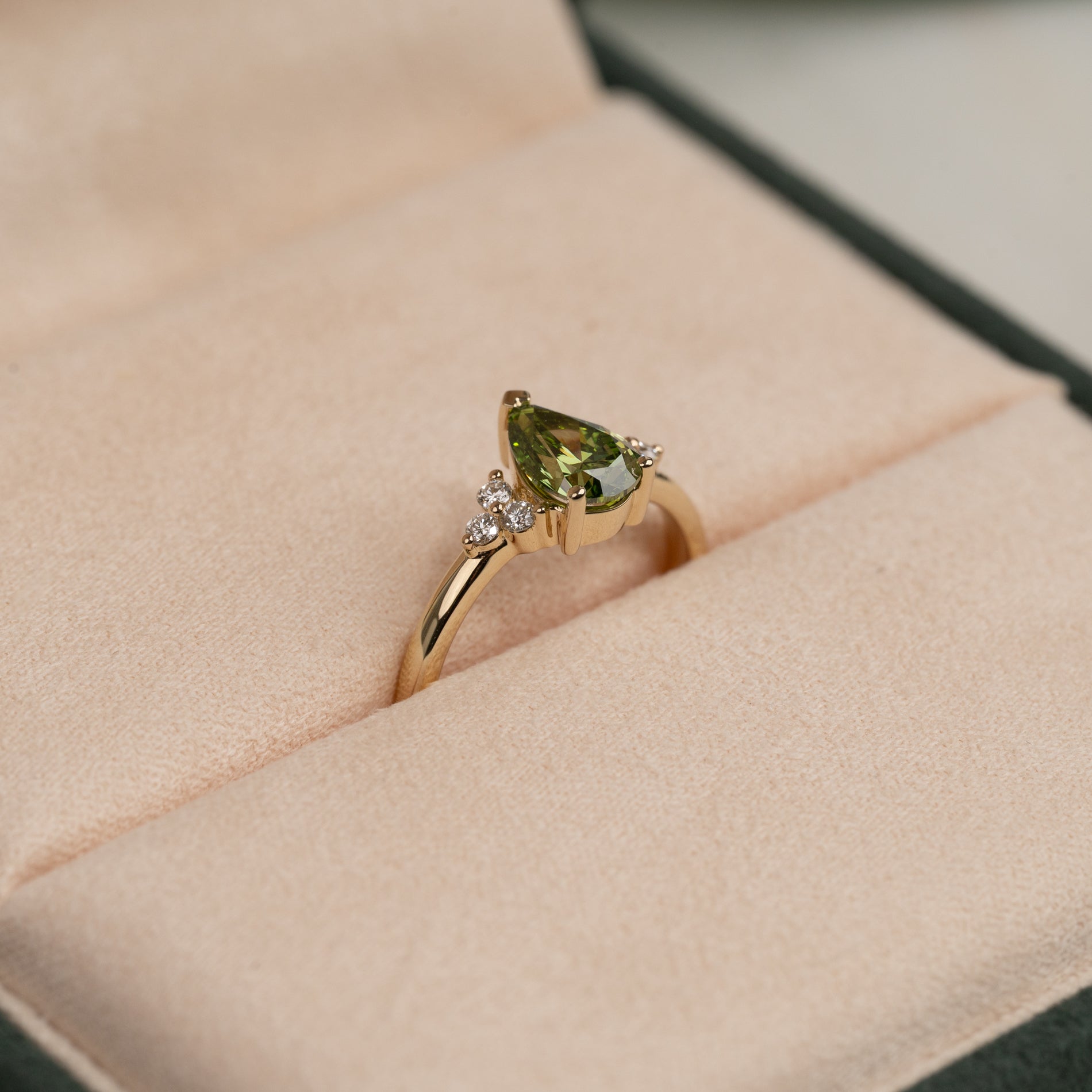 PEAR-CUT TRIAD GREEN DIAMOND RING - 1.15ct - YG
