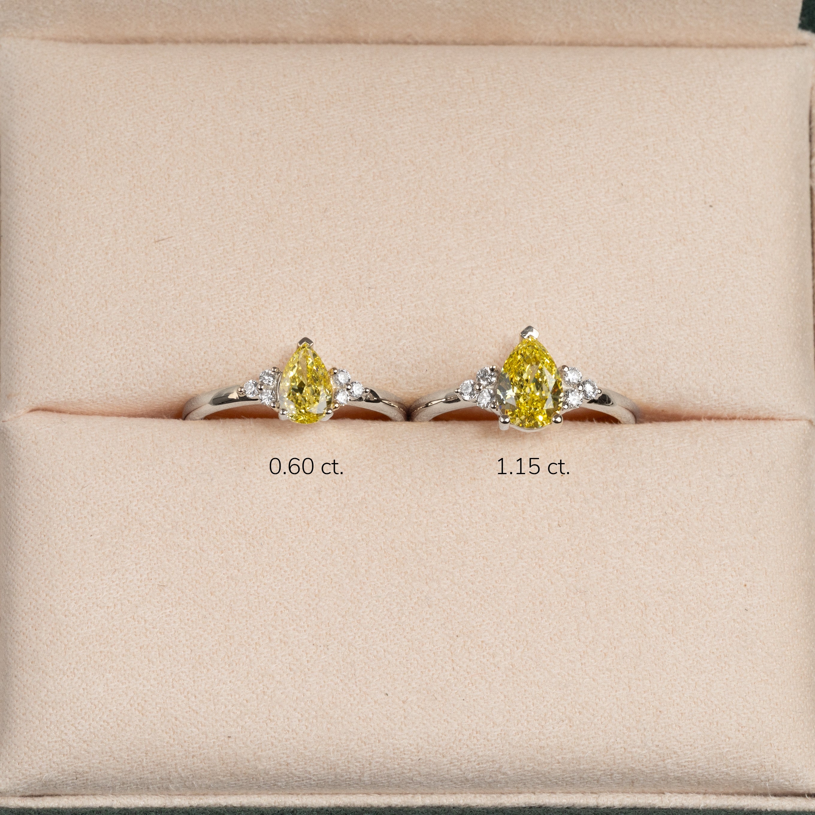 Pæreformet diamantring med en 1,0 ct. gul lab-grown diamant og klare sidesten