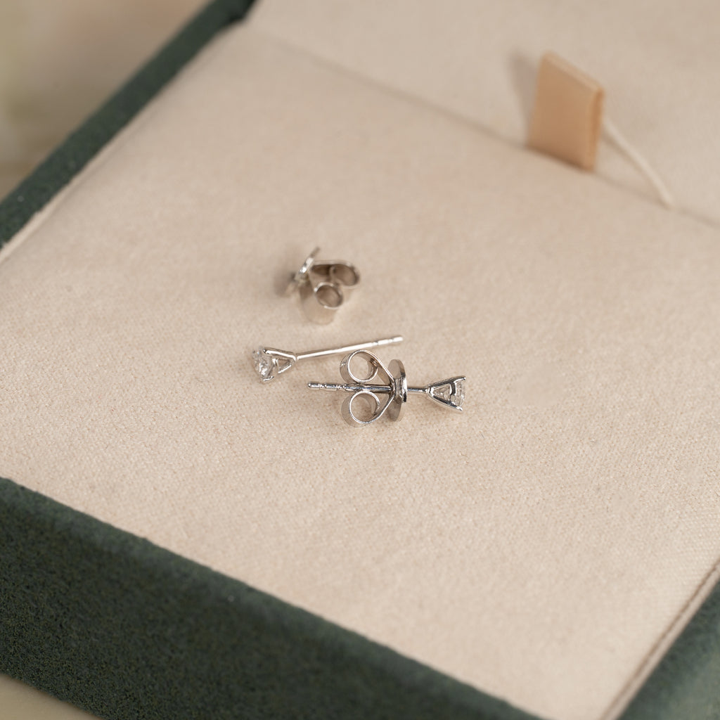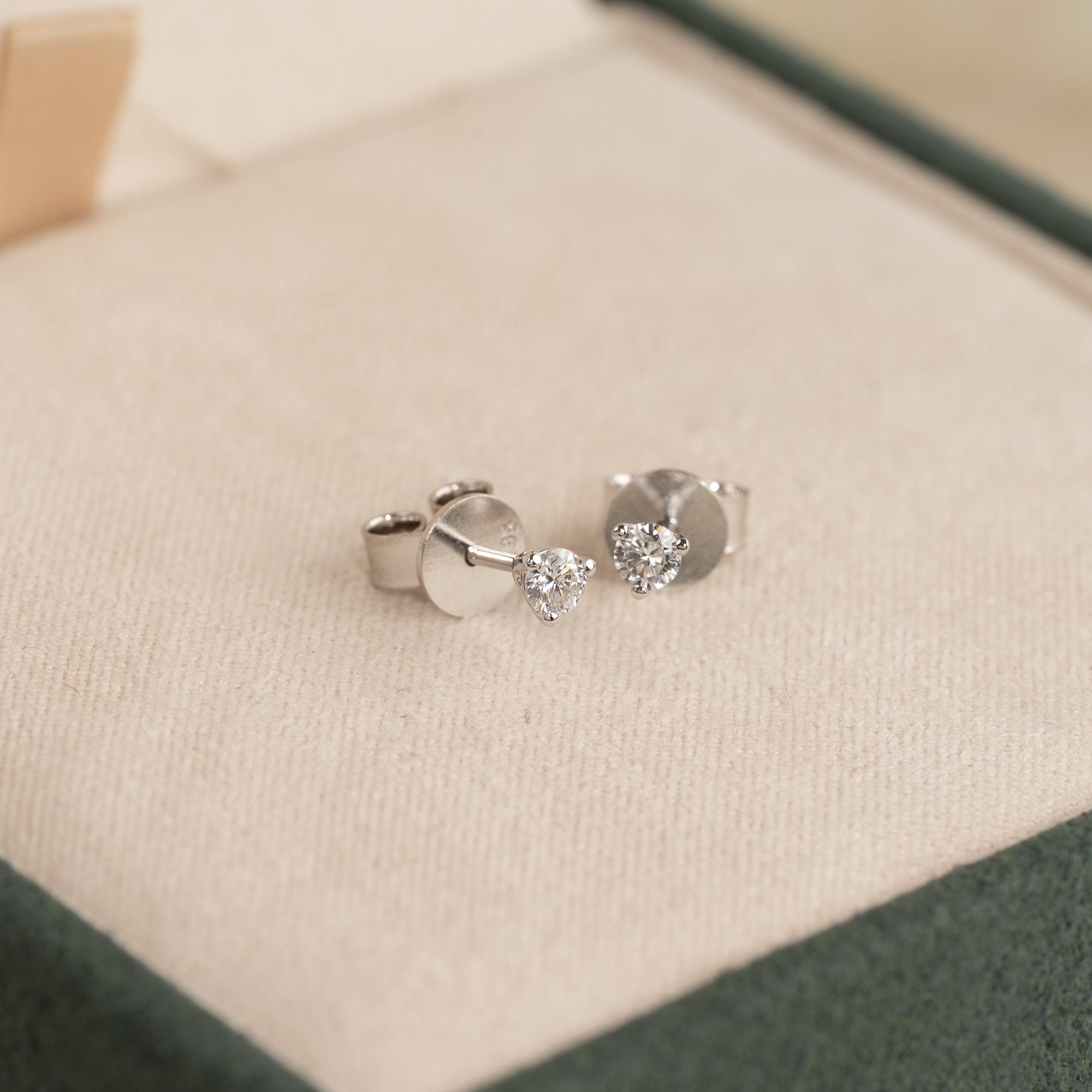 Vores solitaire diamantørestikkere er lavet i 14 karat massiv hvidguld med lab-grown diamanter på 0,2 ct.