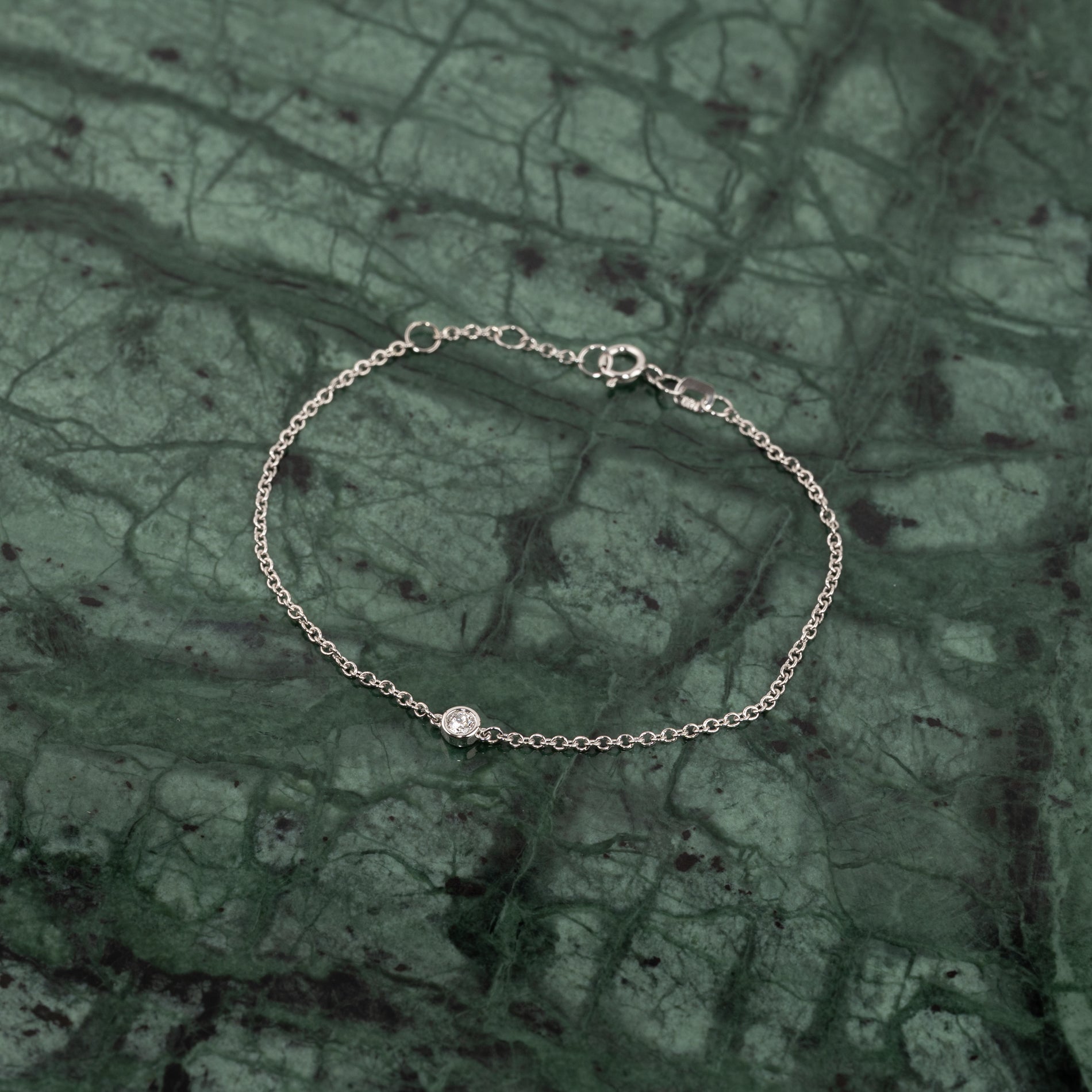 Et klassisk og tidløst armbånd i med en lab-grown diamant, sat i en elegant bezel-fatning. Det feminine og elegante design gør det perfekt til enhver anledning. Bær det alene for et rent, sofistikeret udtryk, eller kombinér det med andre armbånd for et mere personligt og fyldigt look.