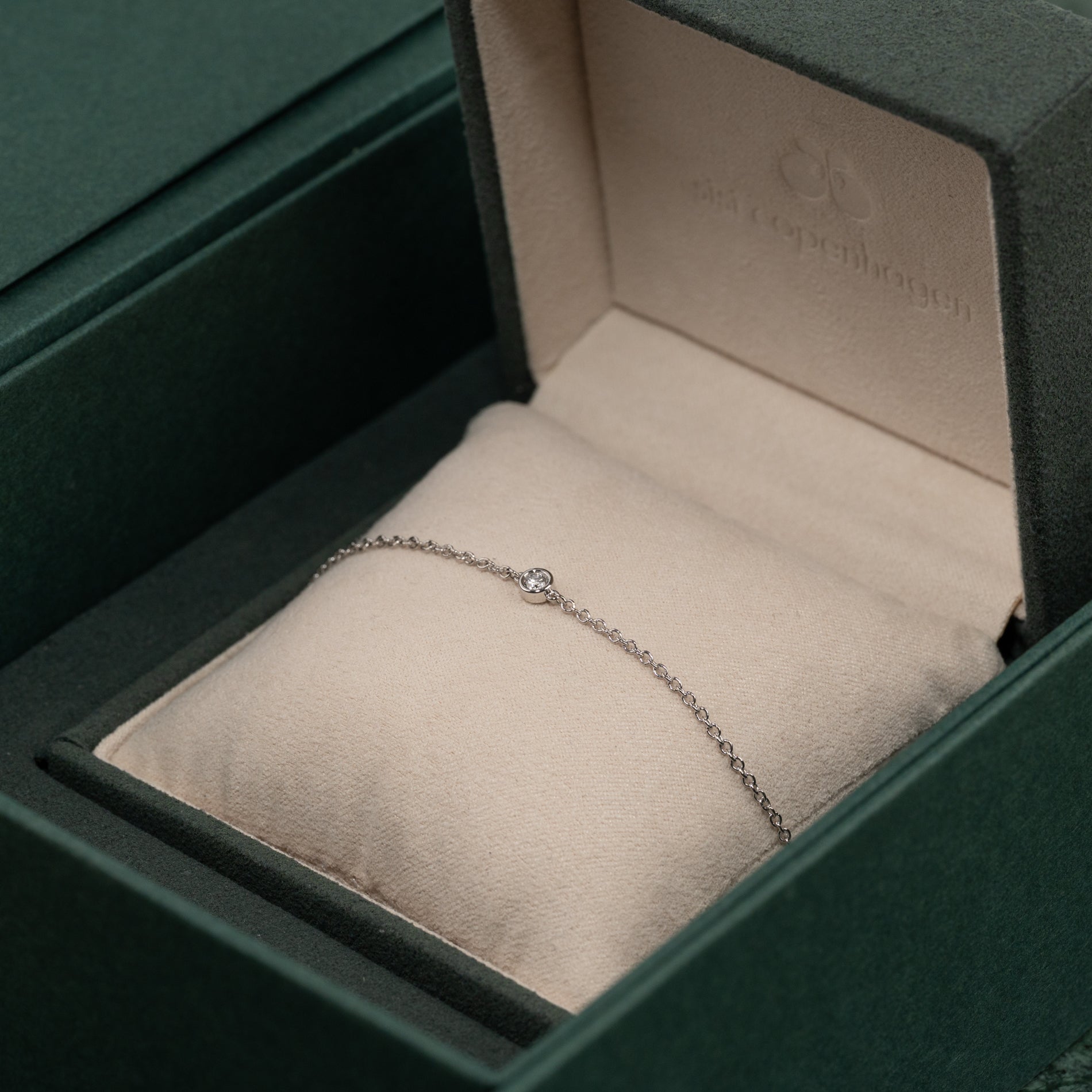 Vores 'Diamond Collection' smykker kommer i vores eksklusive grønne smykkeæsker i matchende gaveboks med gavebånd. Lige til at give i gave til en man holder af.