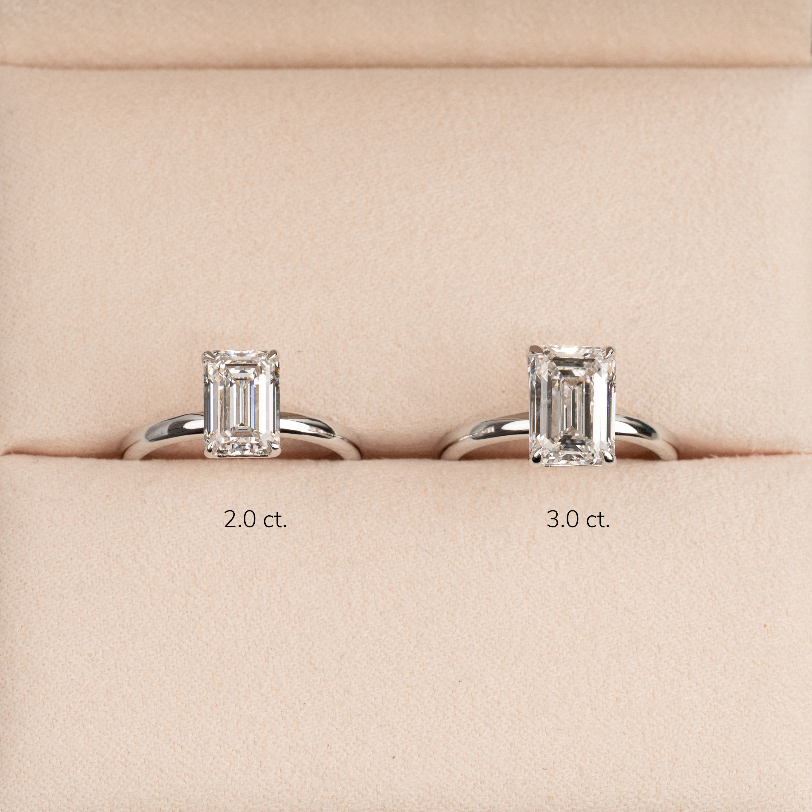 Solitairering med 3,0 ct. emerald-cut lab-grown diamant i 14 kt. hvidguld