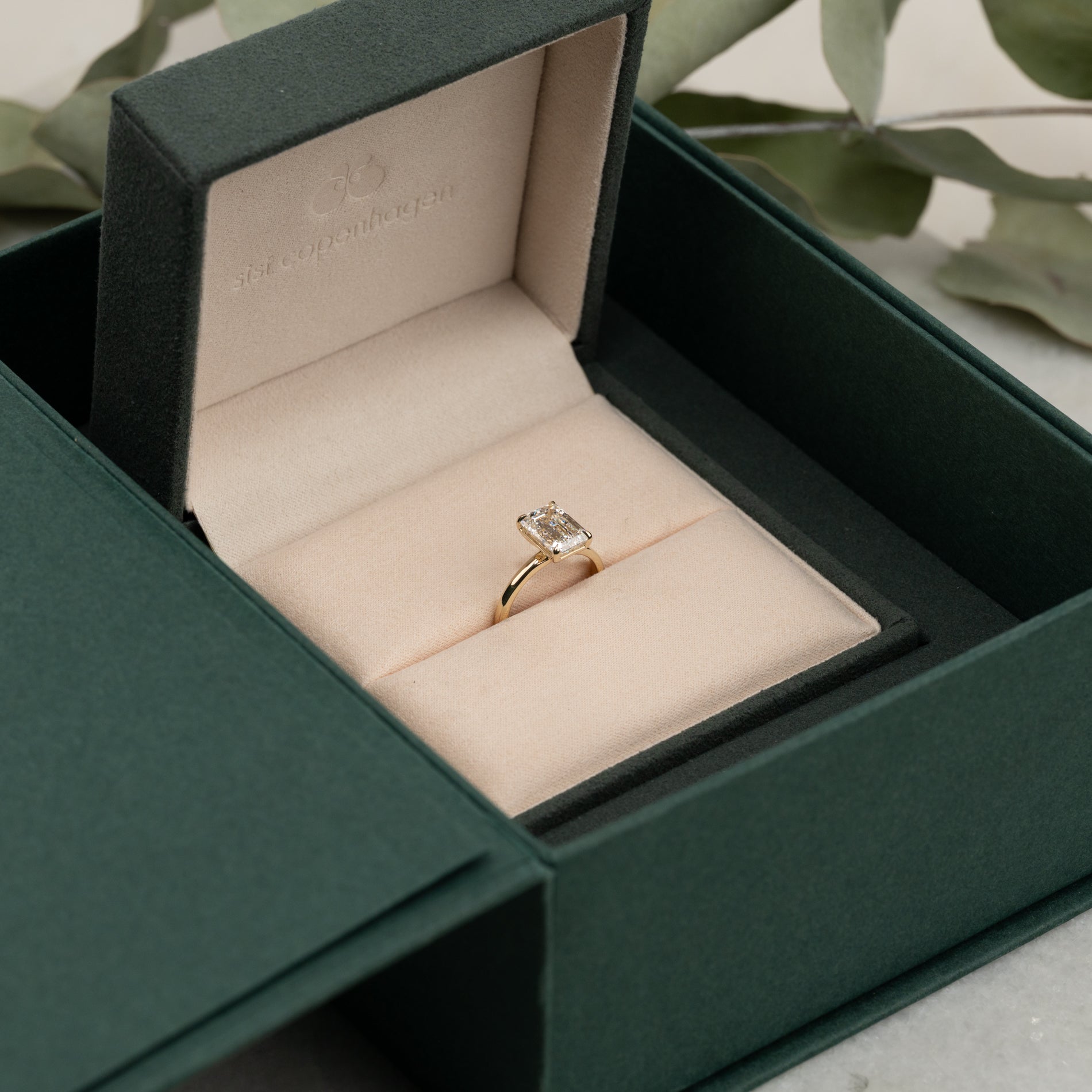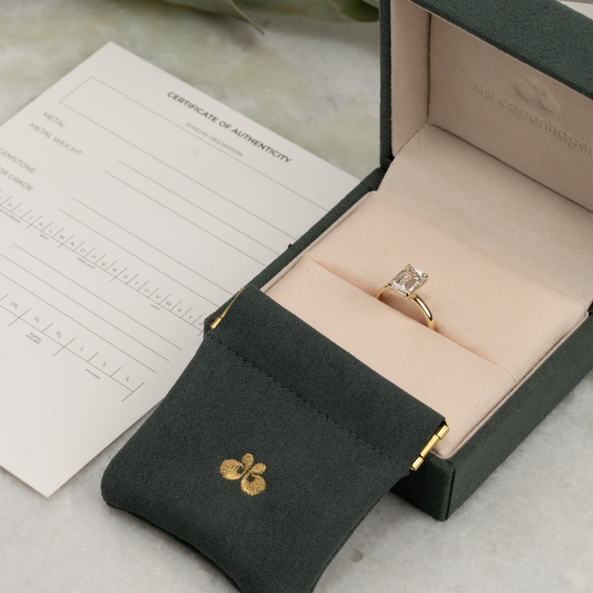 Ringen kommer i vores eksklusive Diamond Collection boks med en flot smykkeæske, et certifikat og en pouch. Boksen er perfekt, hvis smykket skal gives som gave.