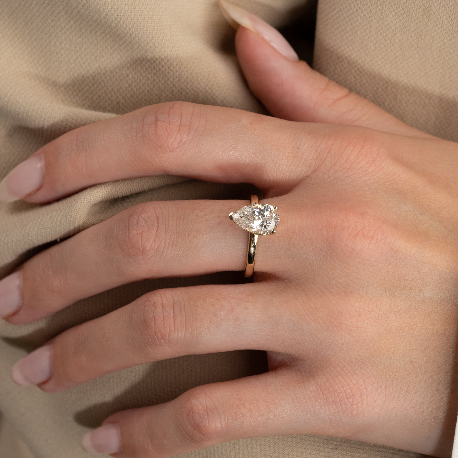 SOLITAIRE PEAR-CUT LAB-DIAMOND RING - 2.5ct - YG