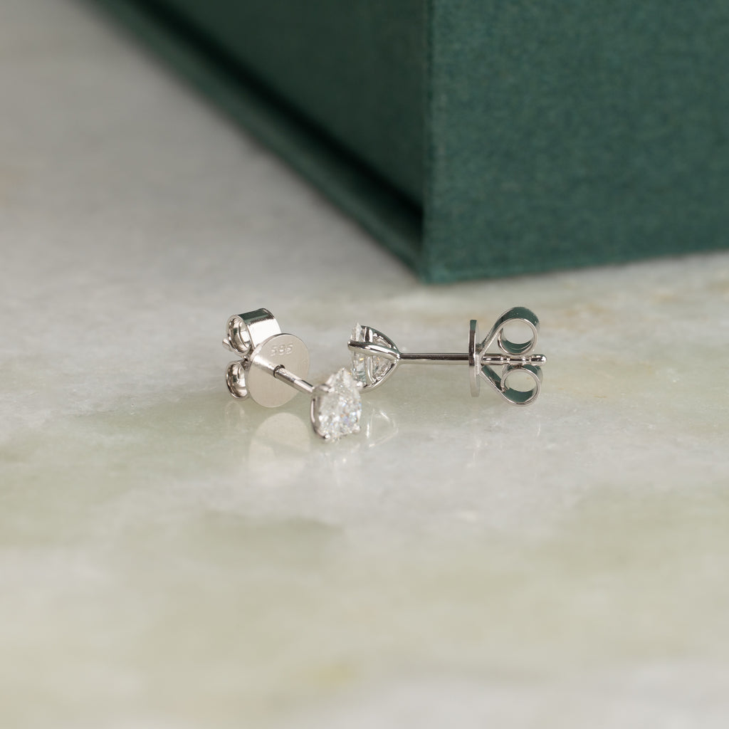 Ørestikkerne er lavet i 14 karat massiv hvidguld med lab-grown diamanter, der har en samlet vægt på 0,5 ct. (2 x 0.25 ct.). Diamanterne har farven E-F (River) og klarheden VVS. Smykket er skabt med omtanke; diamanterne er fremstillet med blandt andet solenergi, og guldet er 100% certificeret genanvendt.