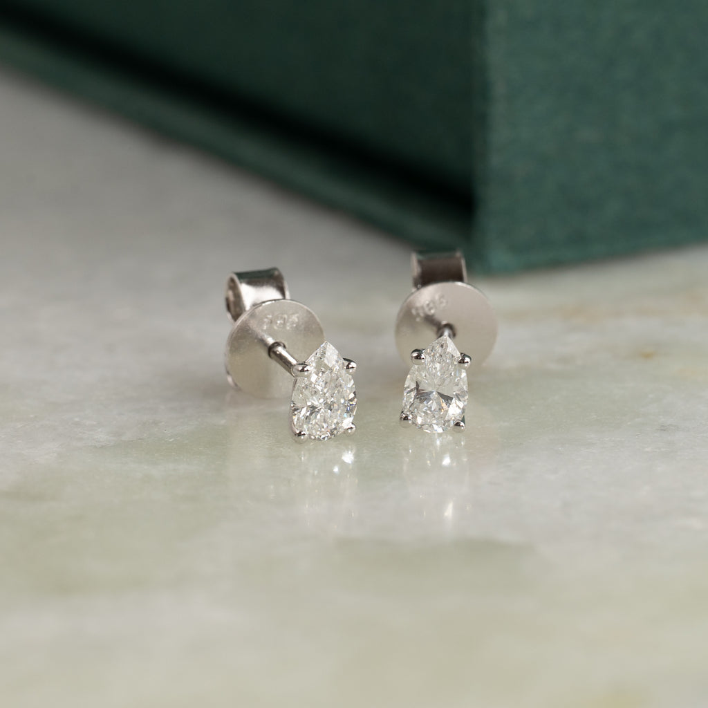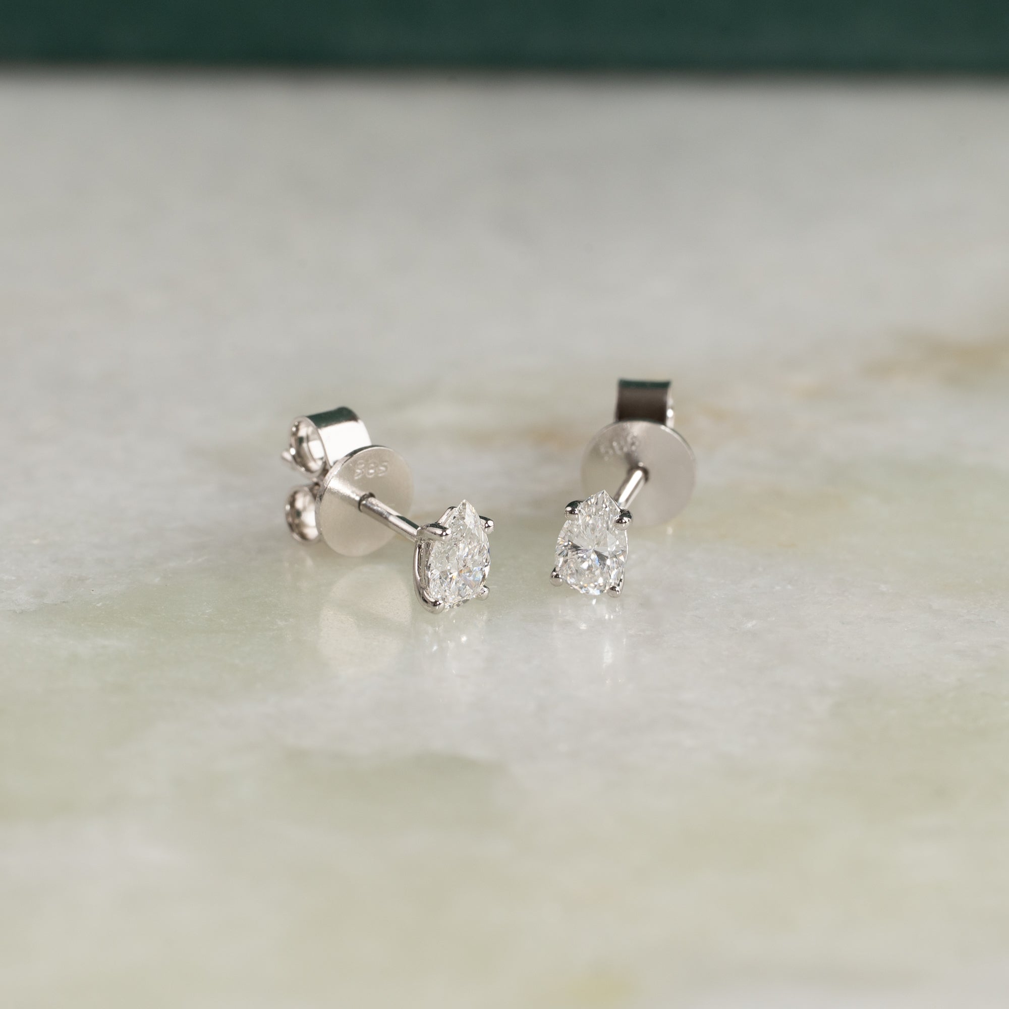 SOLITAIRE PEAR-CUT DIAMOND STUD EARRING - 0.5ct - WG