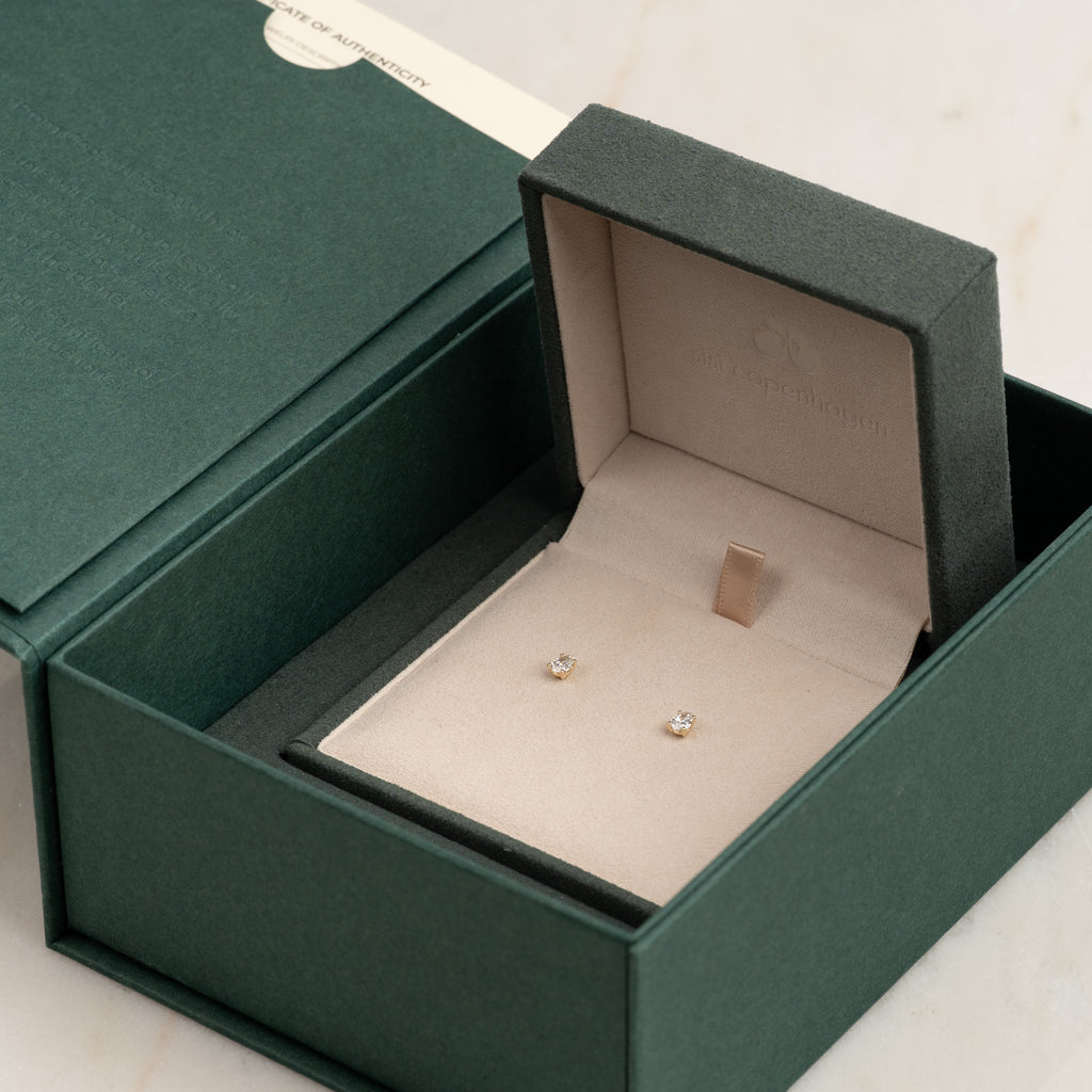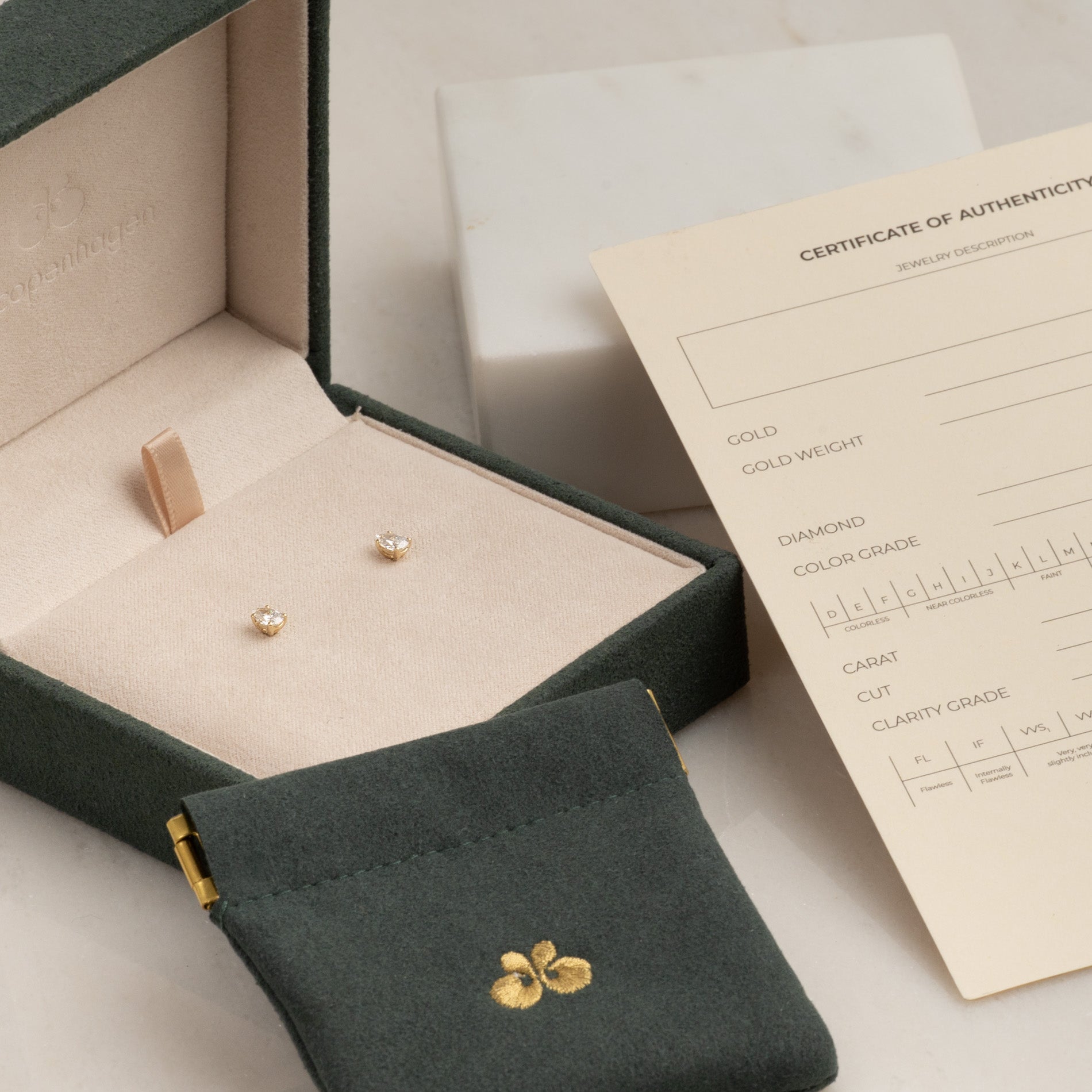 Vores Diamond Collection smykker kommer i vores ekslusive Diamond Collection boks med en flot smykkeæske, certifikat og pouch. Boksen er også perfekt, hvis smykket skal gives som gave.