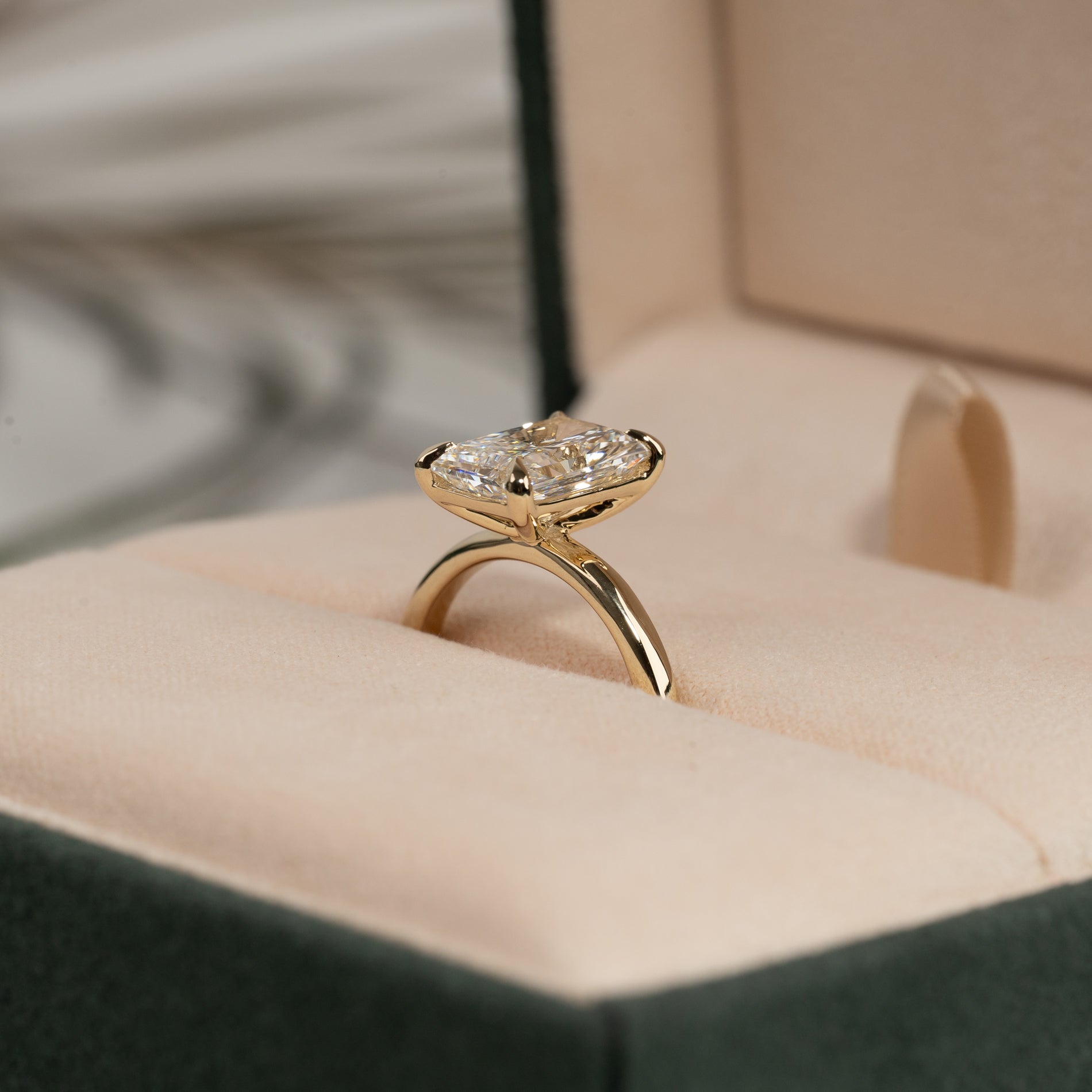 Ring i 14 karat massivt guld med en 3,0 ct. radiant-slebet lab-grown diamant. Stenen er smukt fattet i en let hævet basket-fatning, der komplimenterer den elegante sten. Ringen er en perfekt cocktailring, den perfekte gave til en, man elsker og holder af eller som den perfekte forlovelsesring.