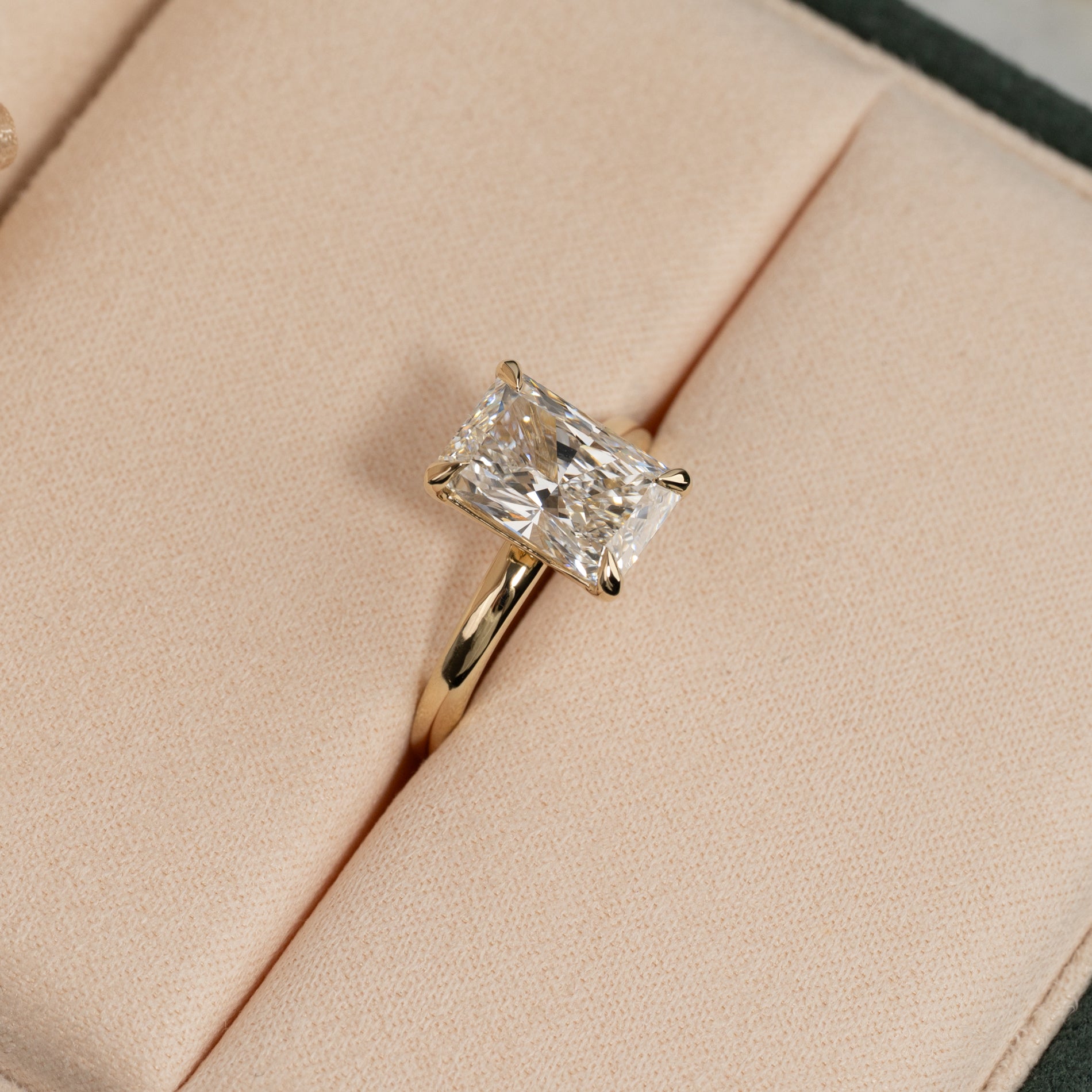 Solitairering med 3,0 ct. radiant-cut lab-grown diamant i 14 kt. guld